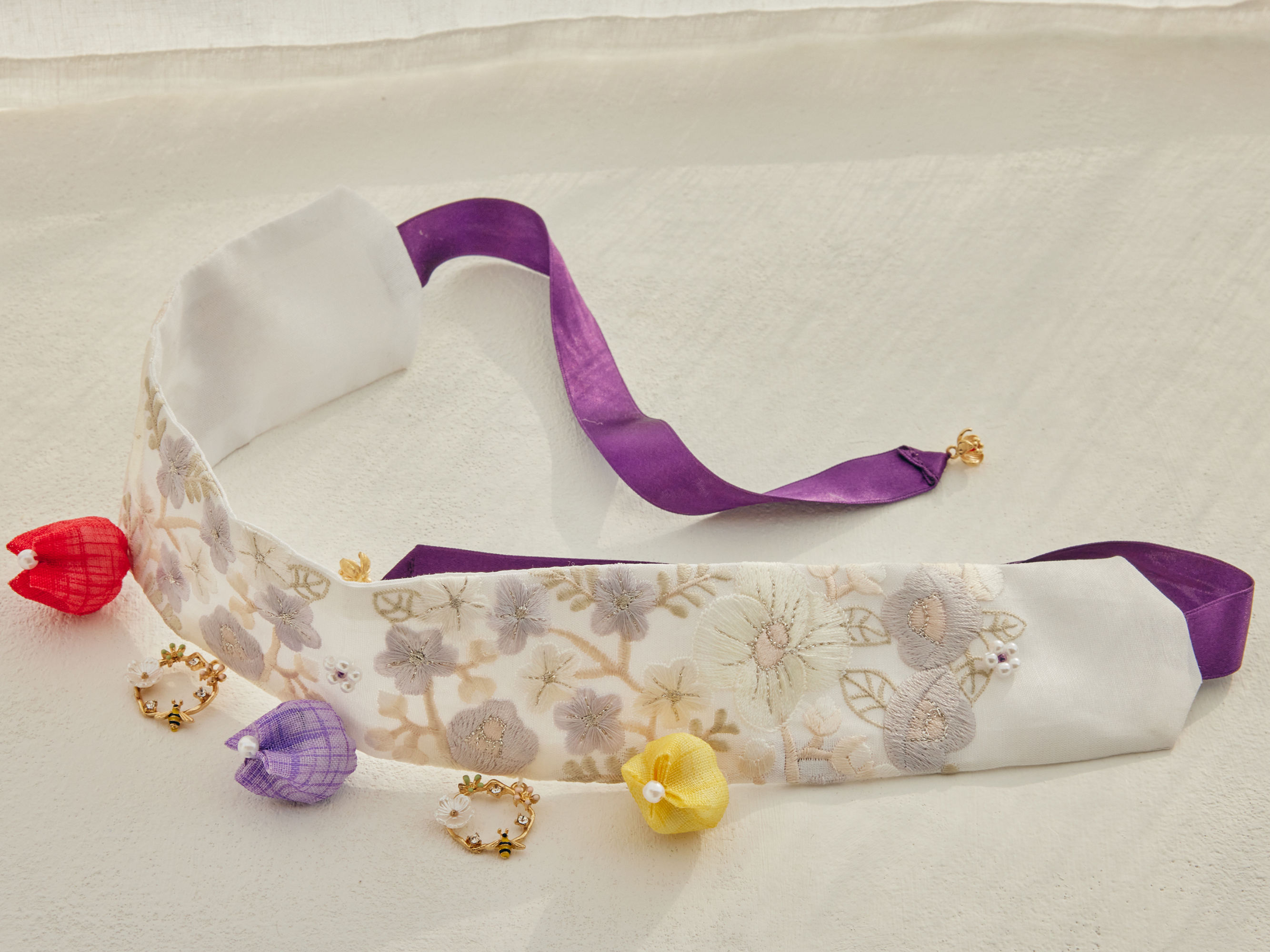 꼼꼼한 바느질, 섬세한 디자인으로 사랑받는 마타브로의 실크 자수 배띠입니다,