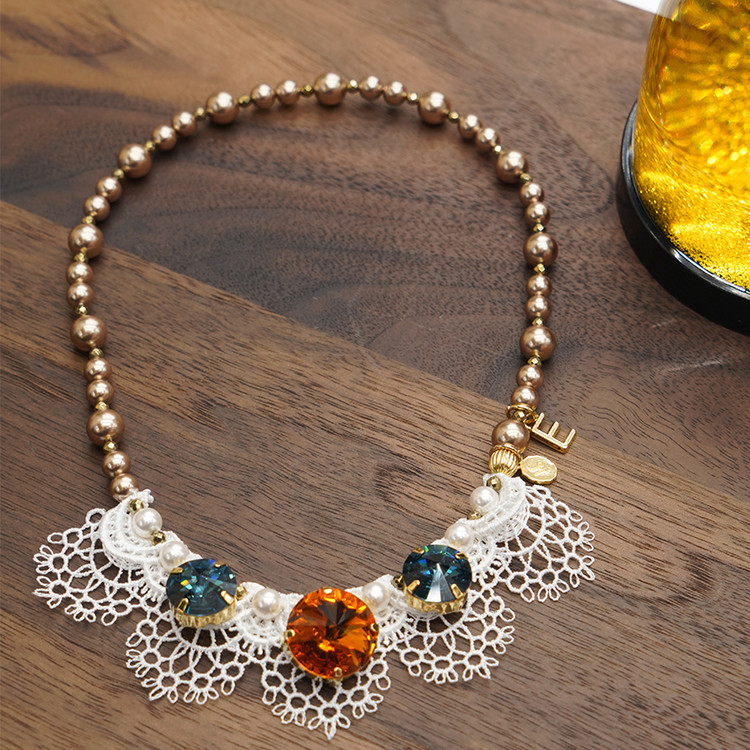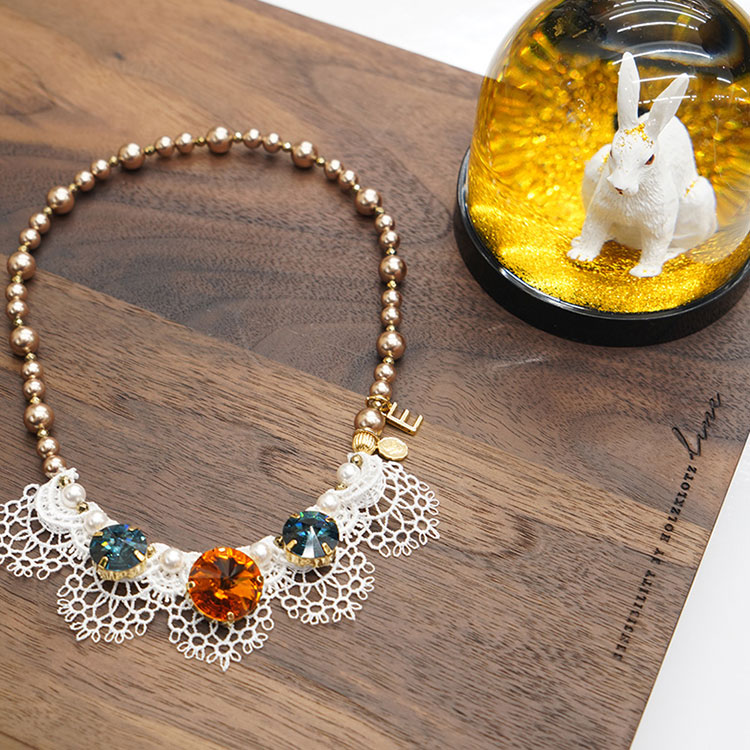 Brass 외 메탈 골드도금 + Swarovski stone + 레이스 | 알함브라 아몬드