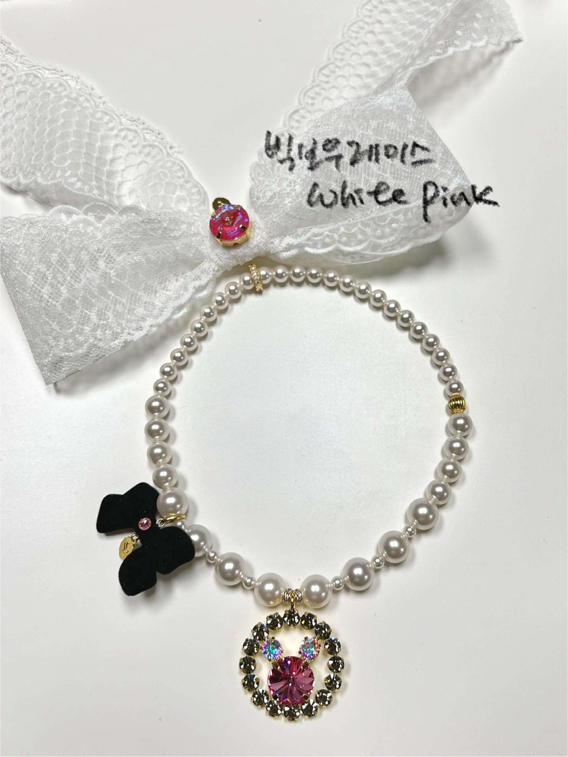 아이보리펄 목걸이 + 빅보우레이스 화이트핑크