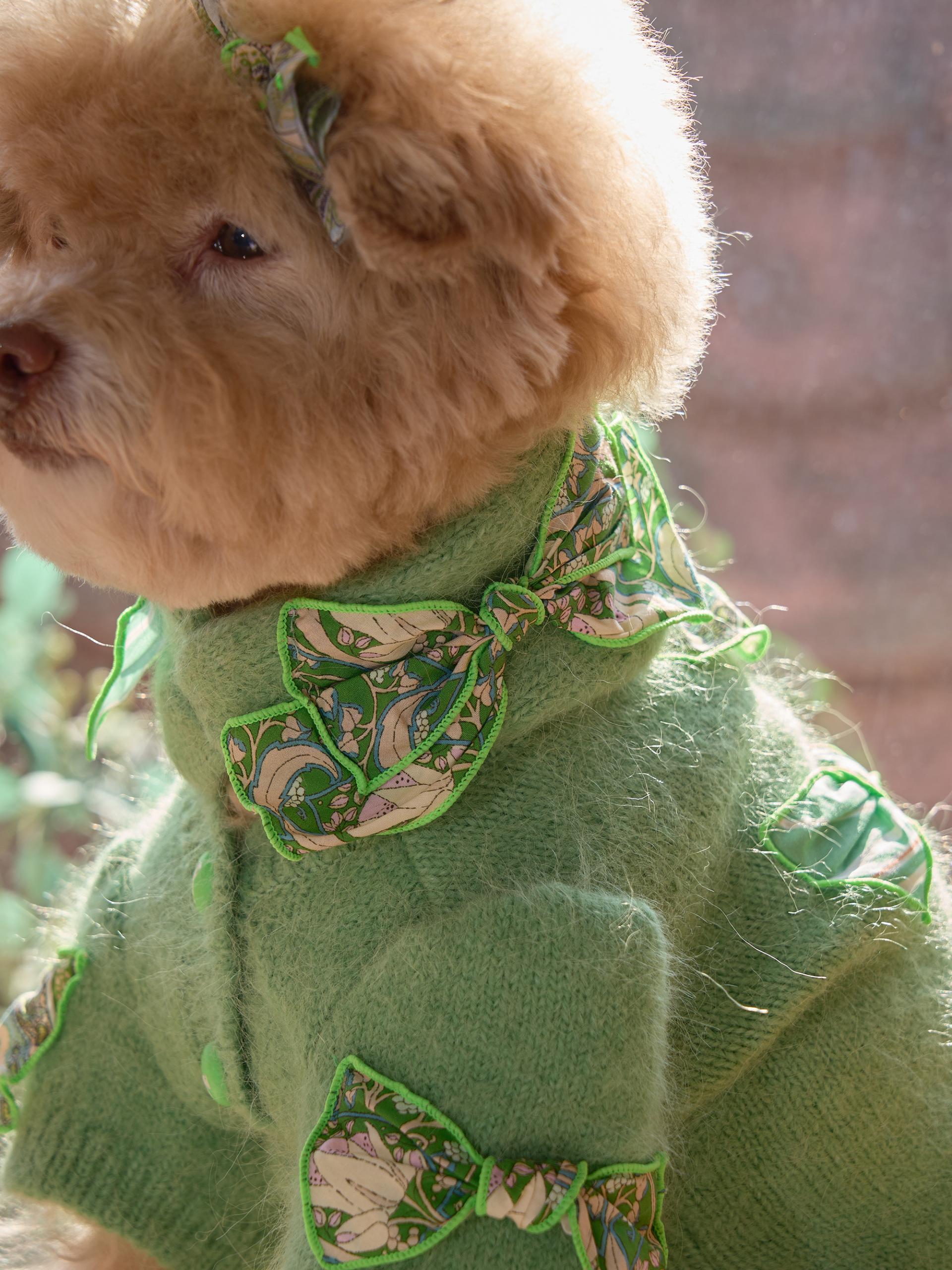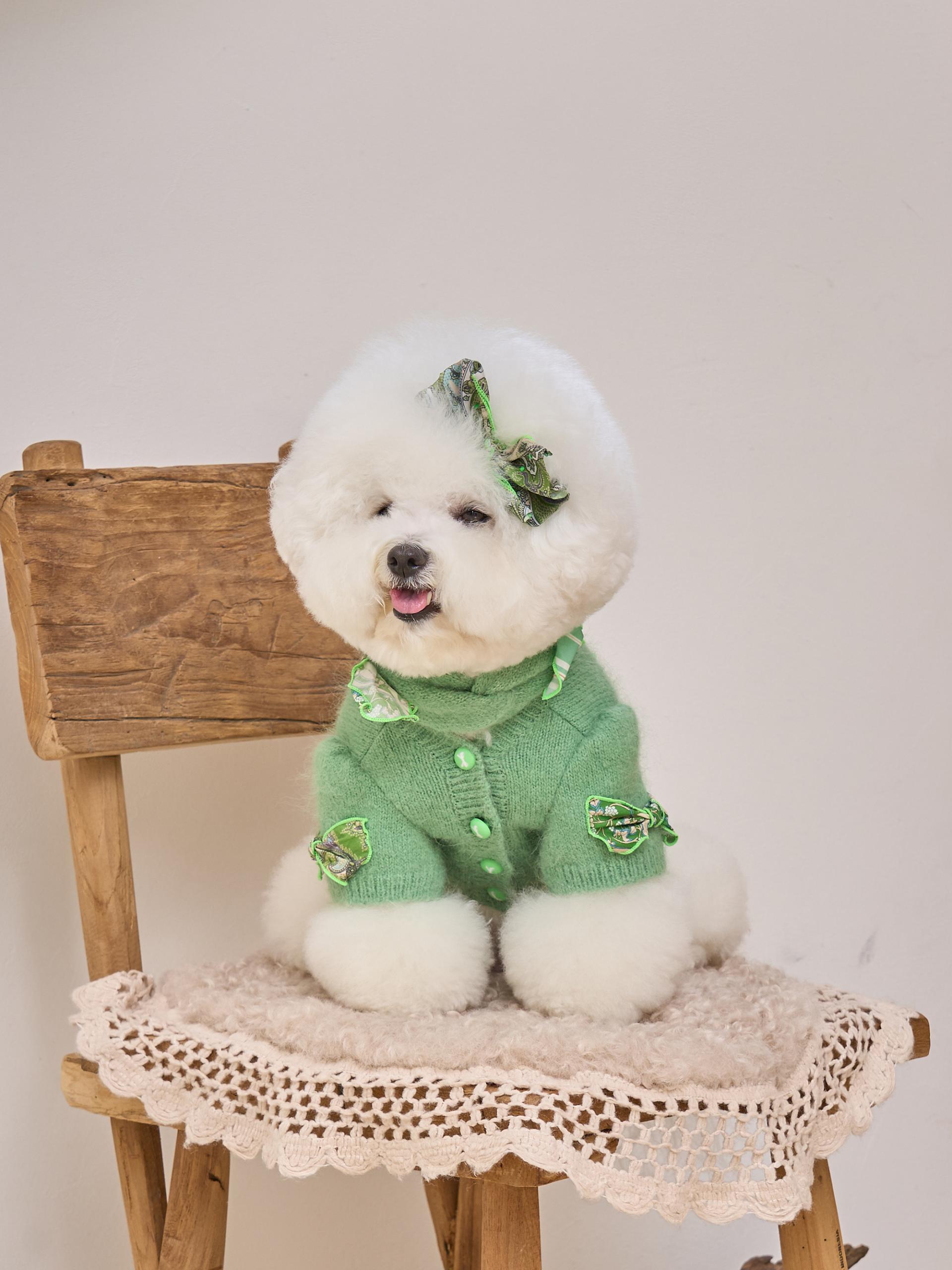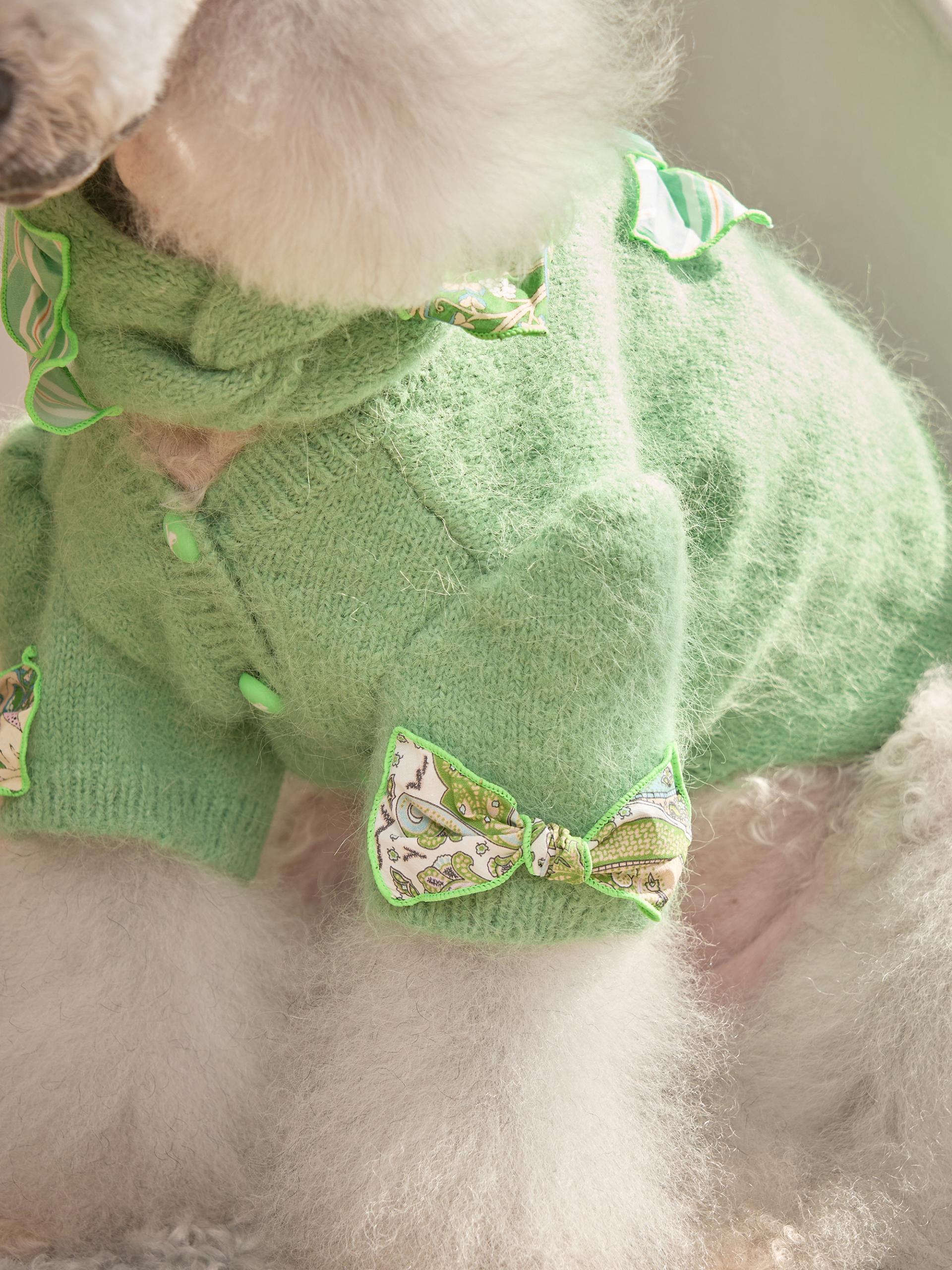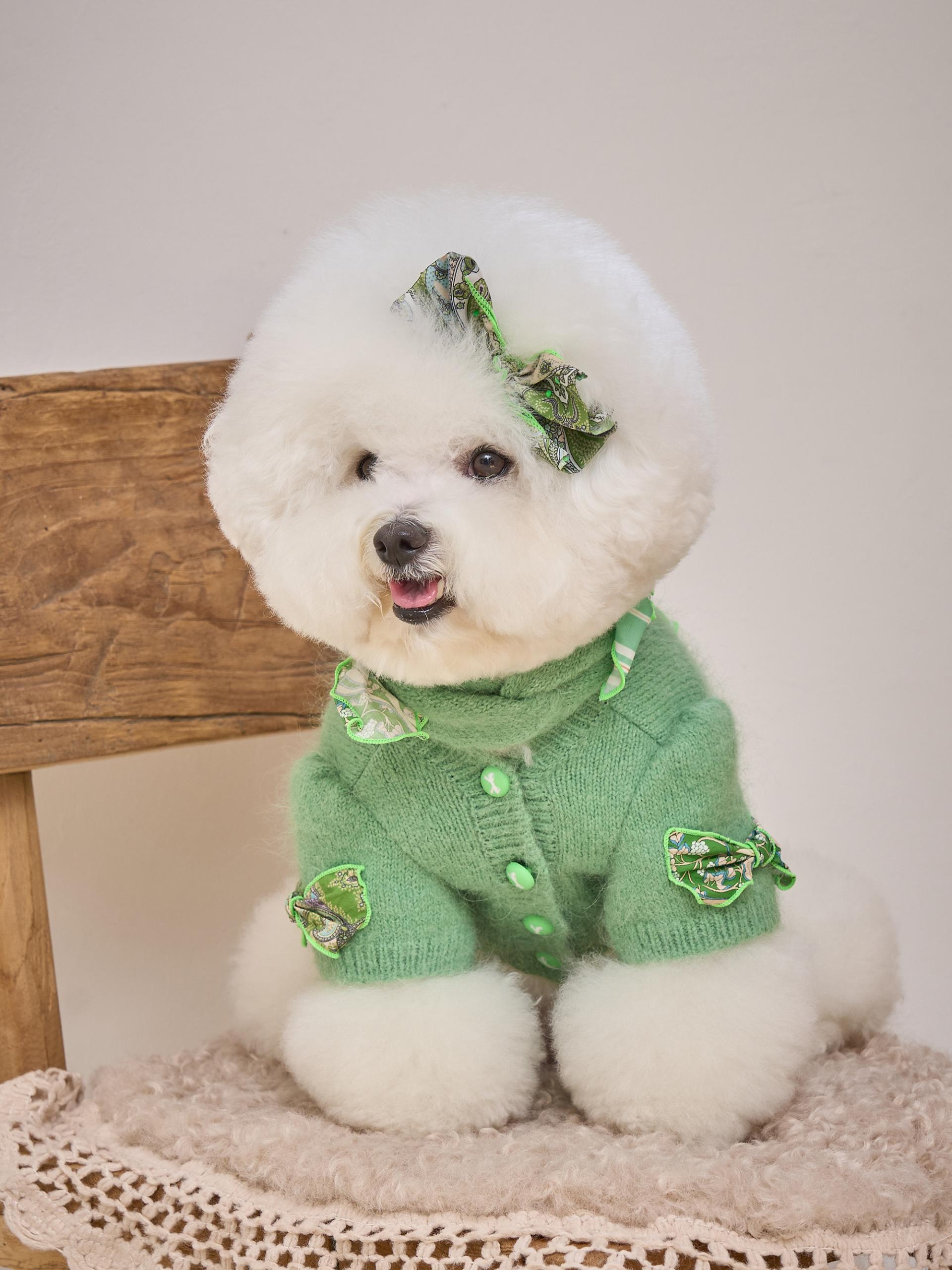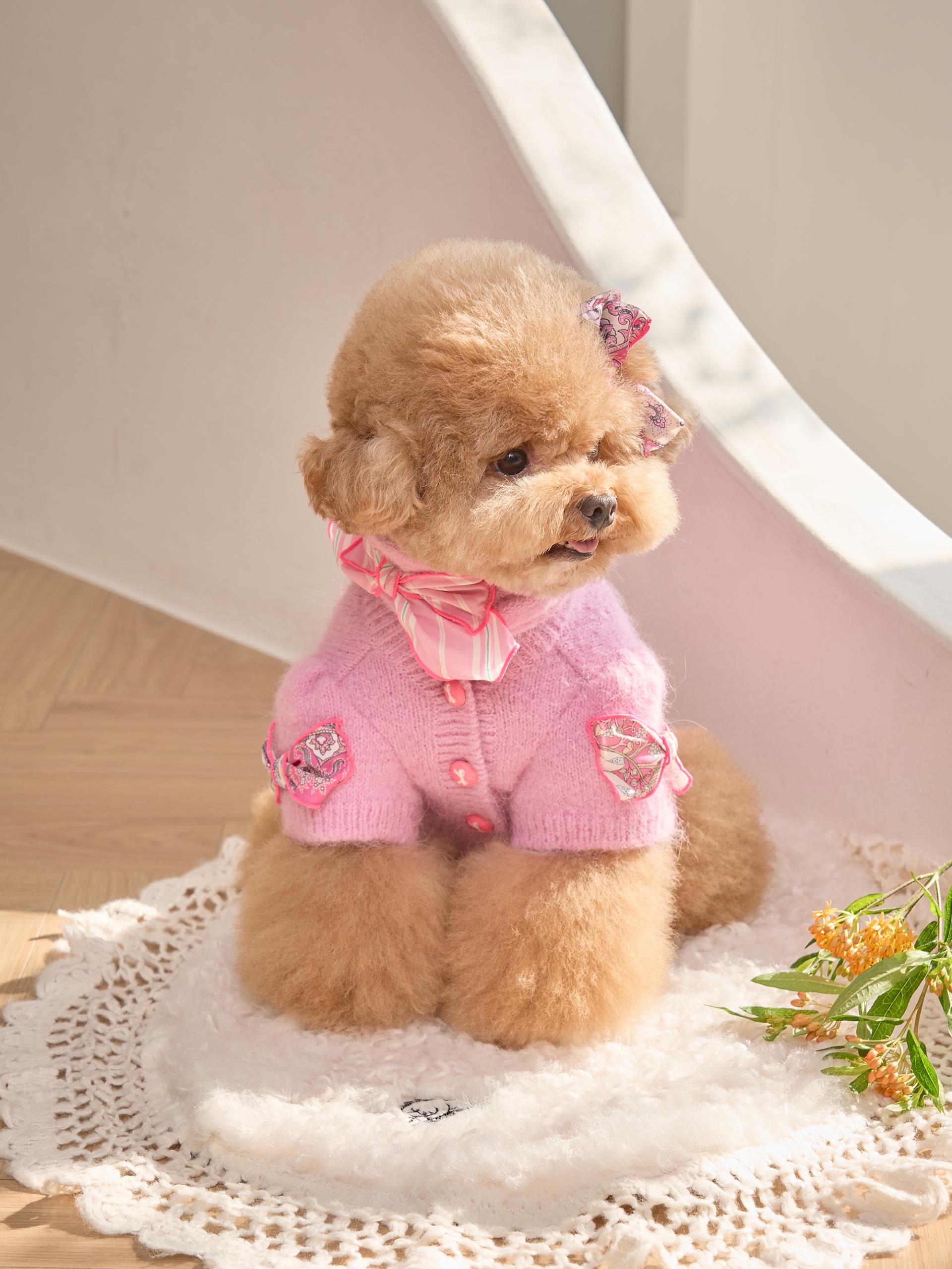 카디건의 소매 부분은 주름 장식이 있는