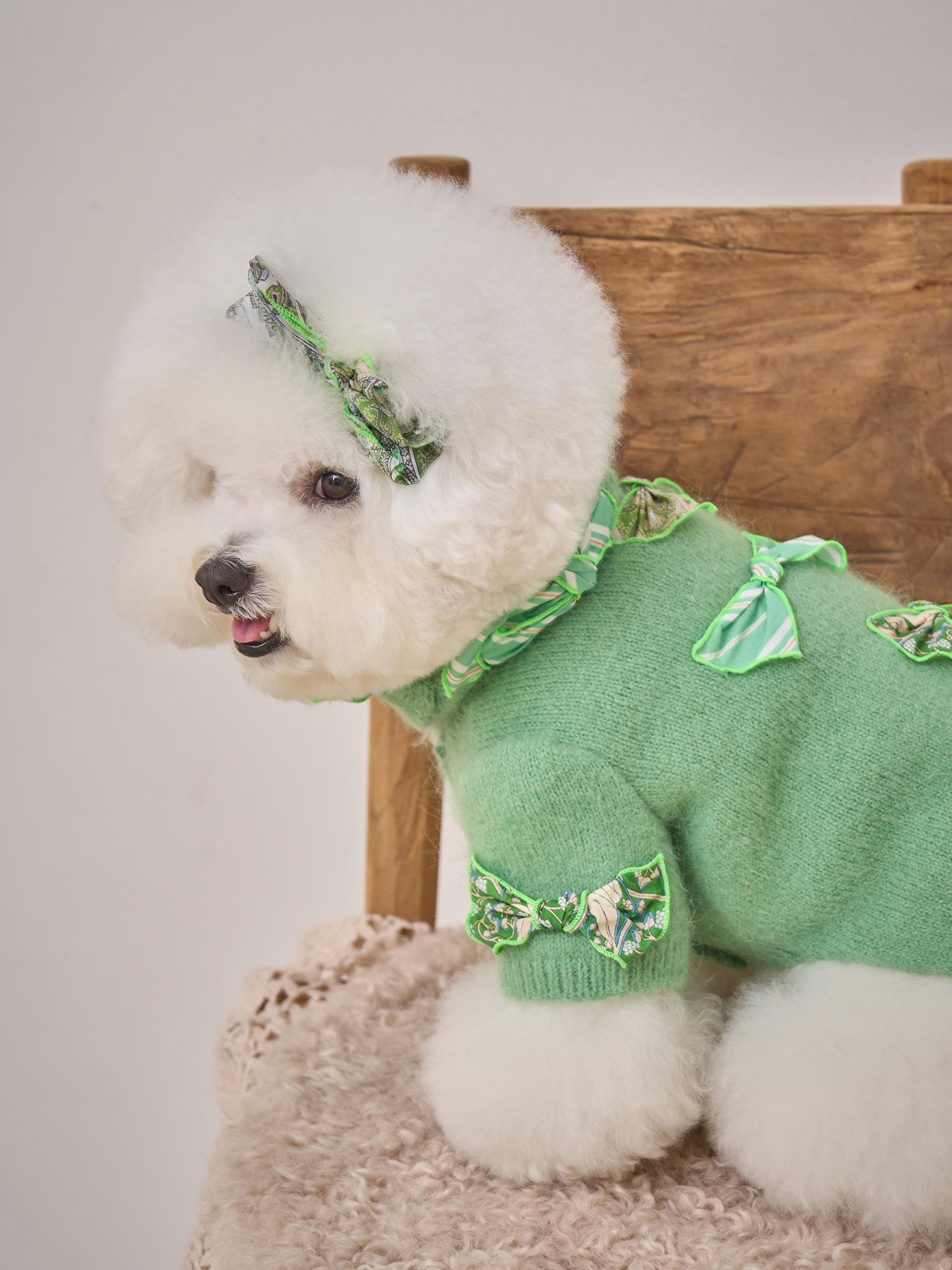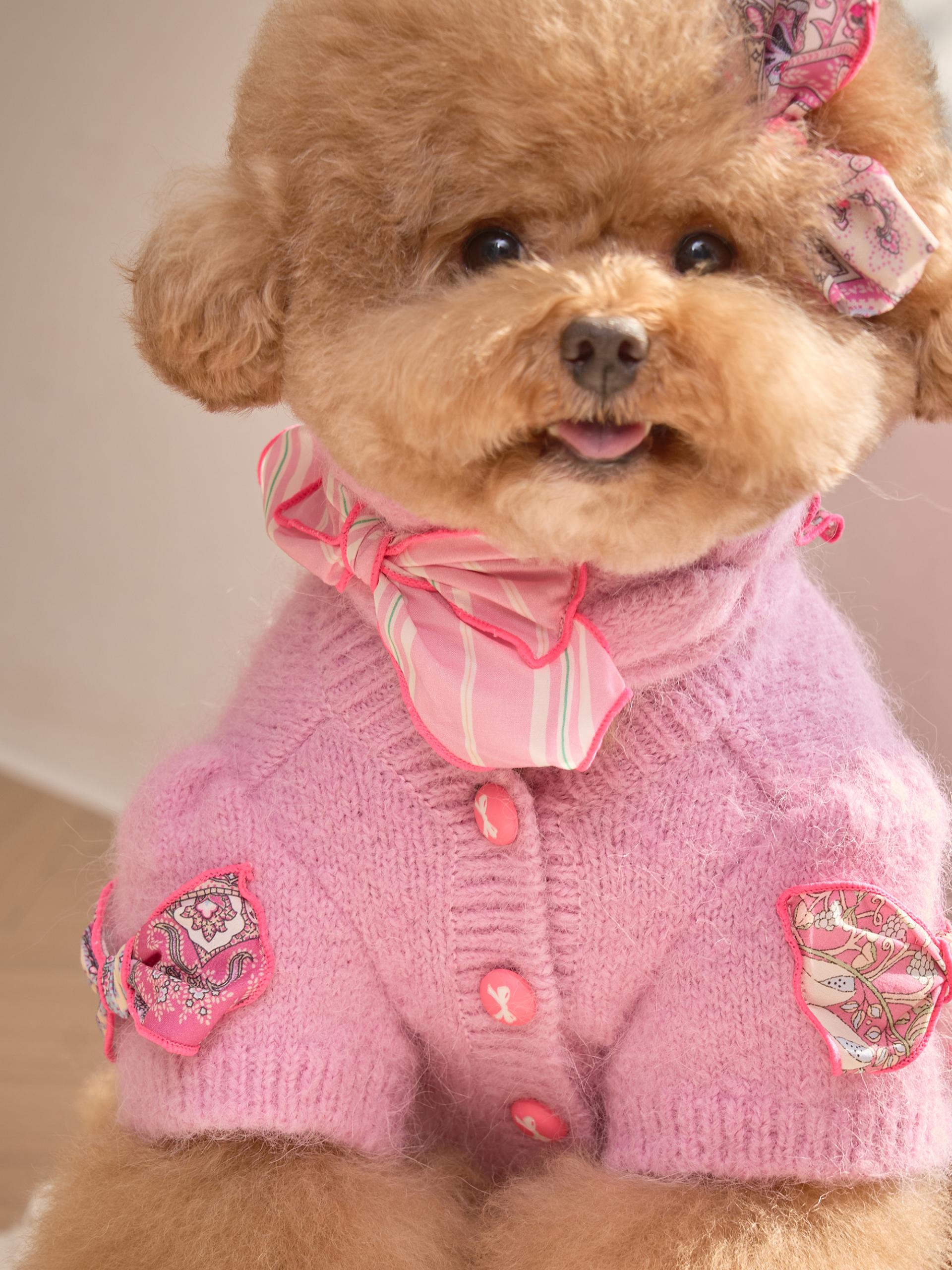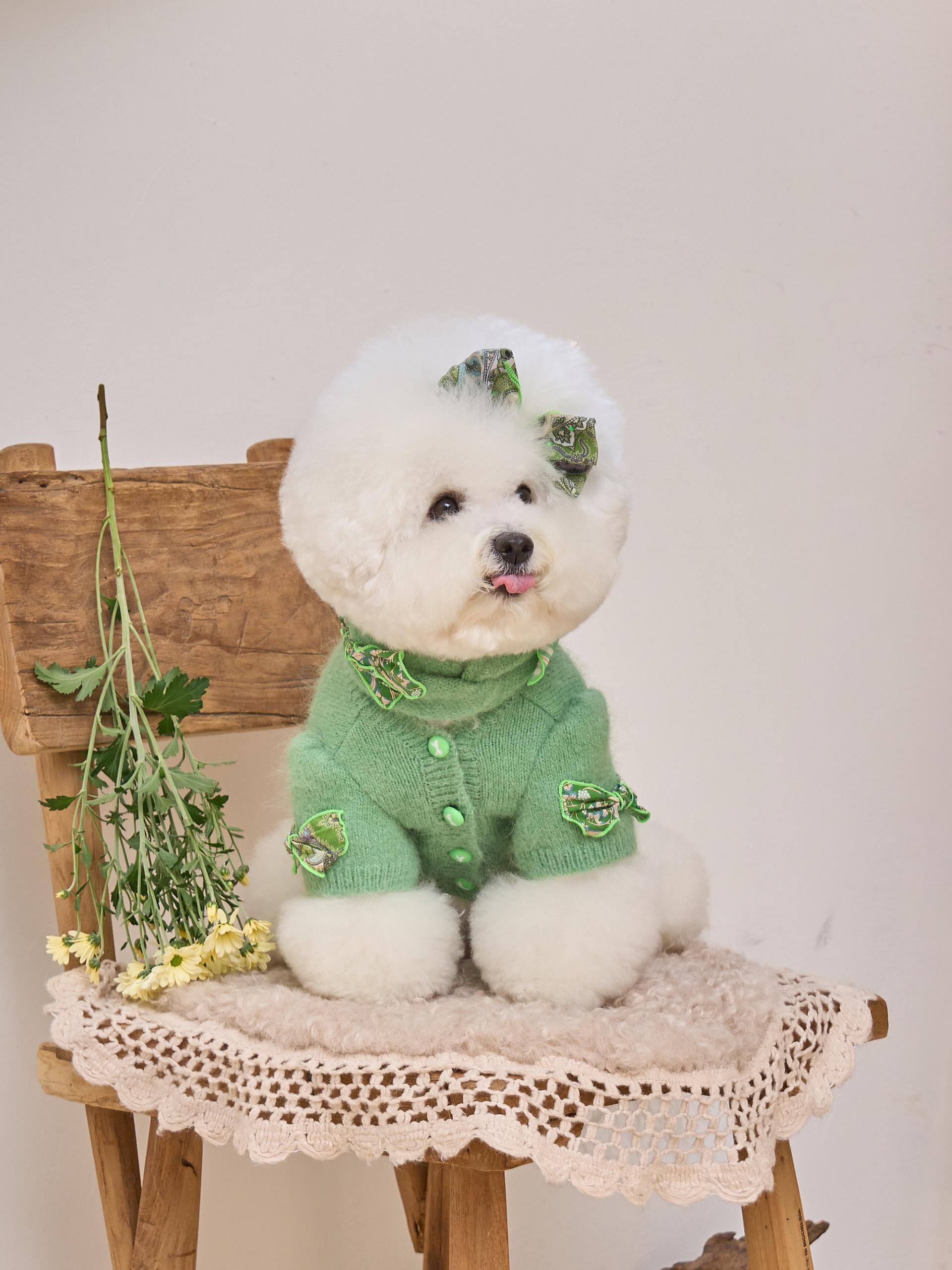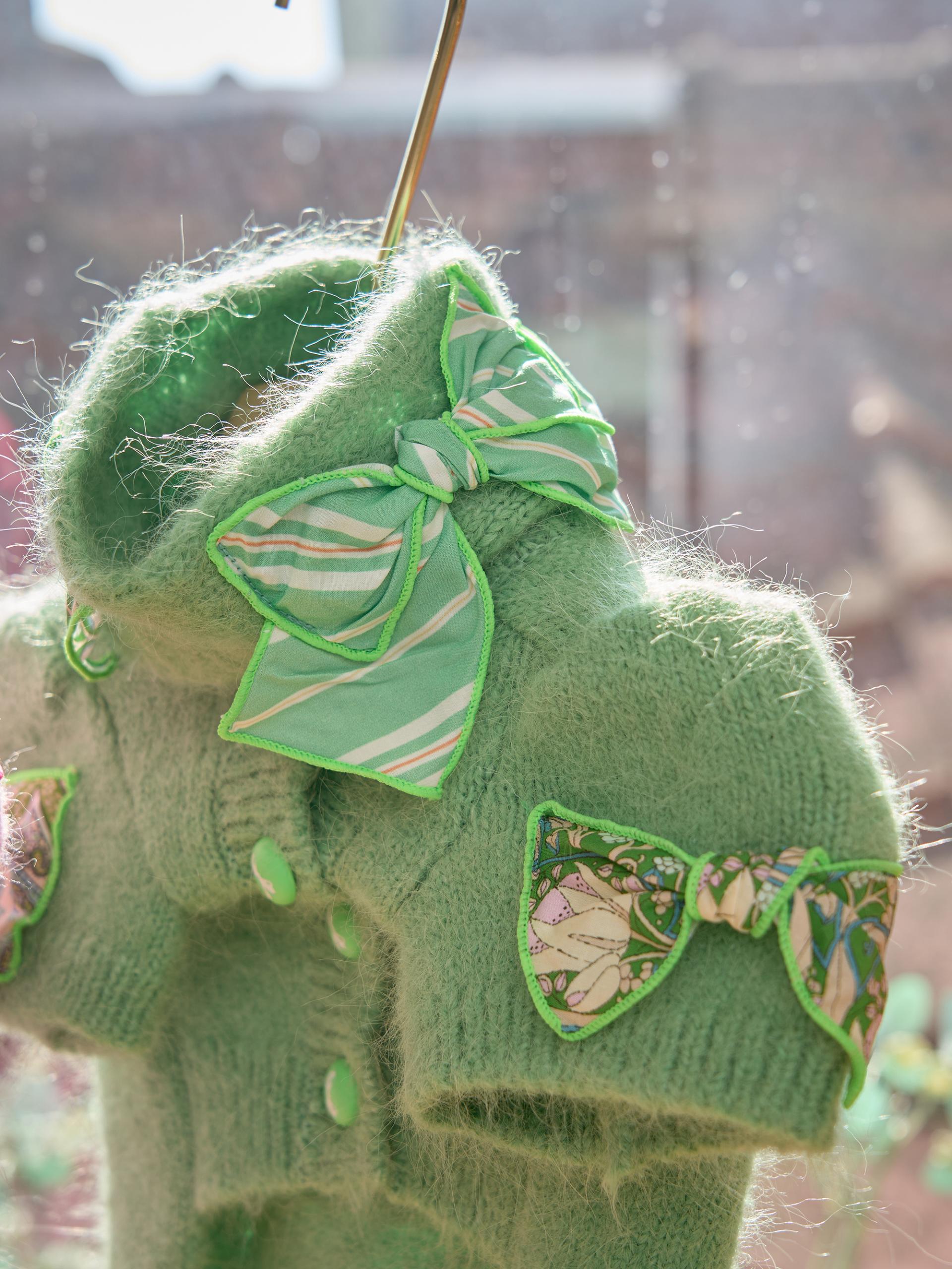 카디건의 소매 부분은 주름 장식이 있는
