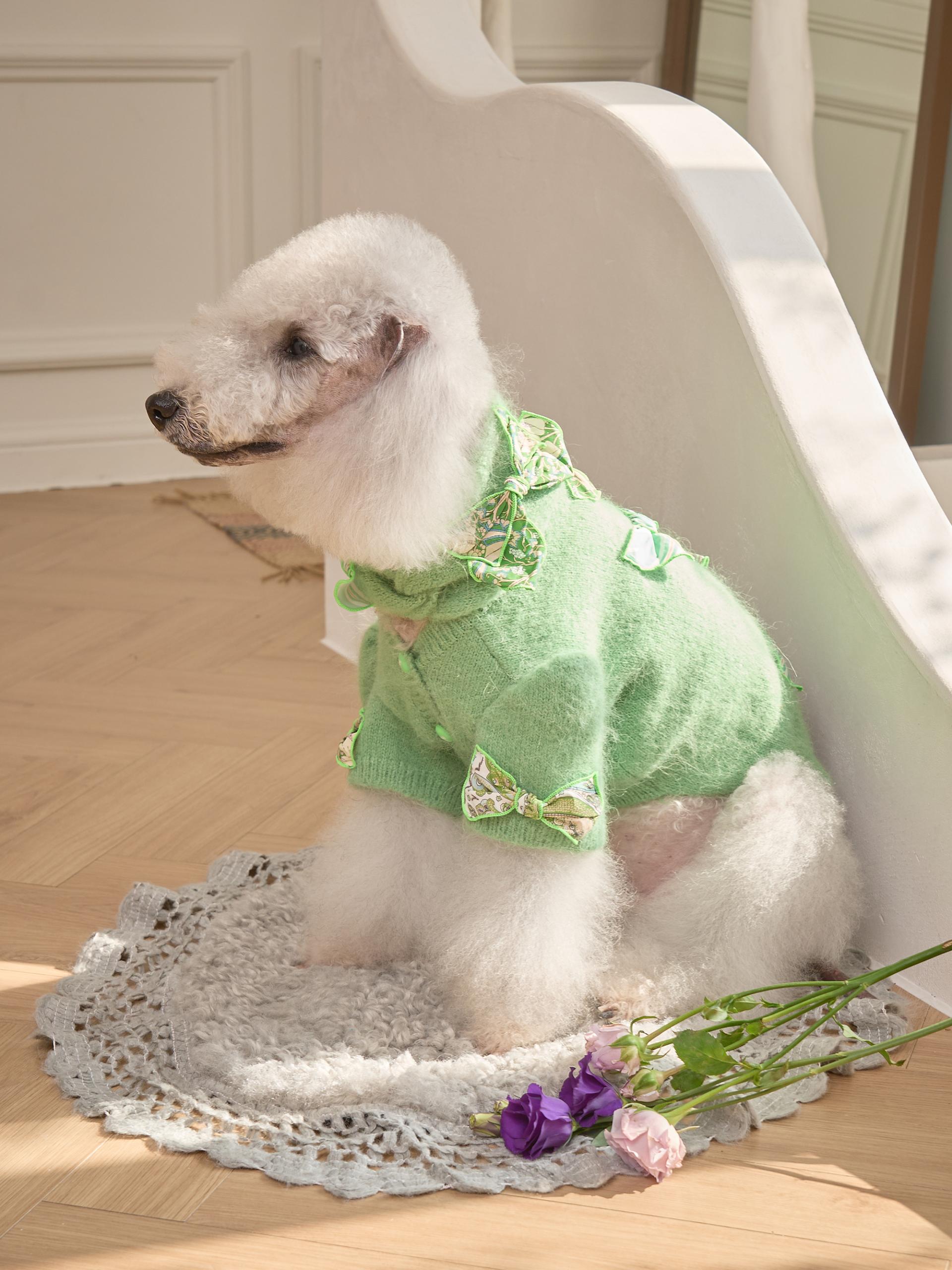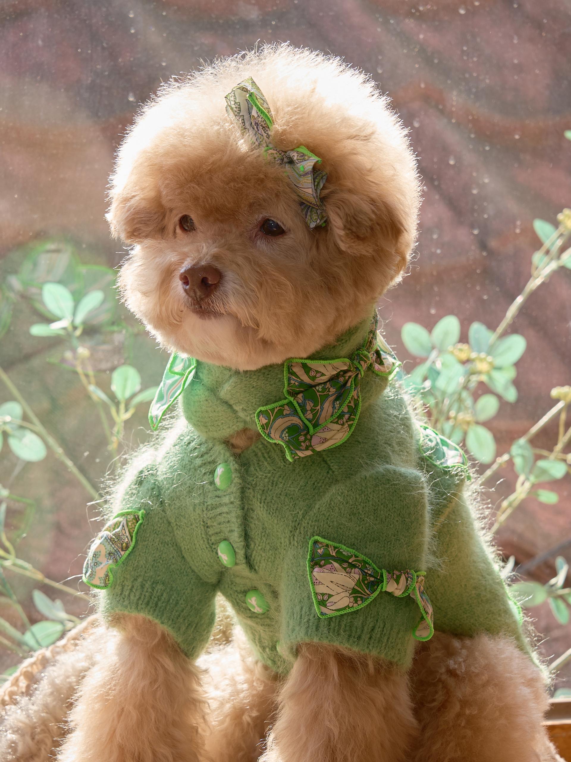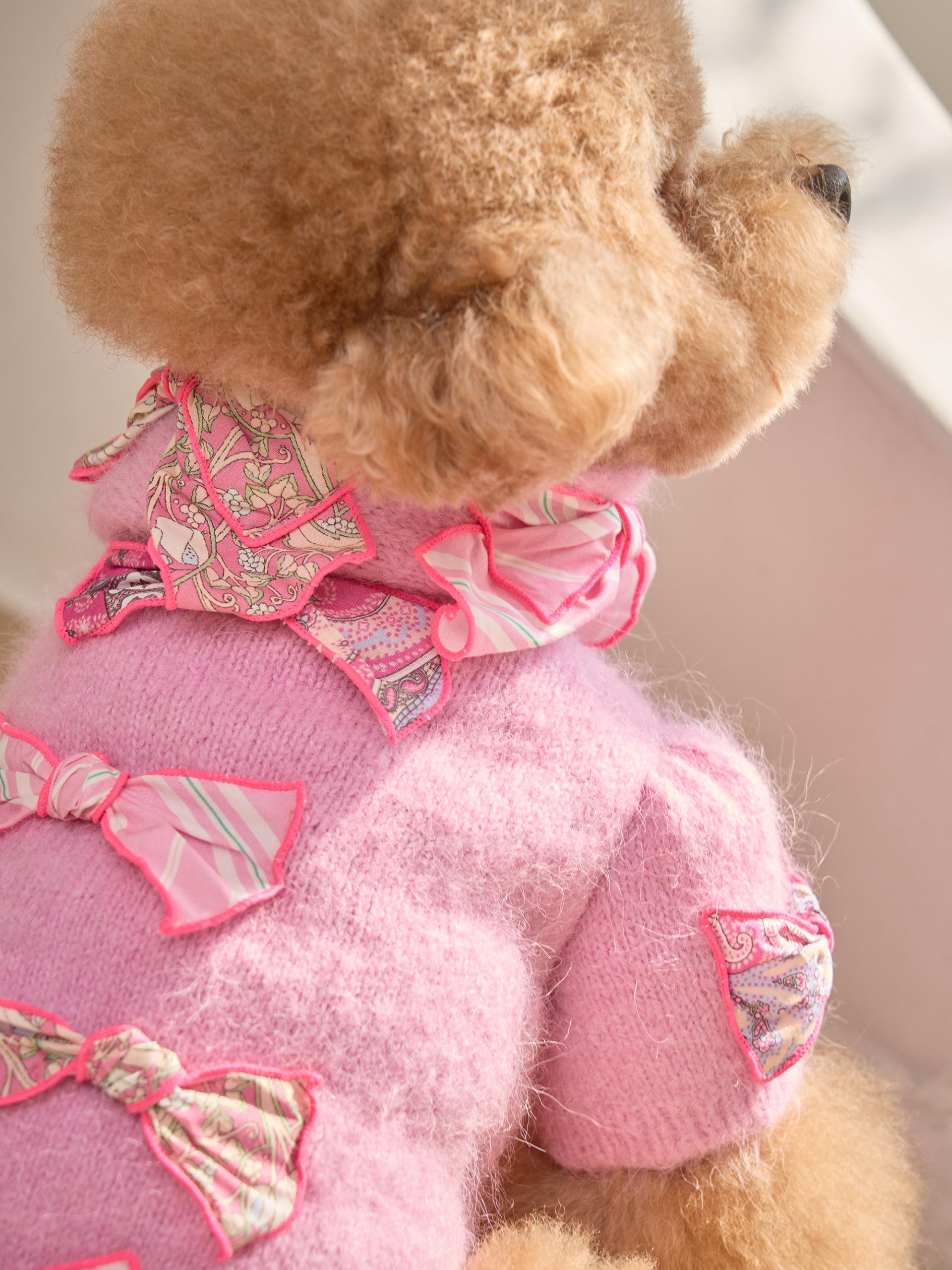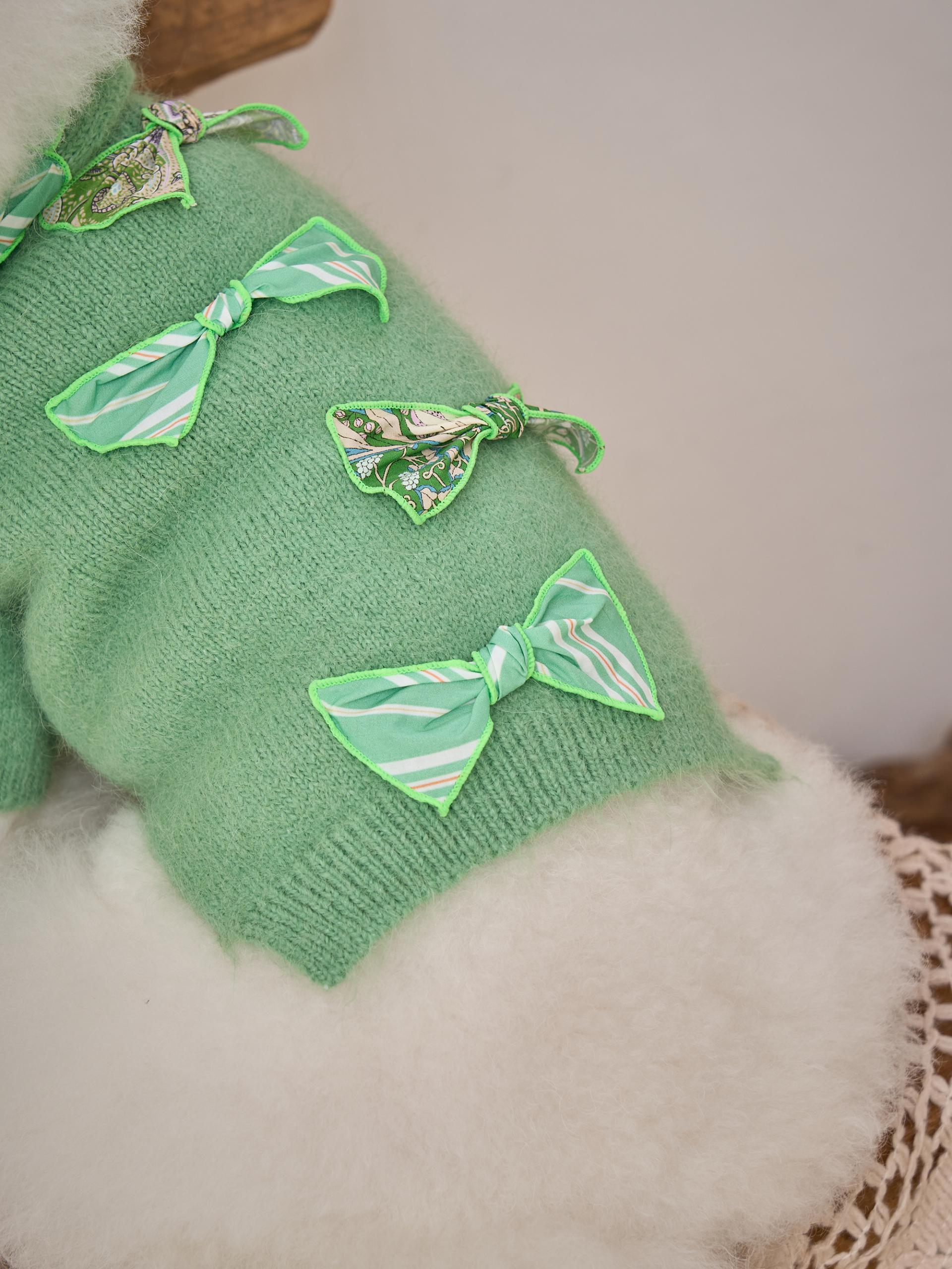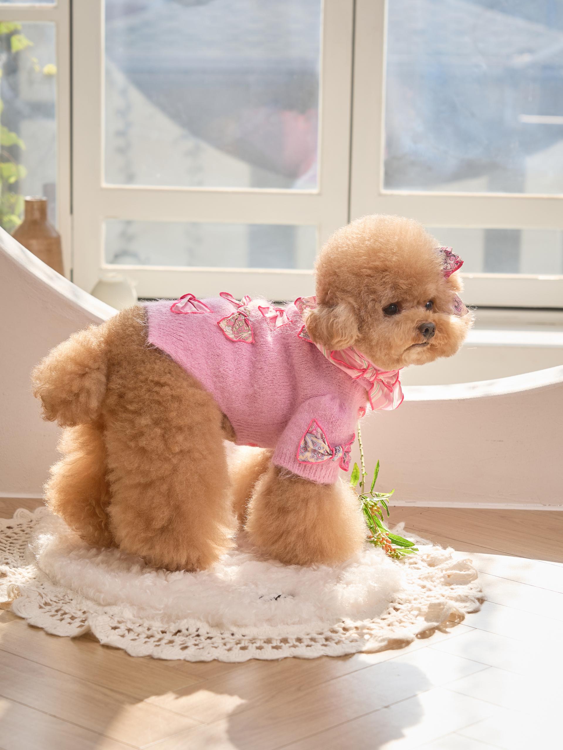 카디건의 소매 부분은 주름 장식이 있는