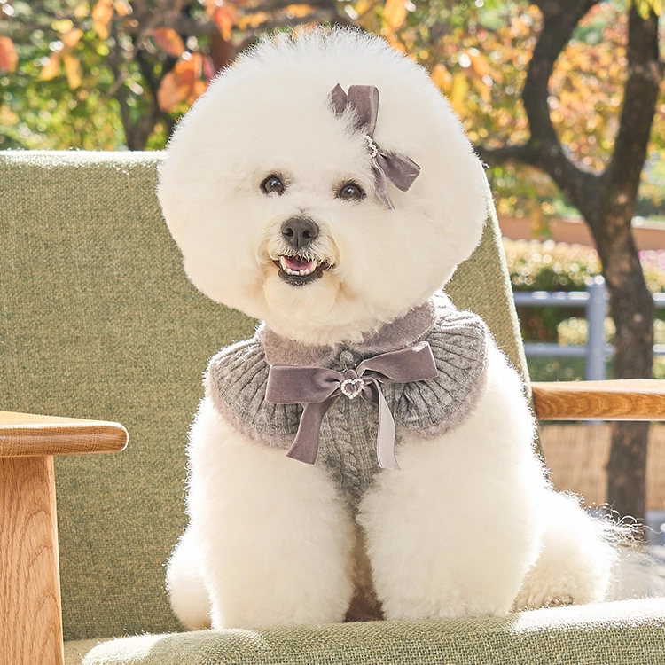 카라와 소매단에 따뜻한 터치감의 헤어리 한 니트 부속단이 달려있고