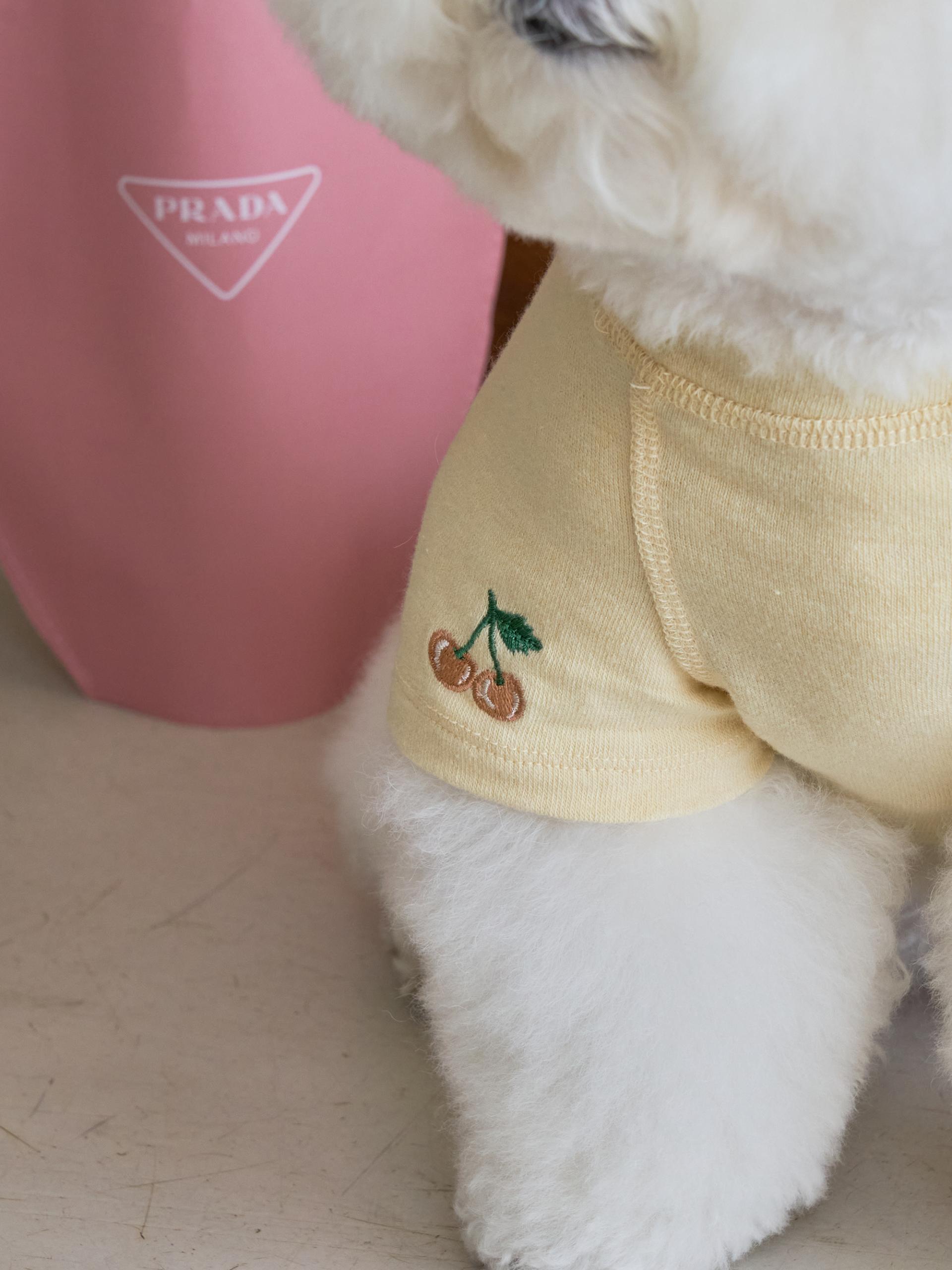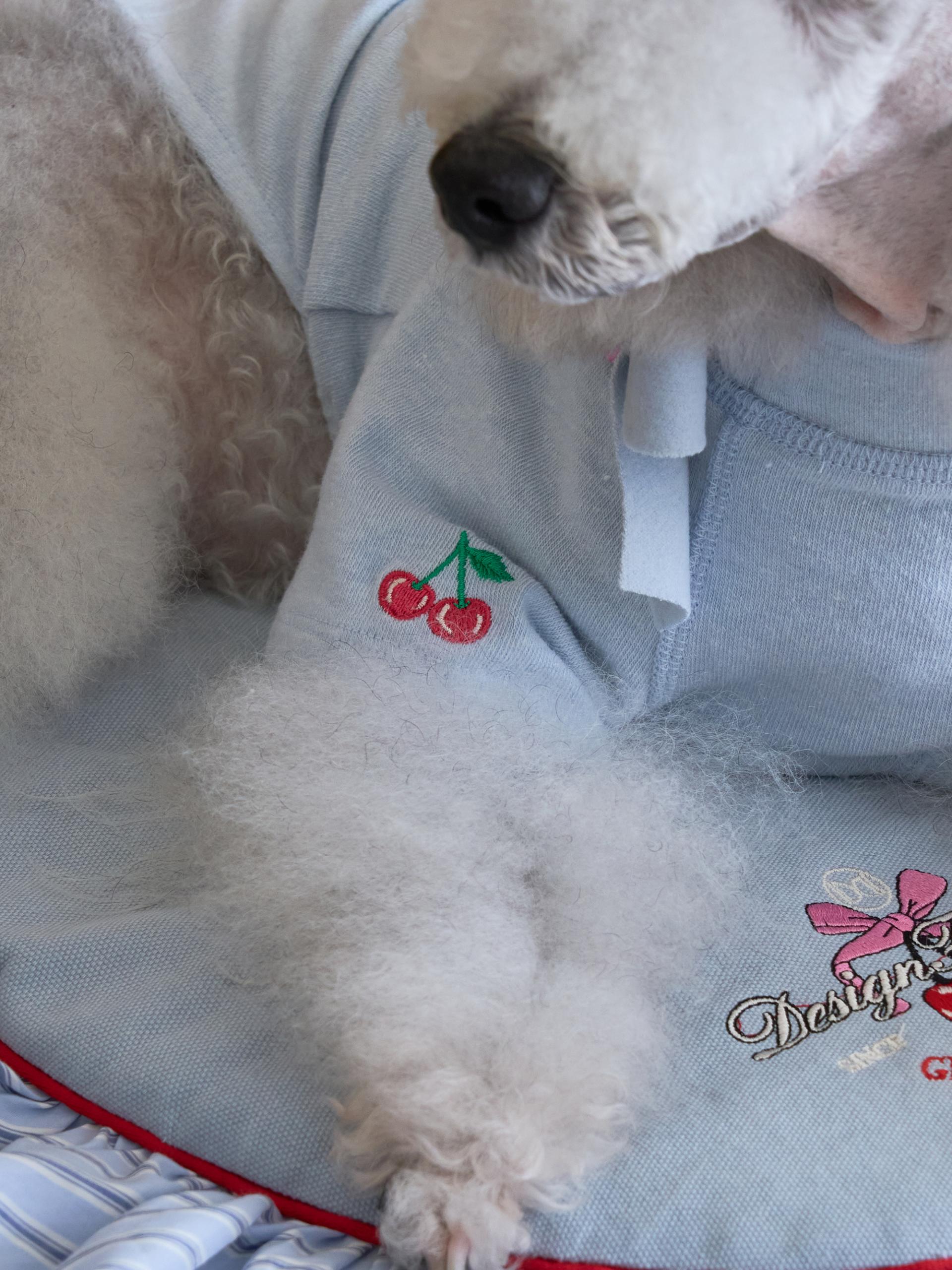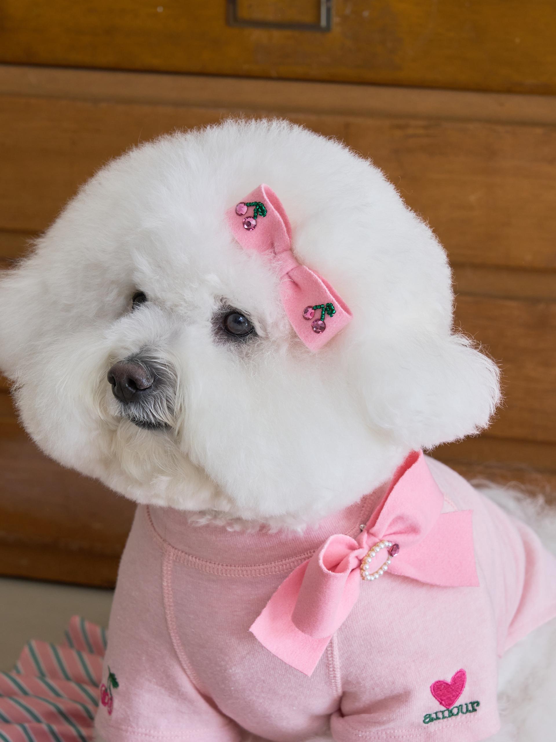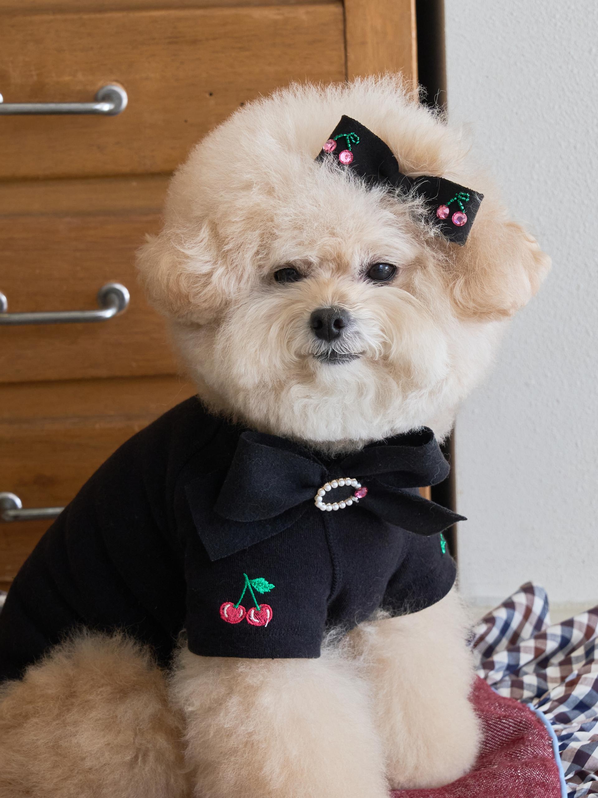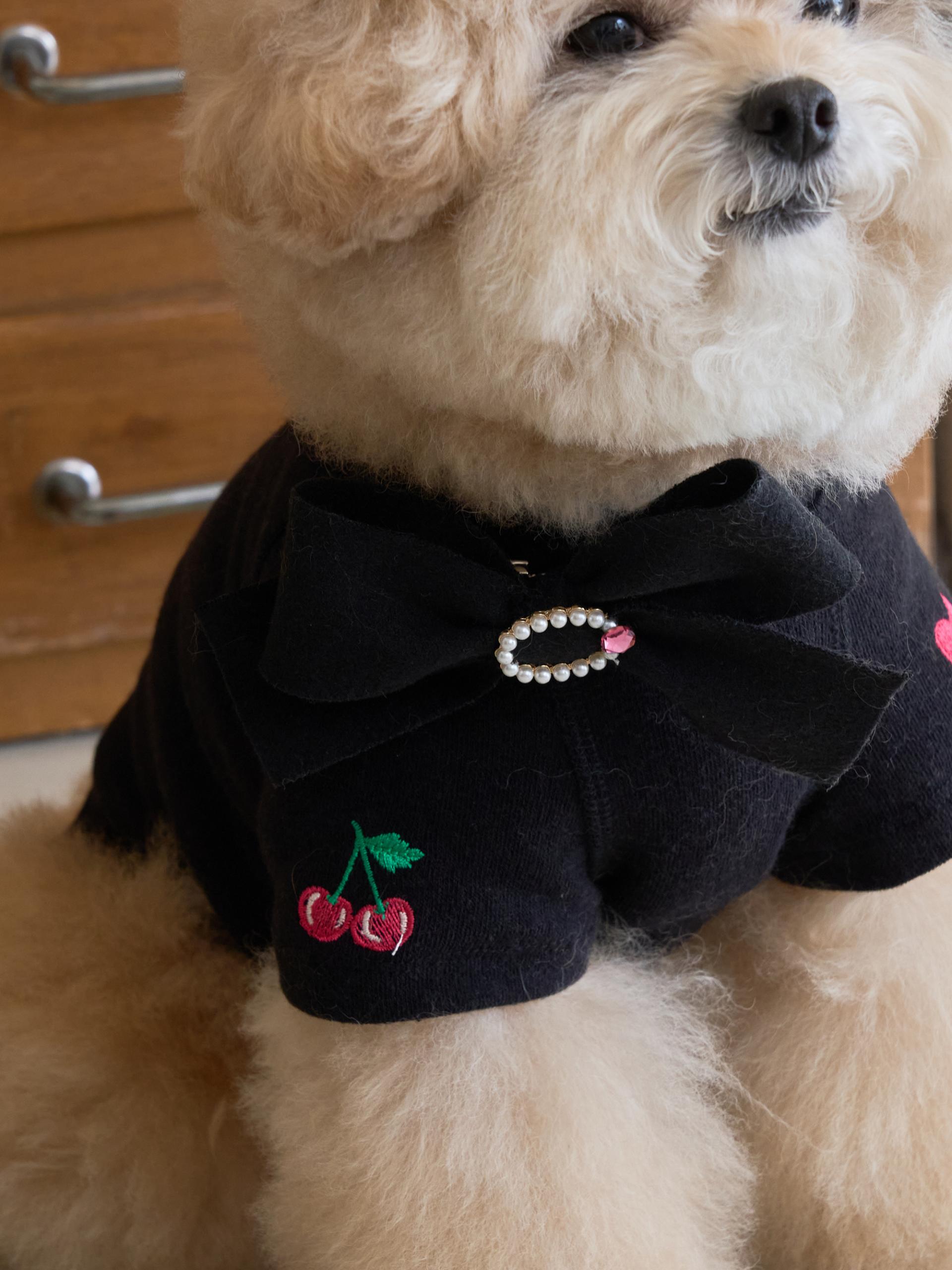 양쪽 팔에 귀여운 체리와 하트 자수가 놓여있는