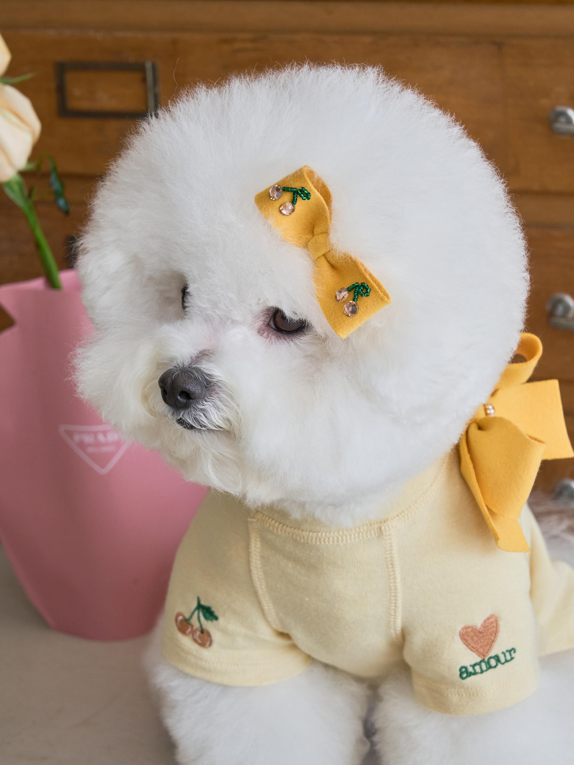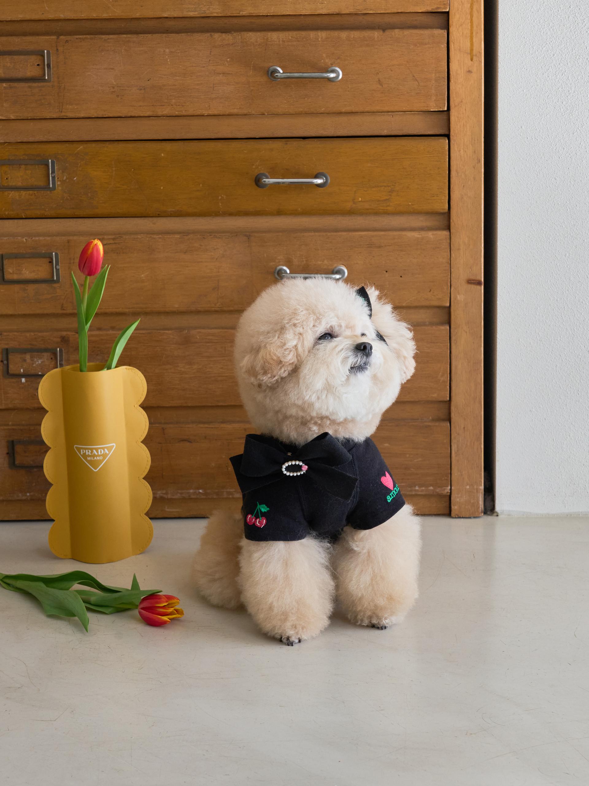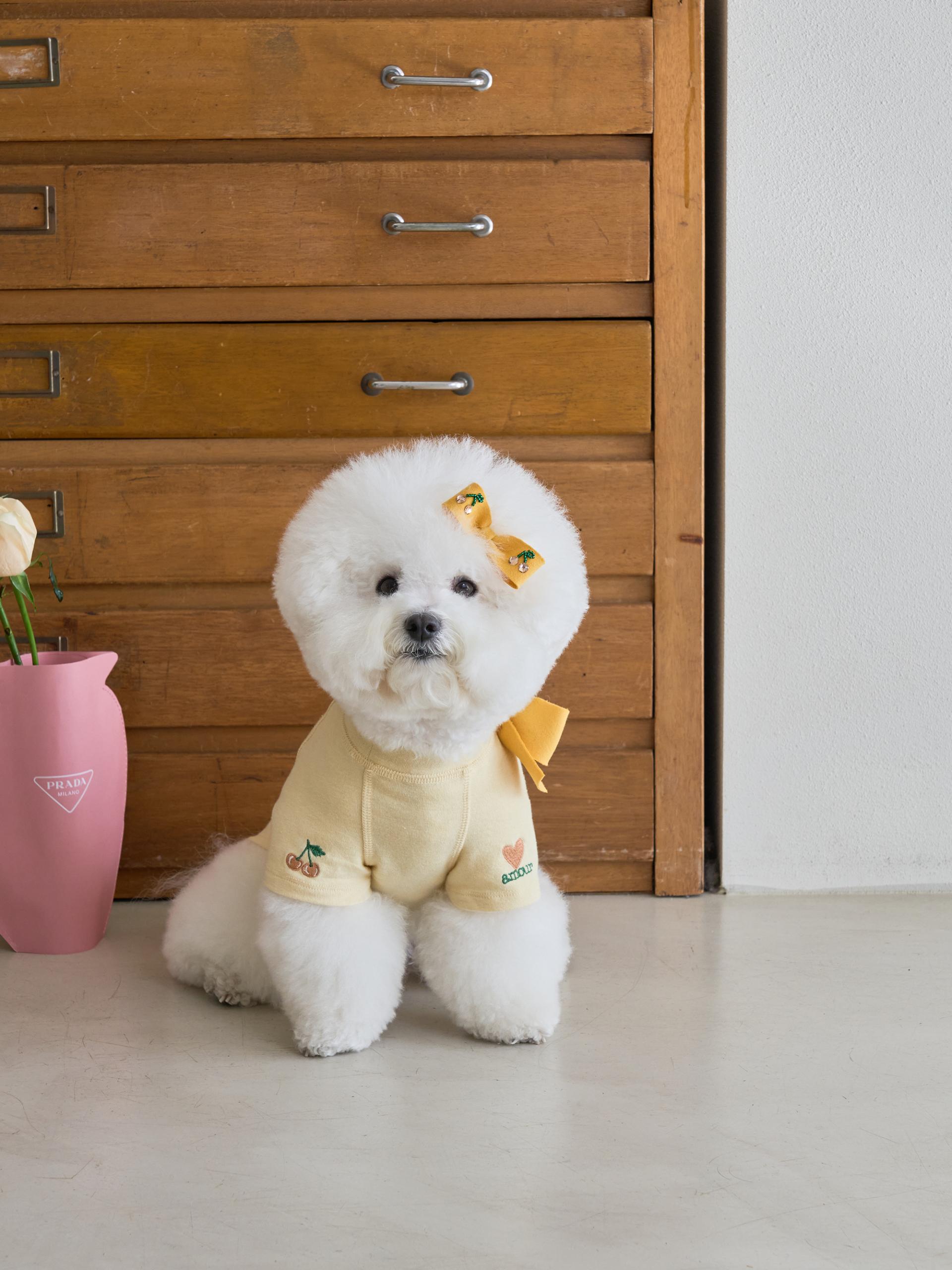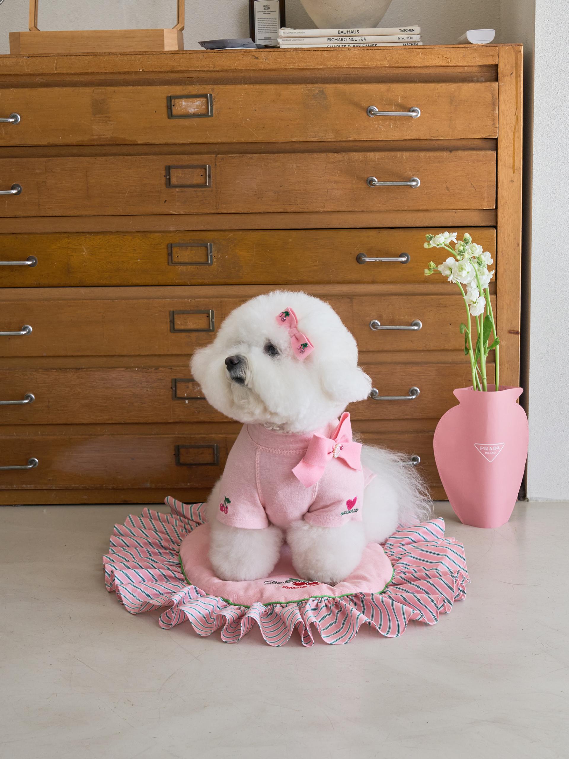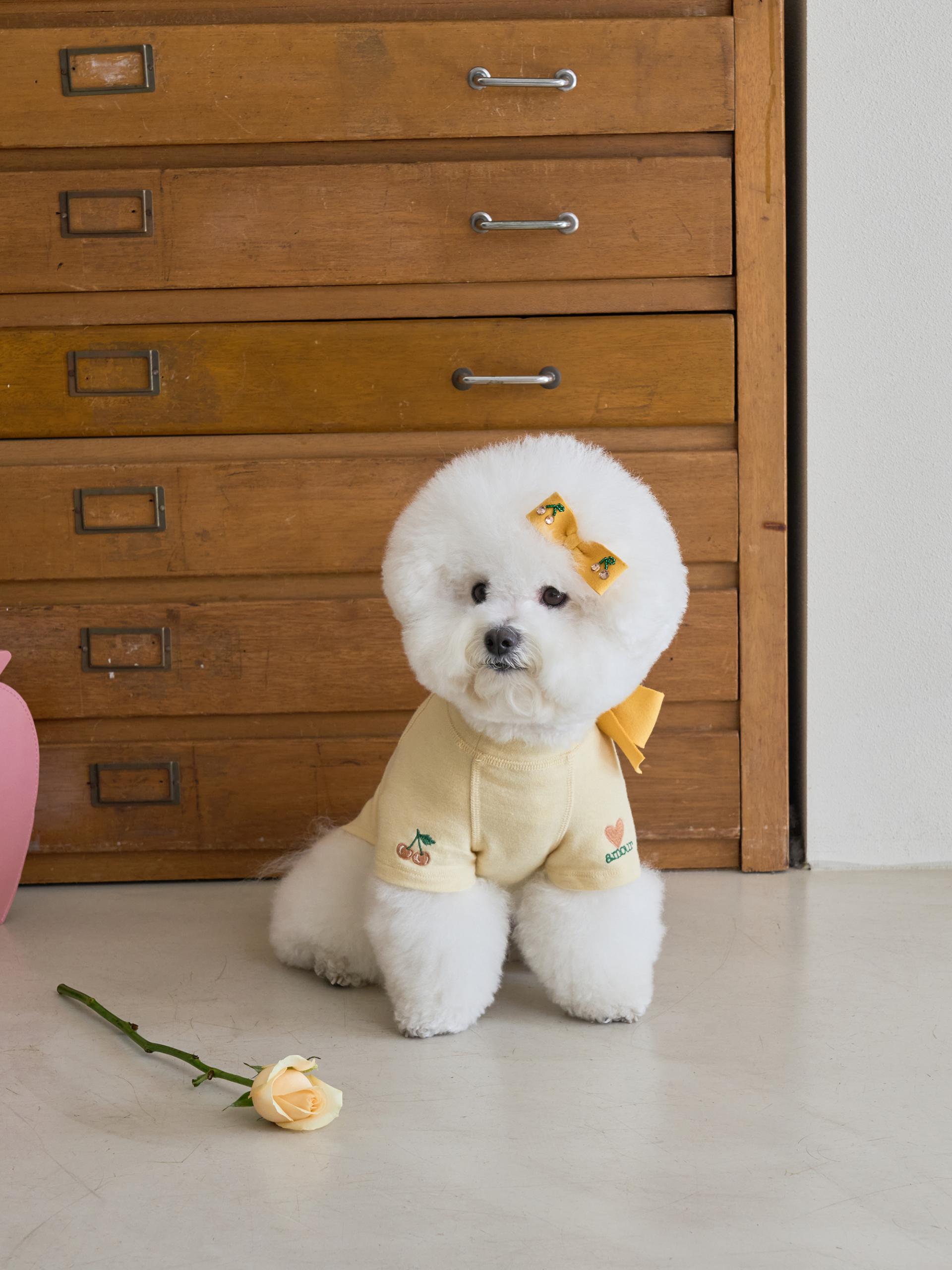 양쪽 팔에 귀여운 체리와 하트 자수가 놓여있는