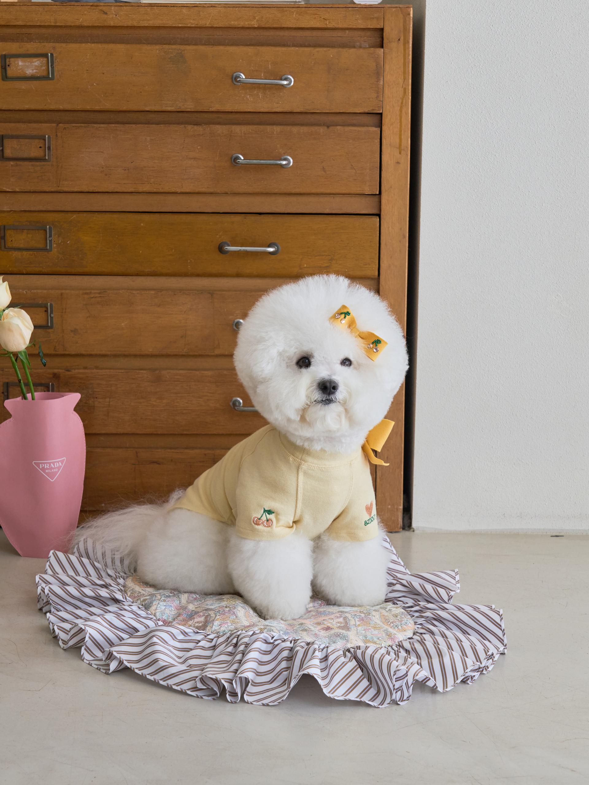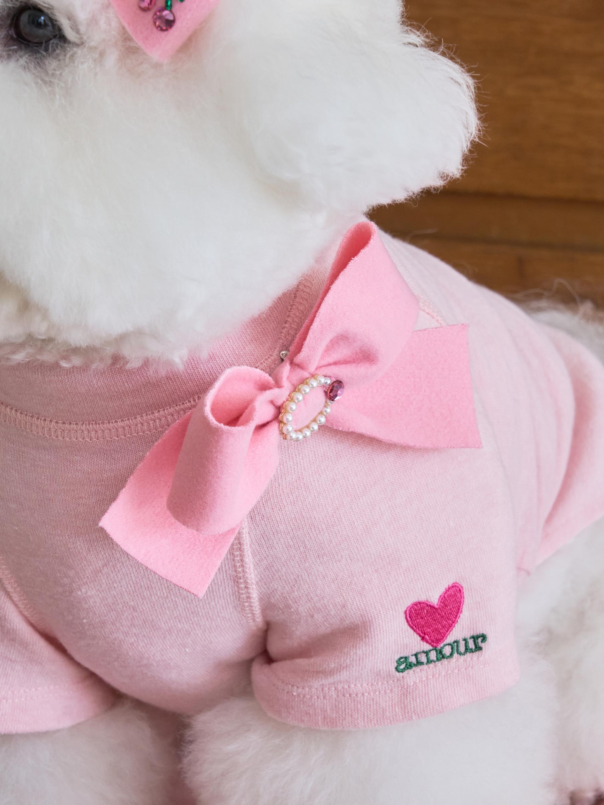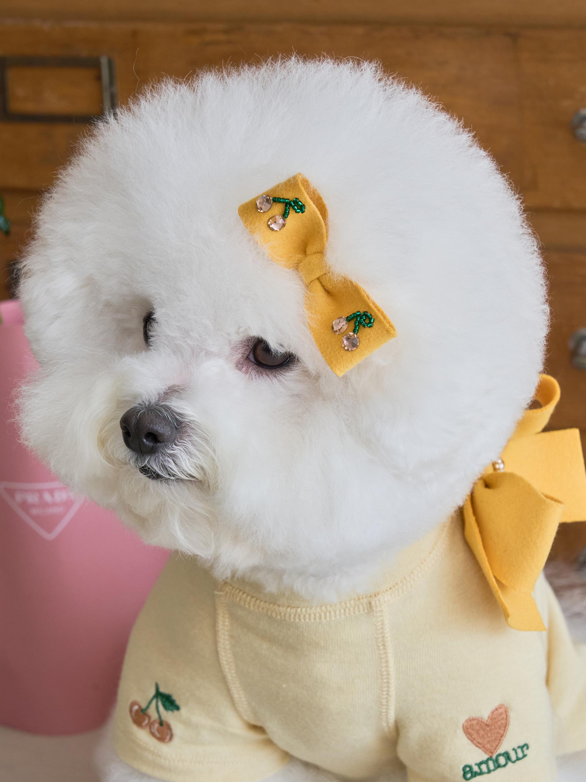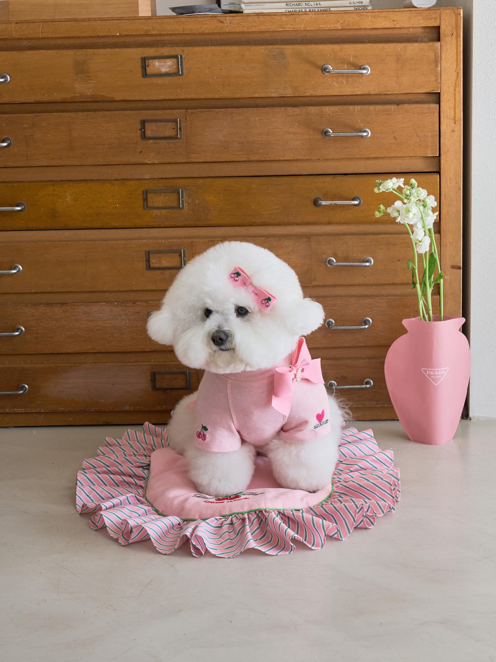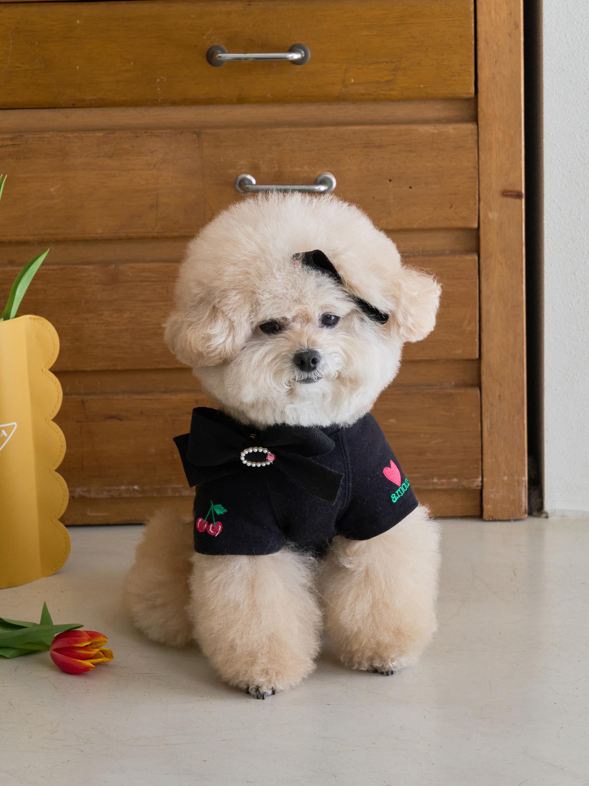 양쪽 팔에 귀여운 체리와 하트 자수가 놓여있는