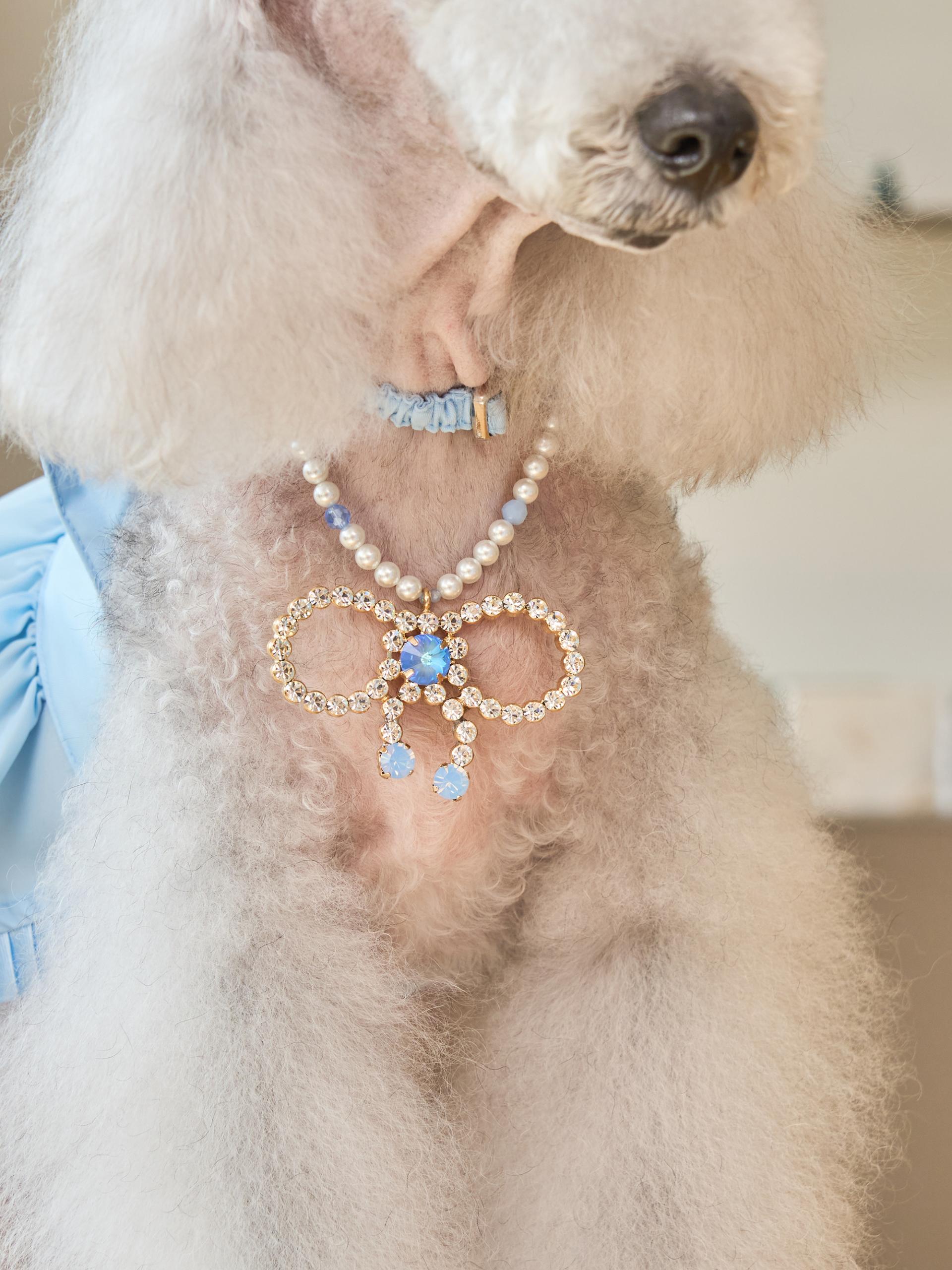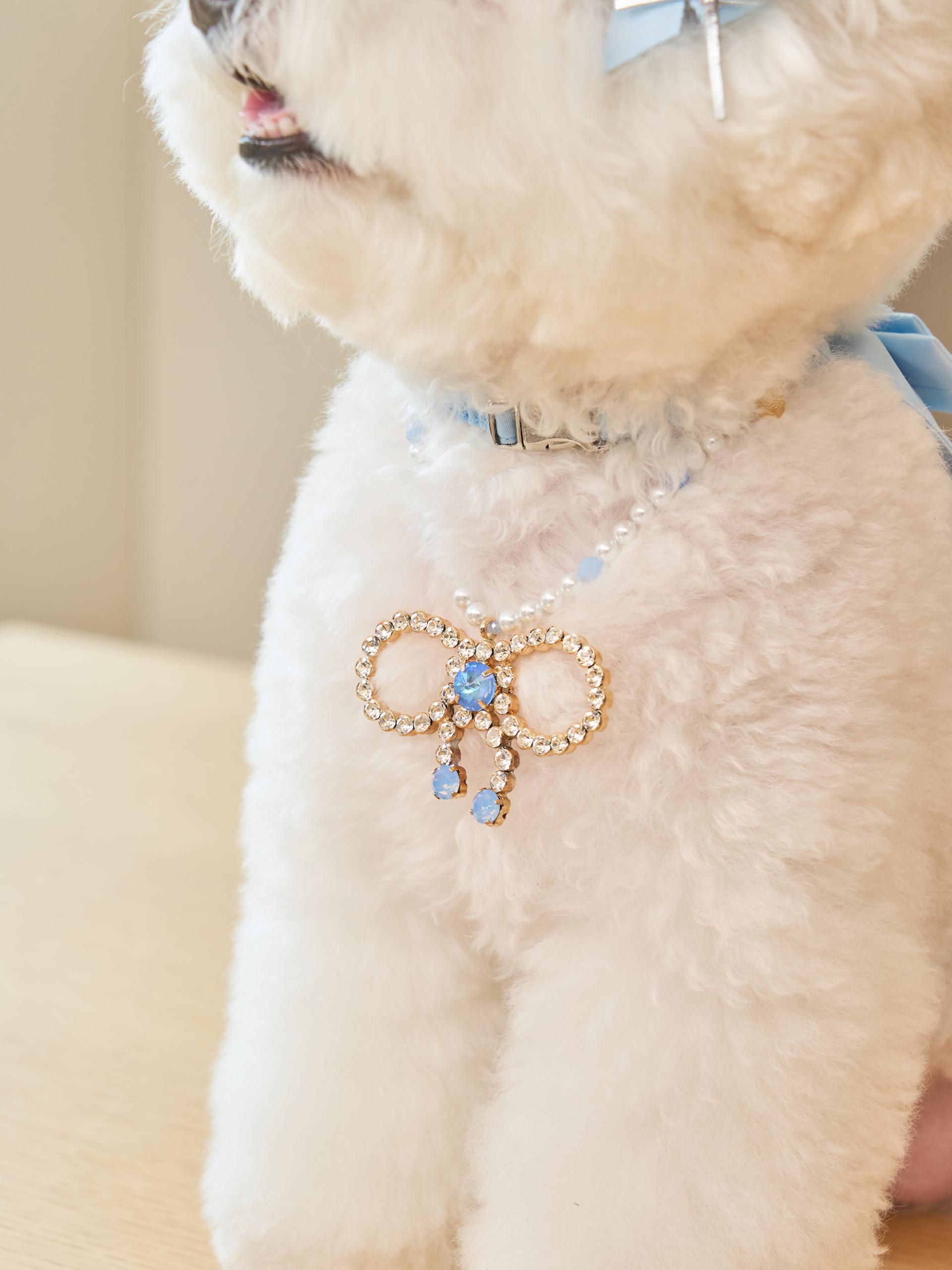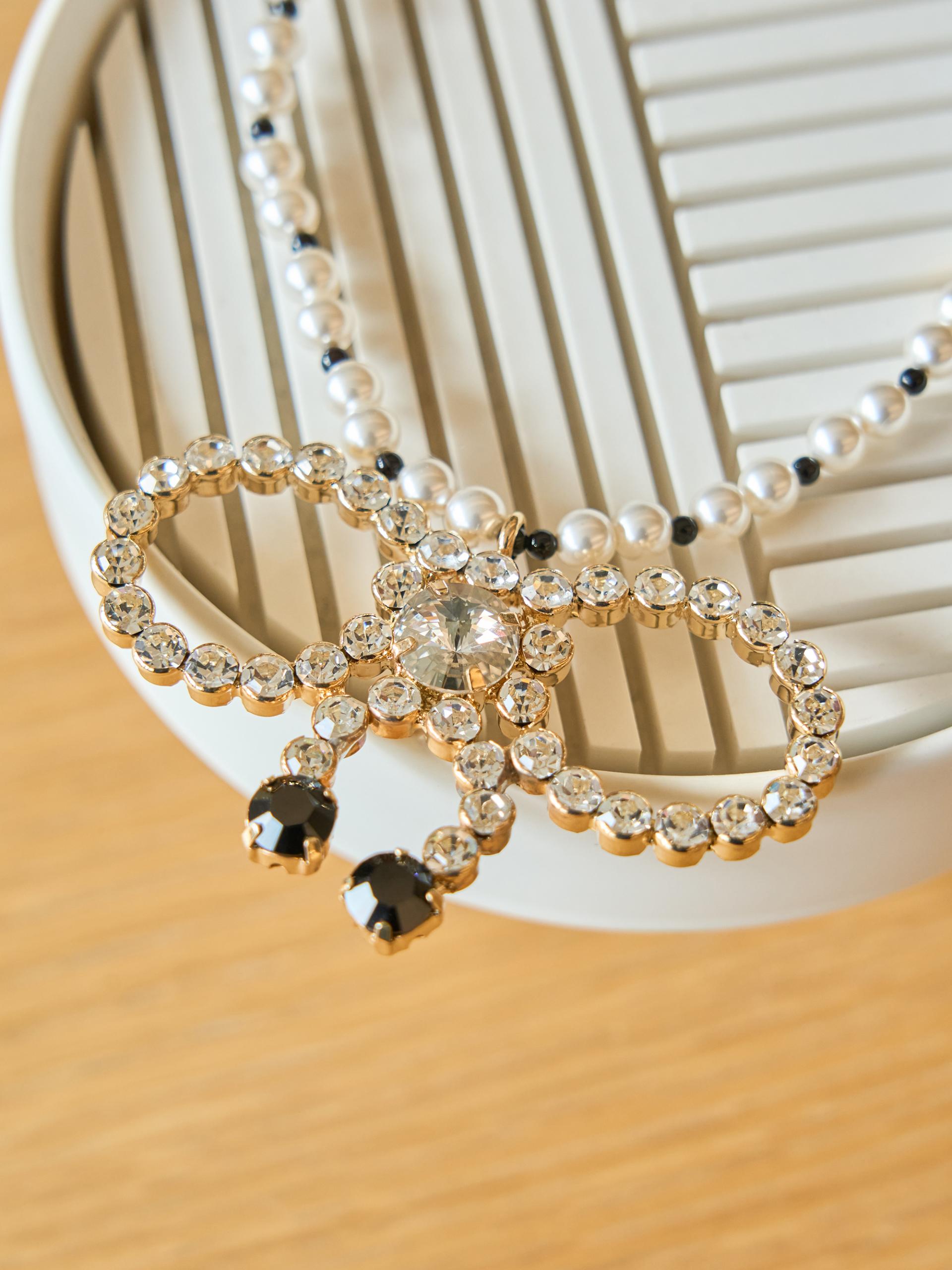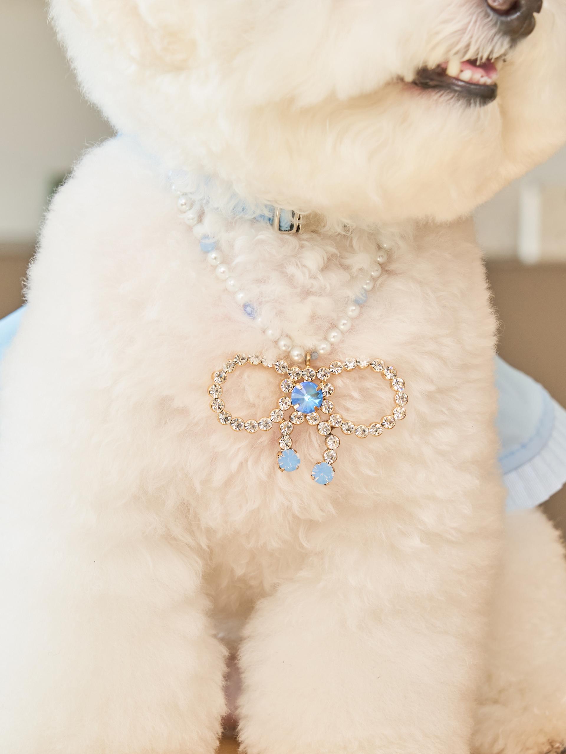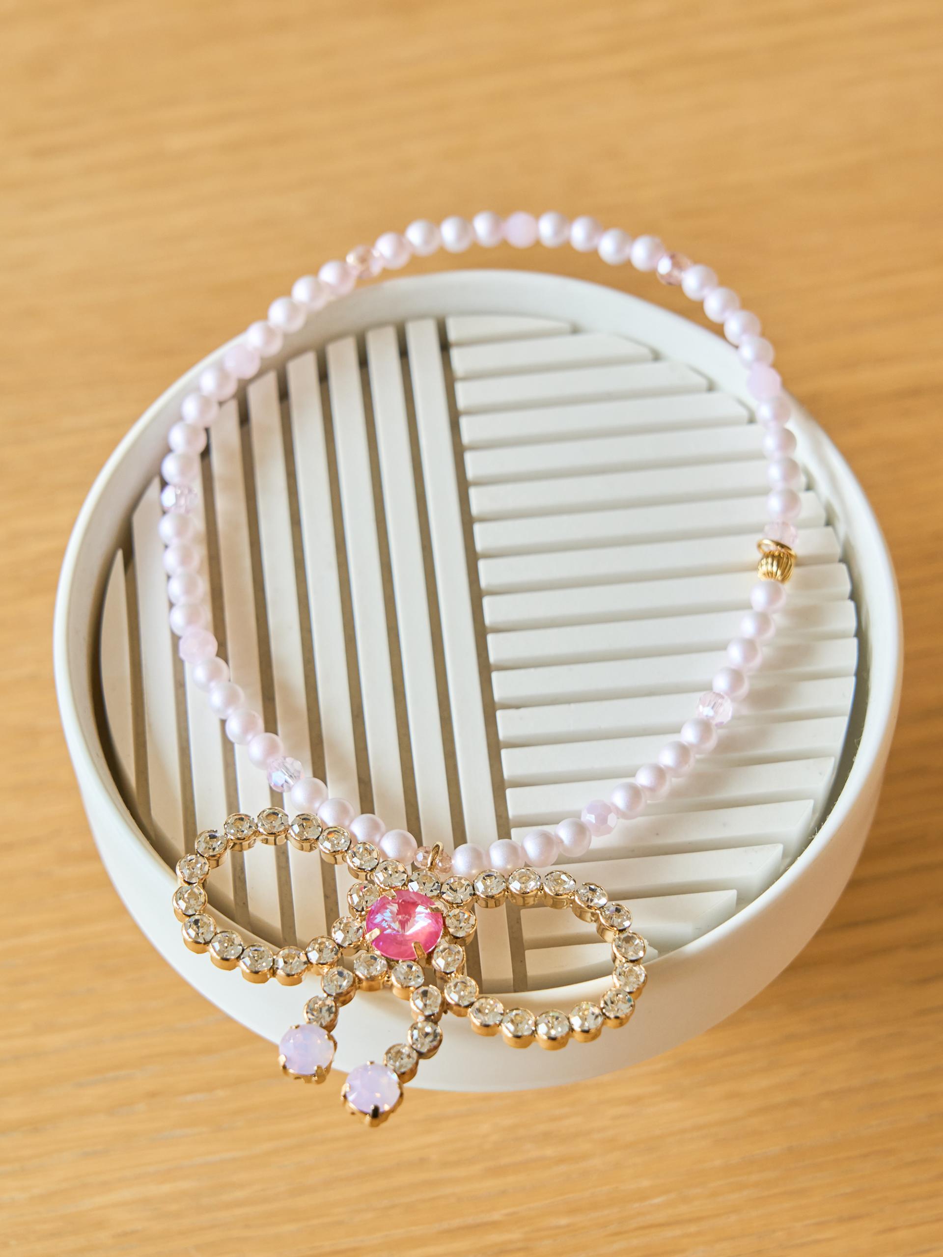 전체가 크리스털로 제작된 리본 모양의 펜던트 목걸이입니다.