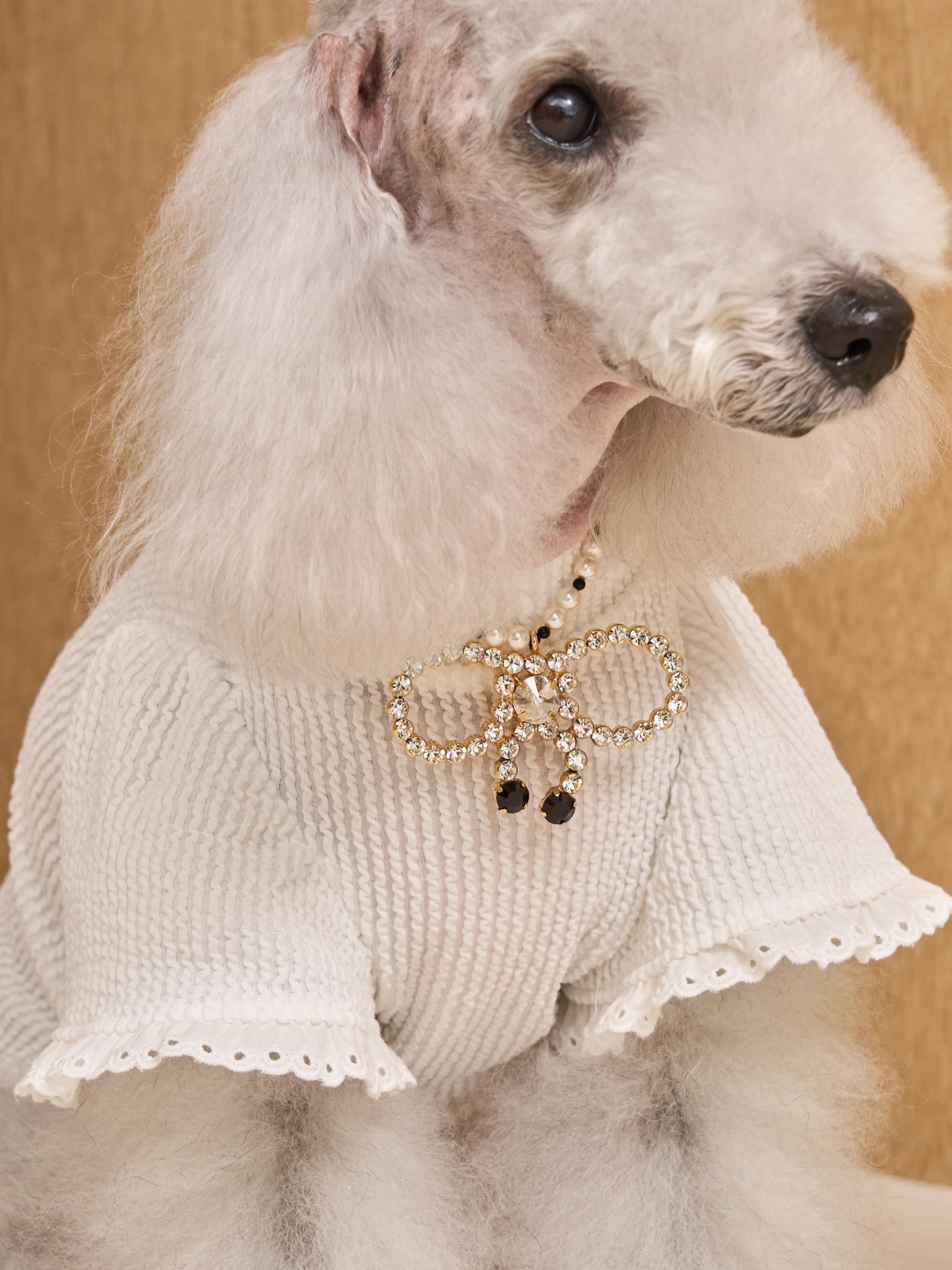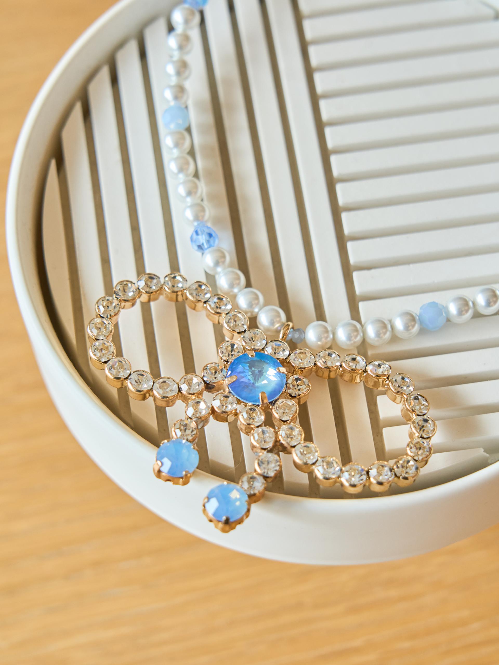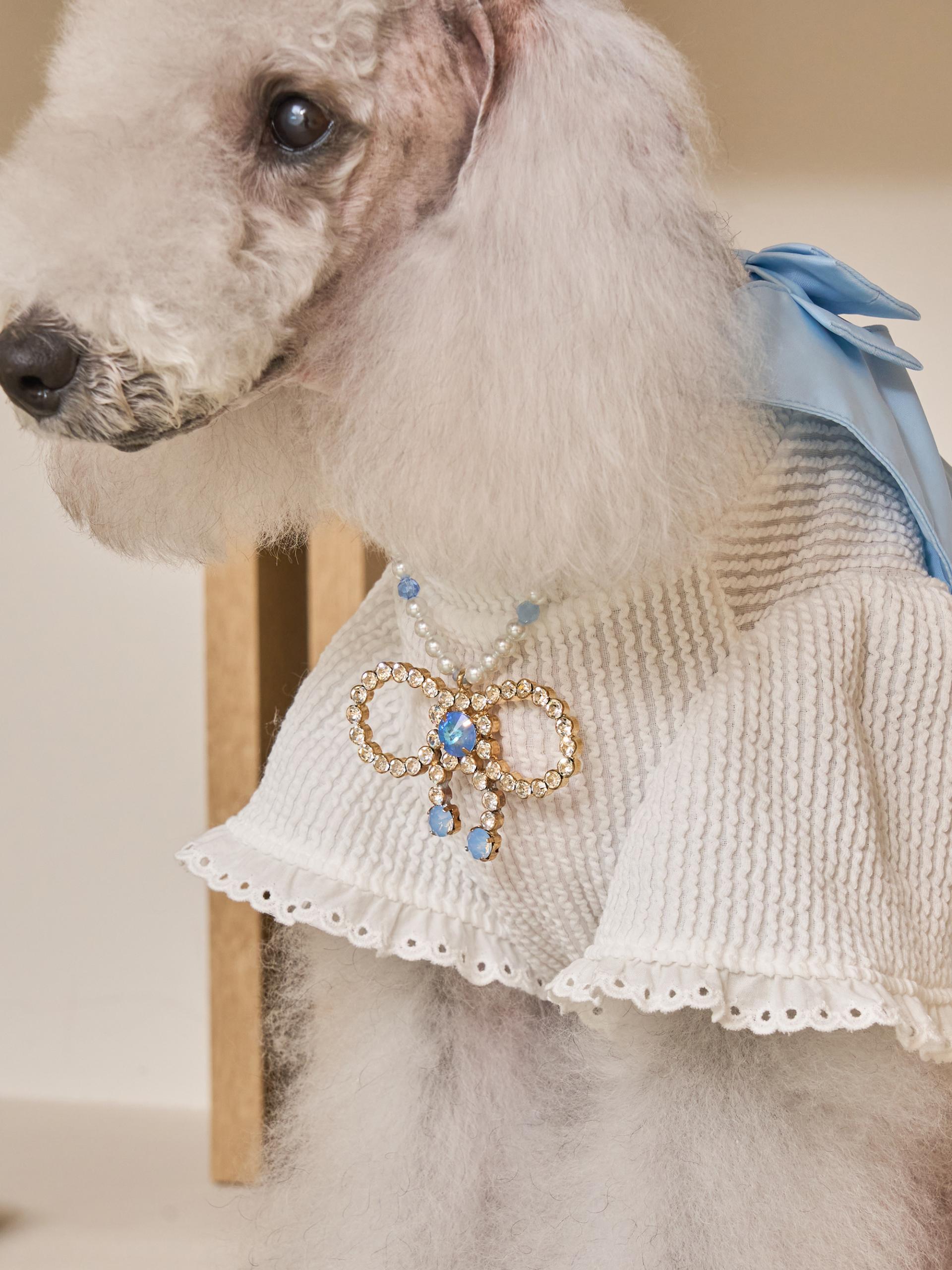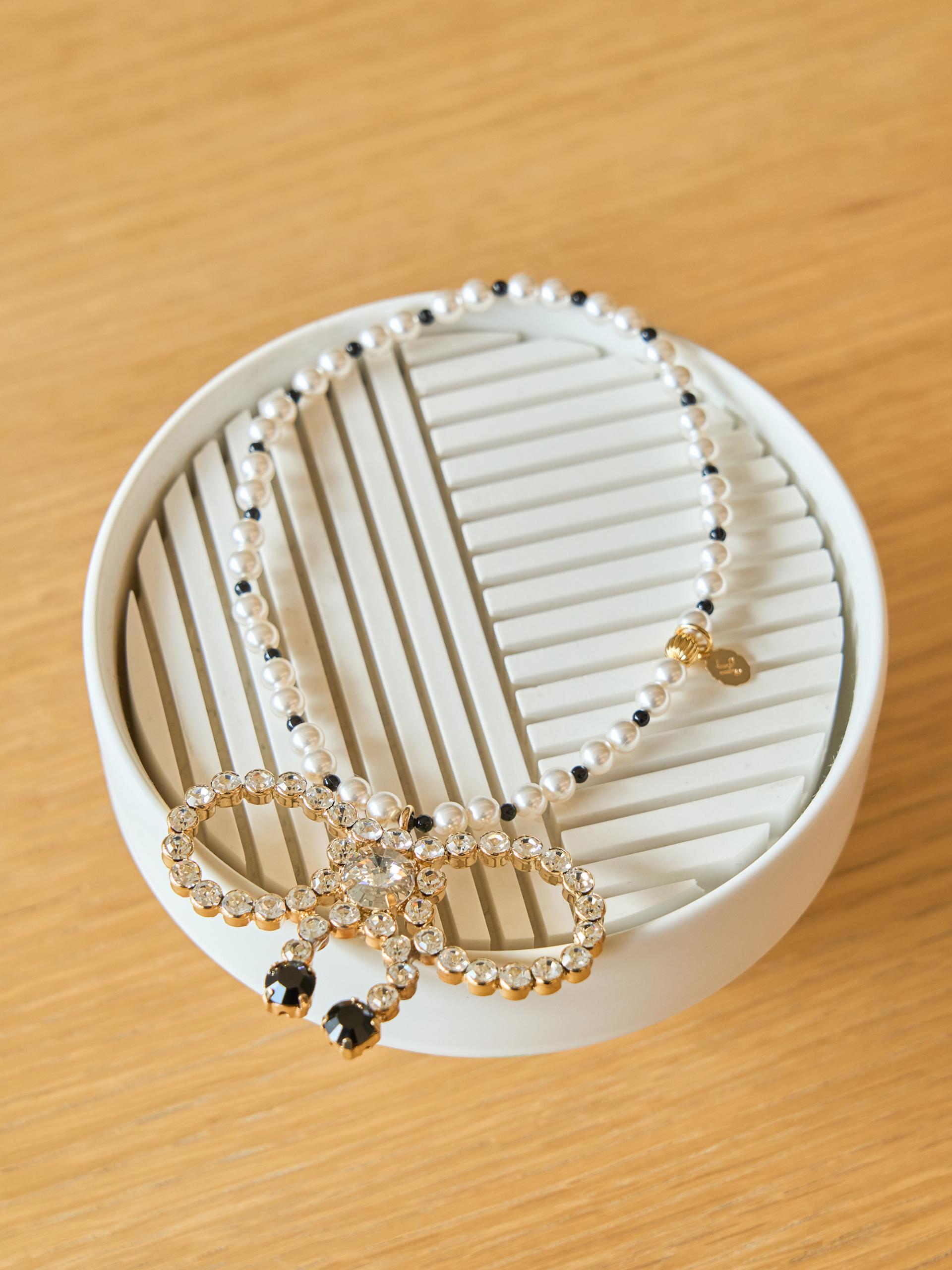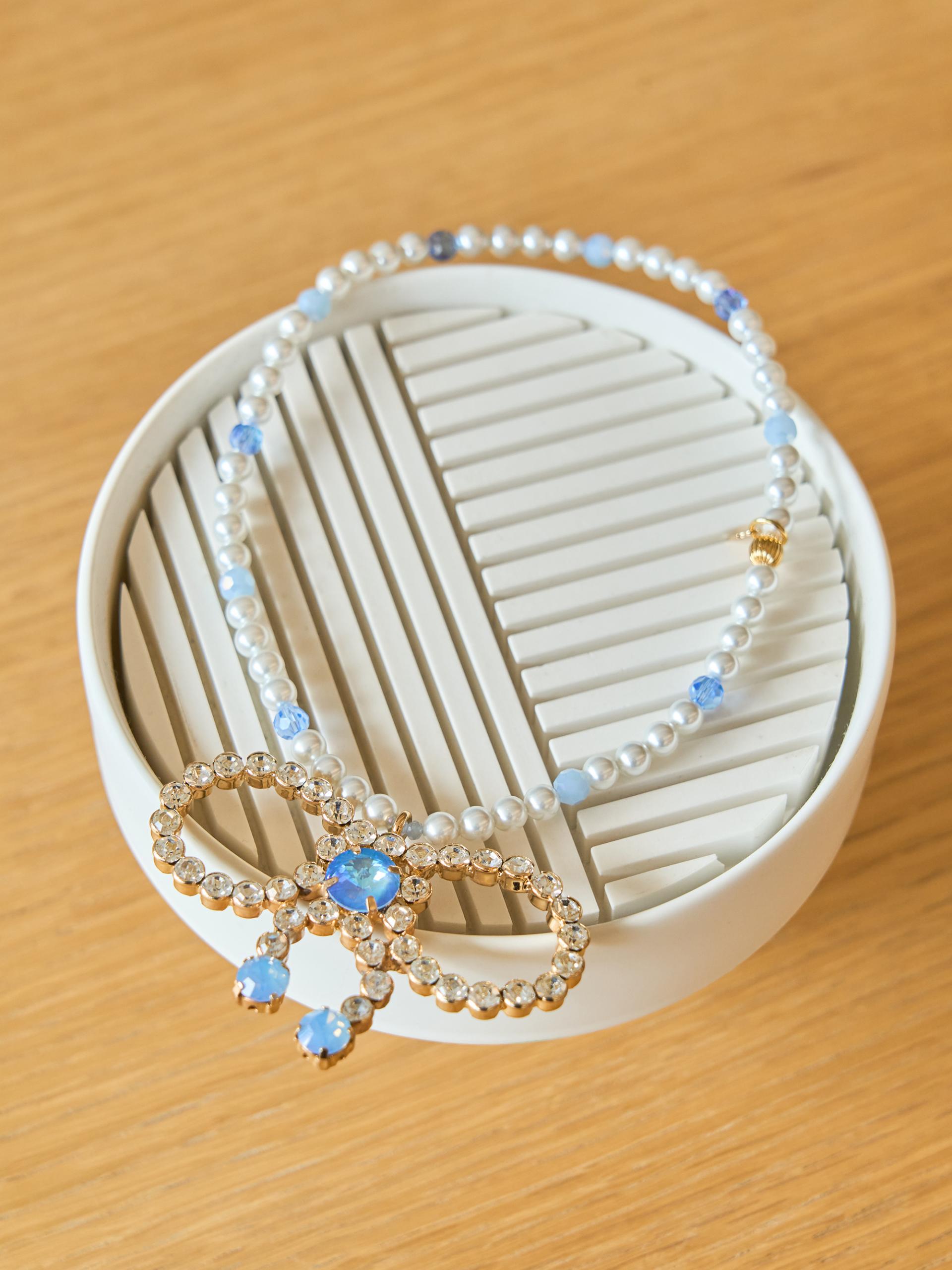 전체가 크리스털로 제작된 리본 모양의 펜던트 목걸이입니다.