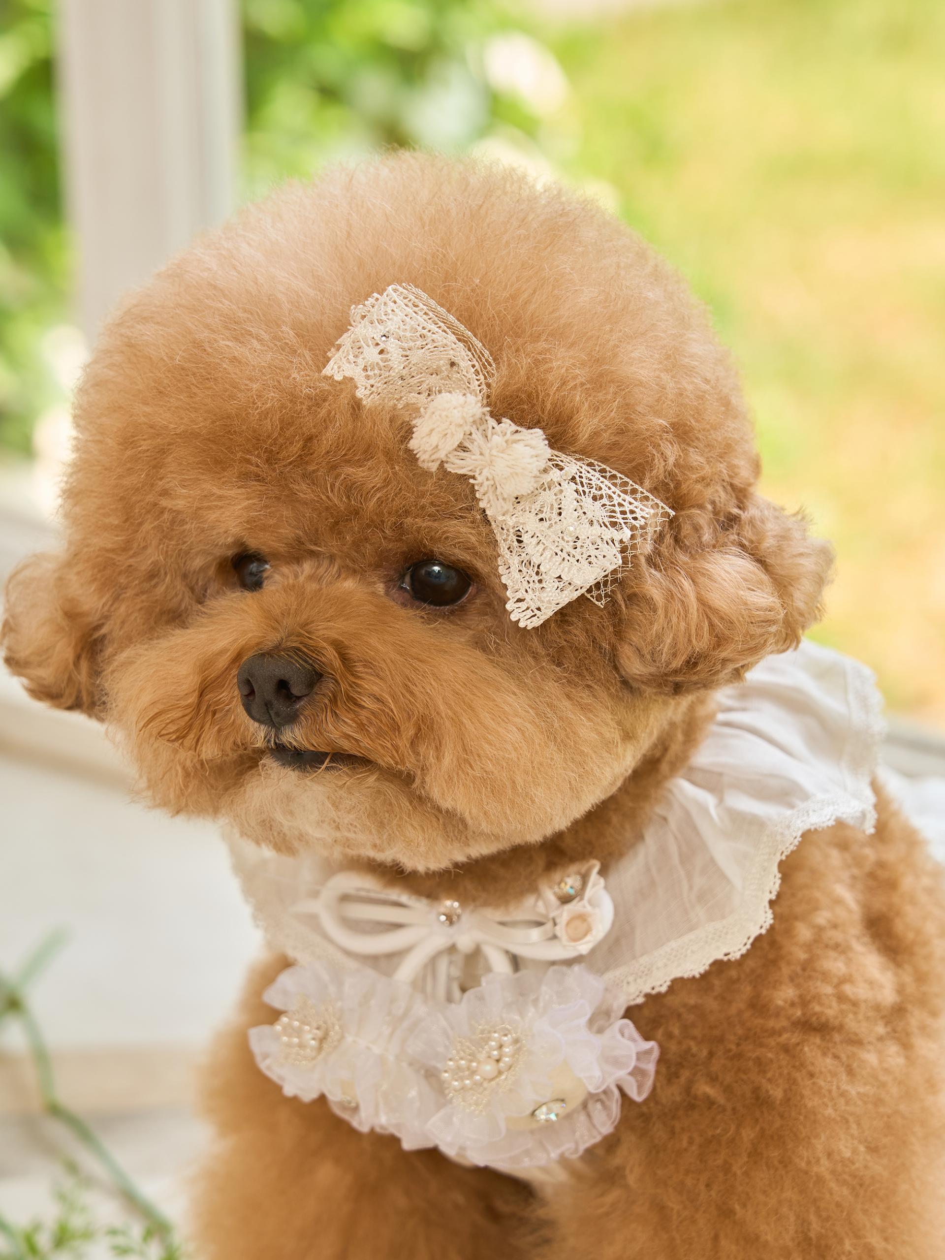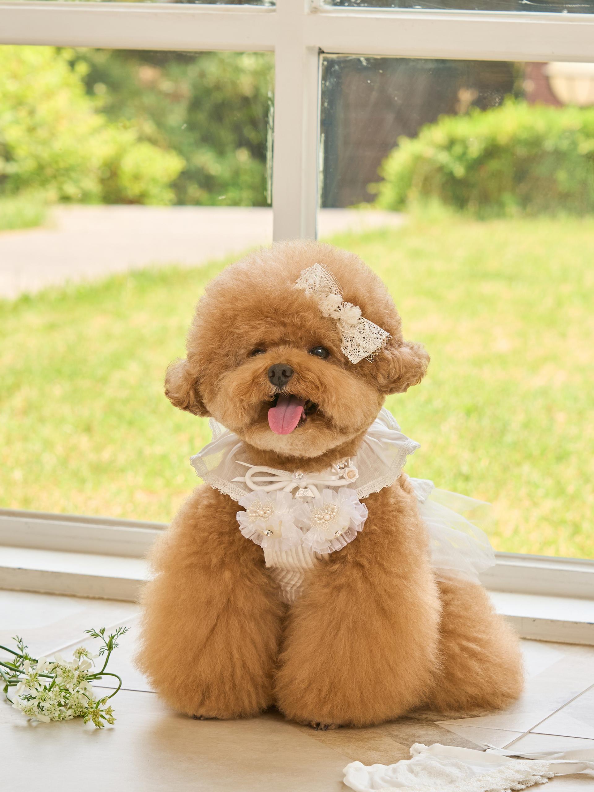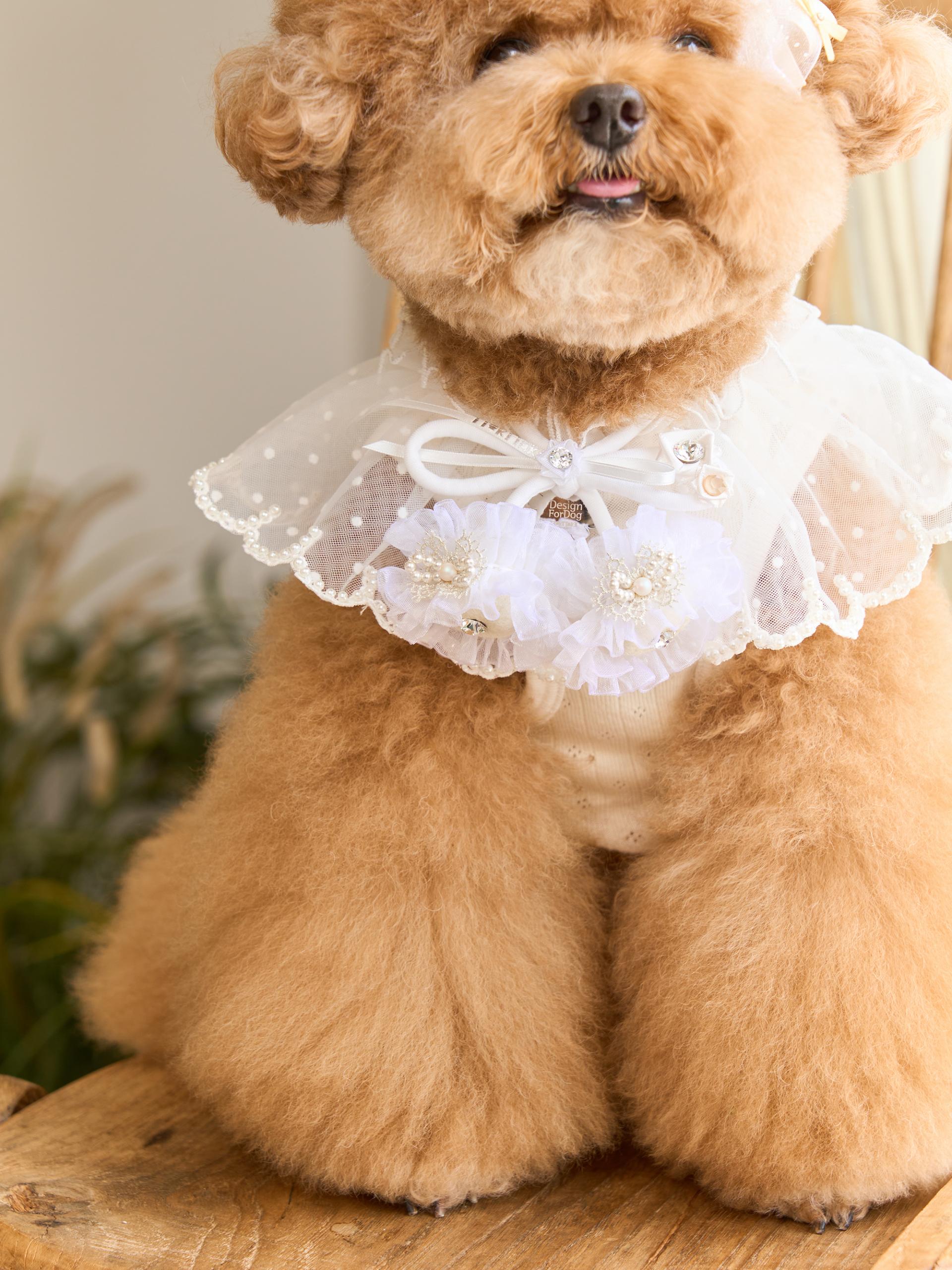 클래식한 튤 레이스와 진주가 어우러진 조화는