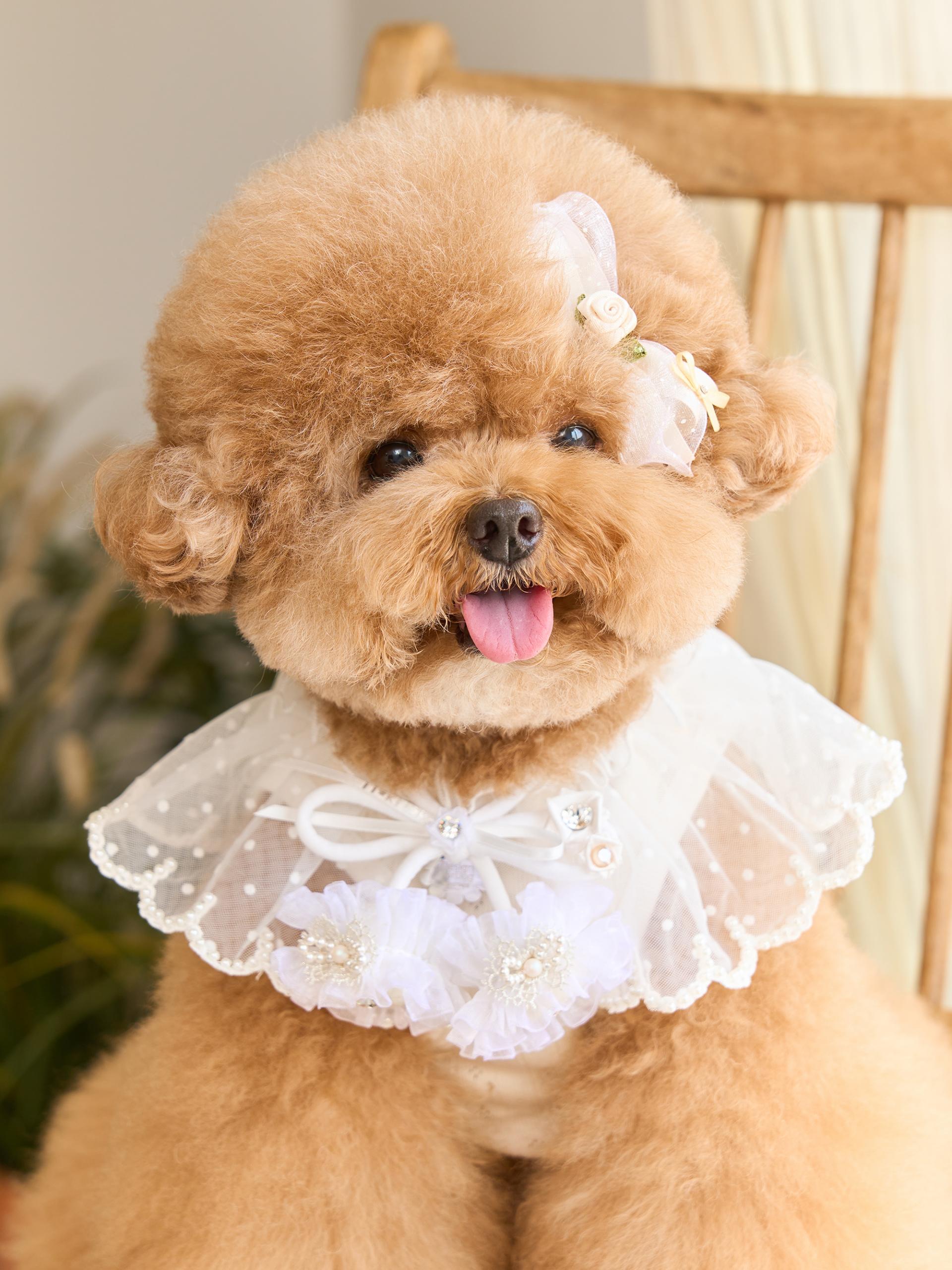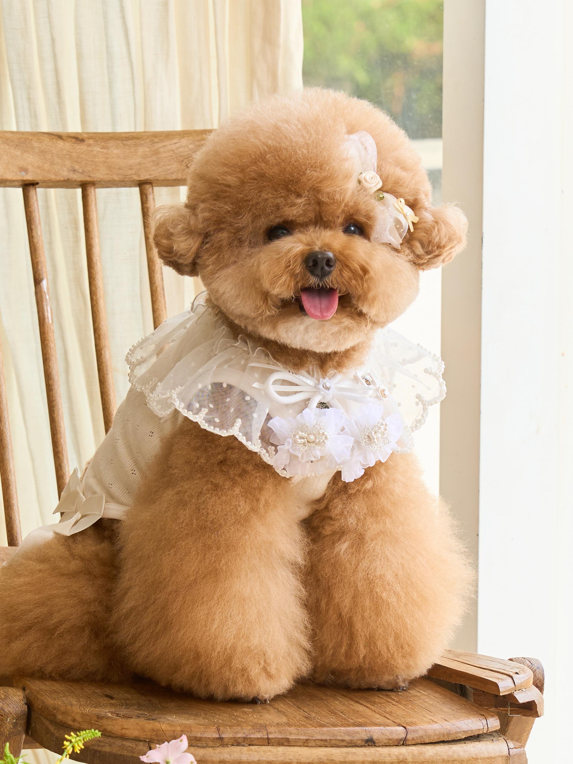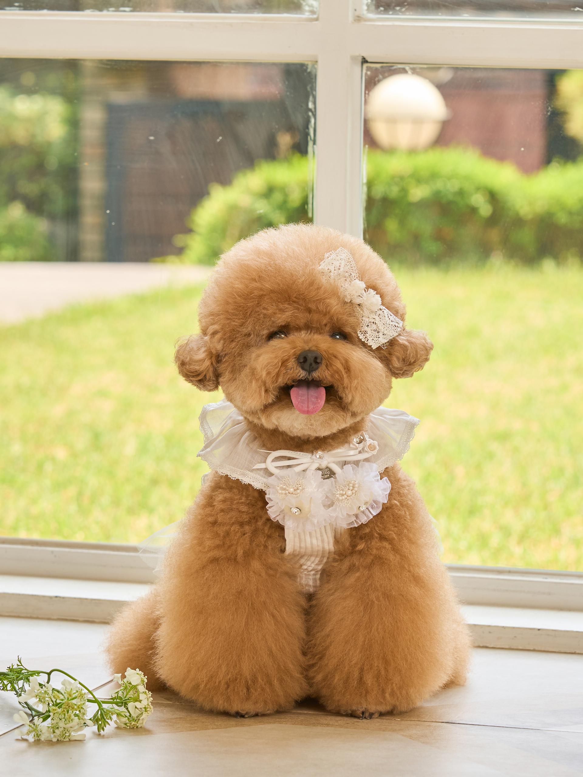 클래식한 튤 레이스와 진주가 어우러진 조화는