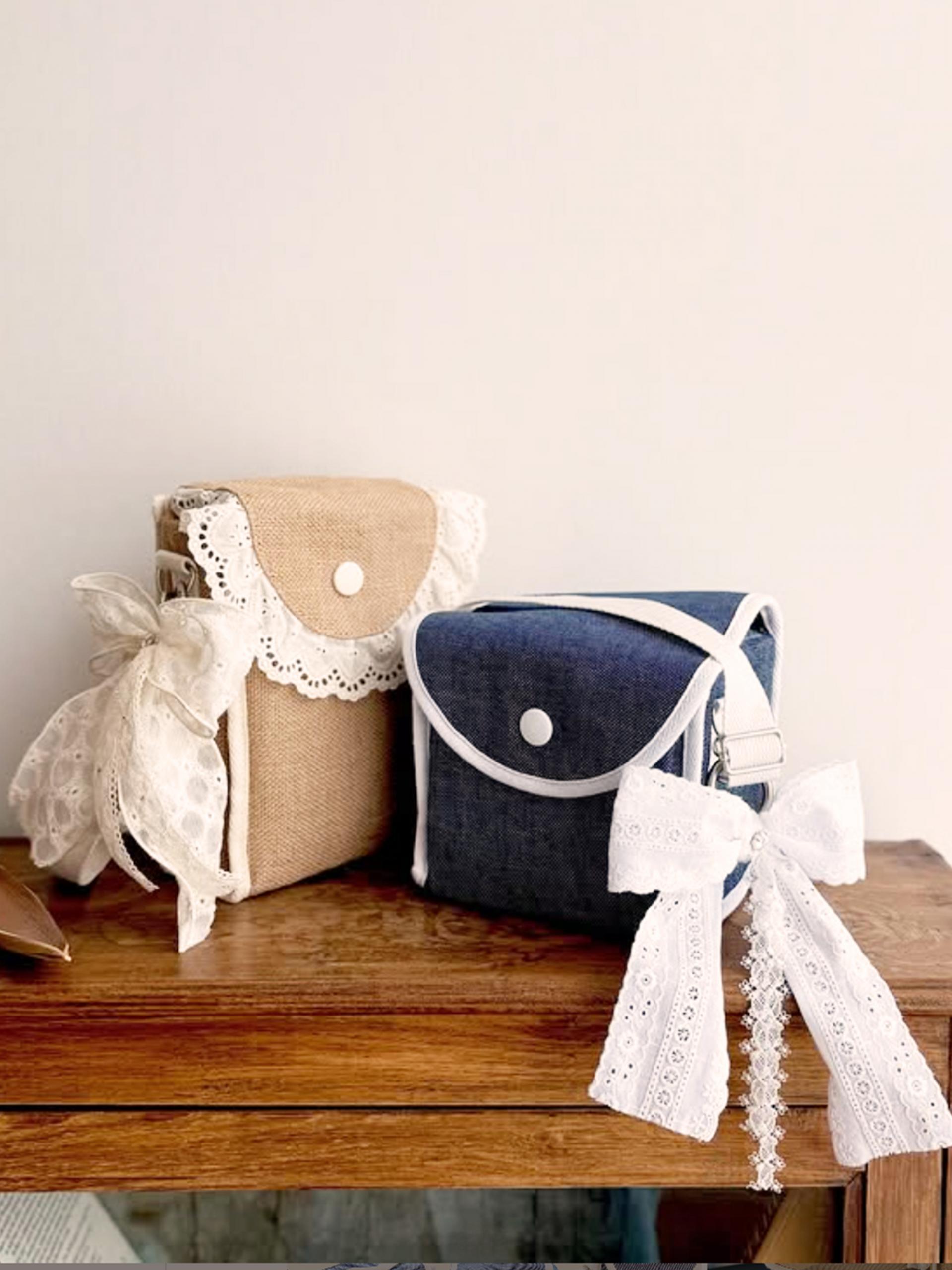 화이트 바인딩 디테일을 더해 완성된 이 보냉백은,