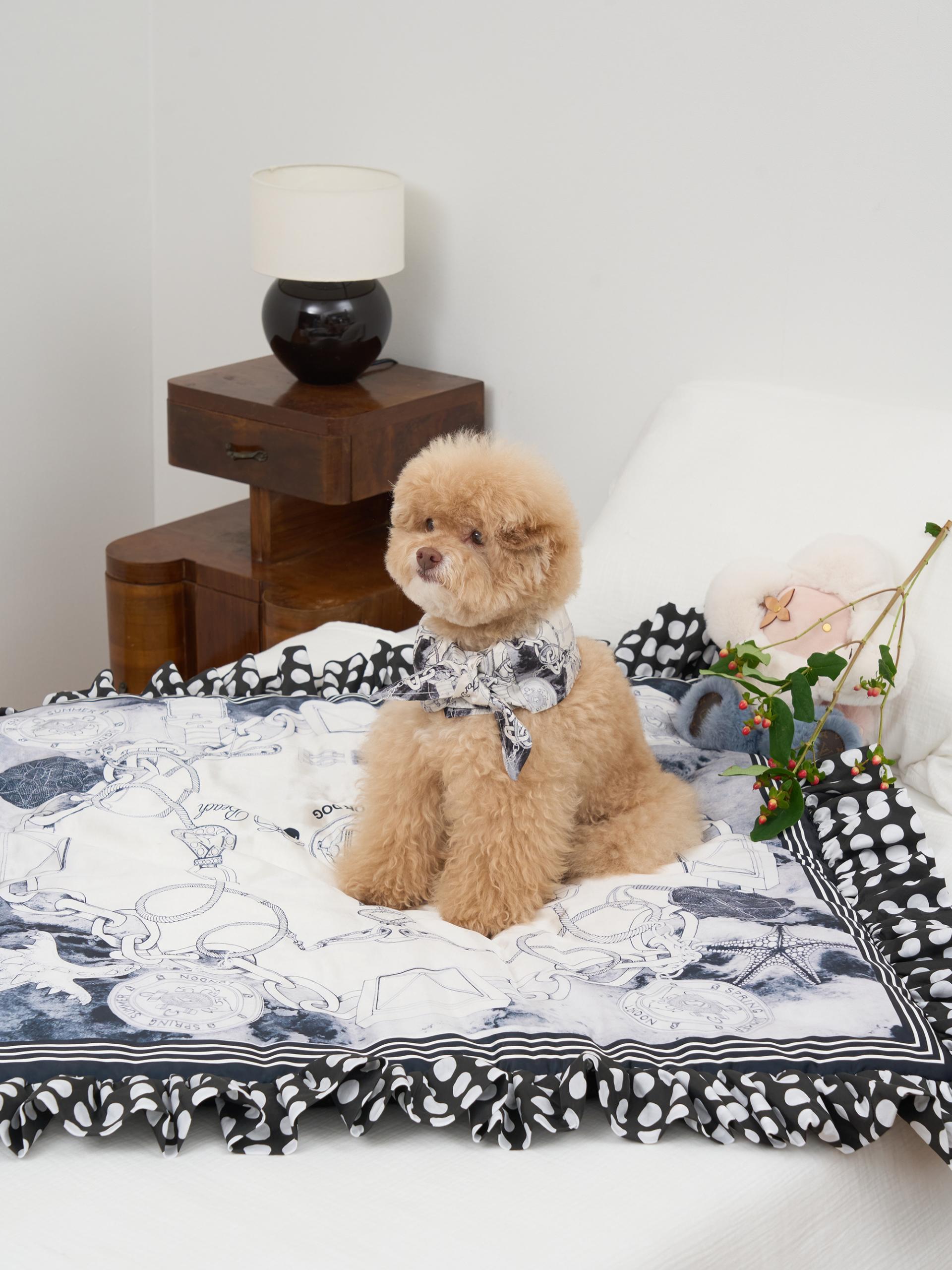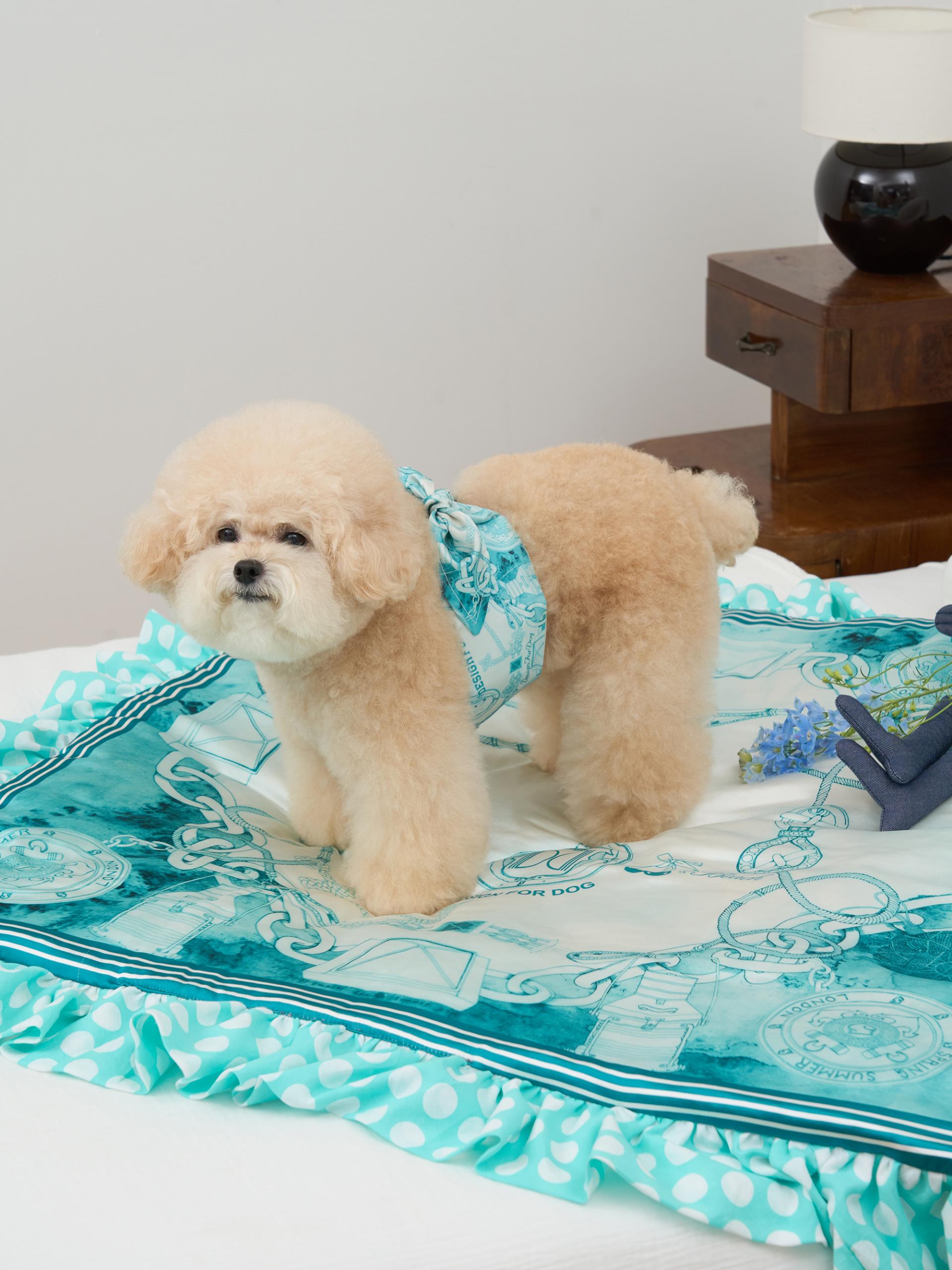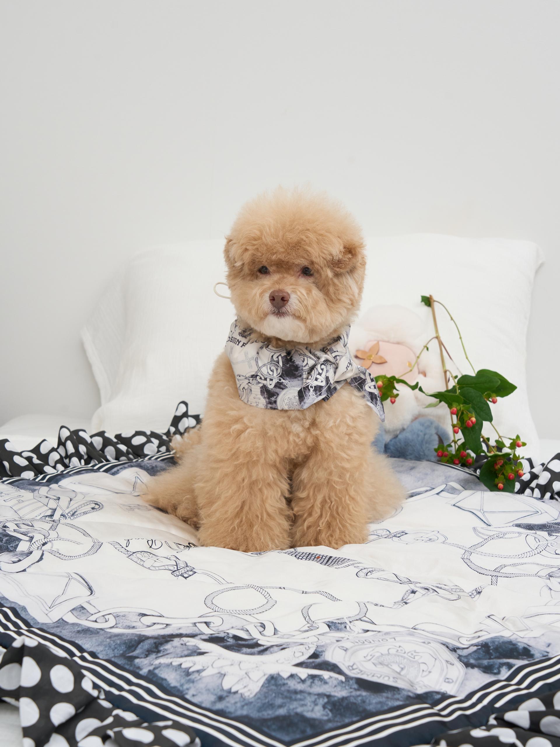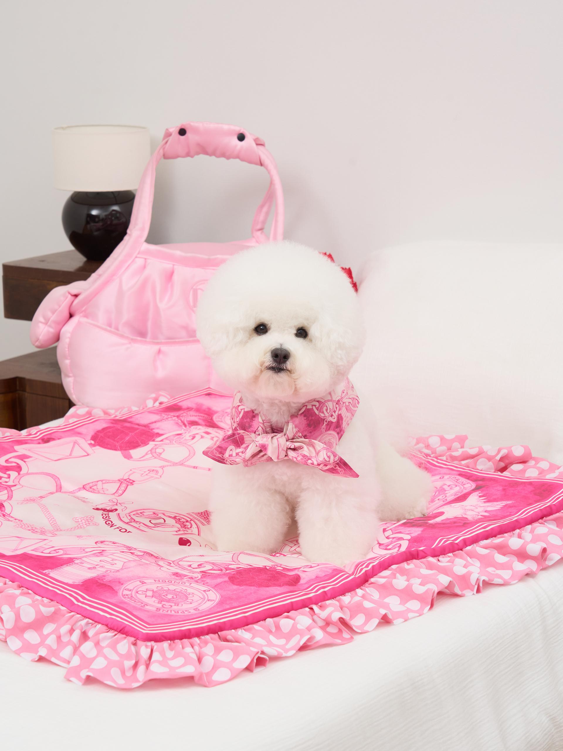 디자인포도그의 감각적인 로고 스카프 패턴이 전면에 펼쳐진
