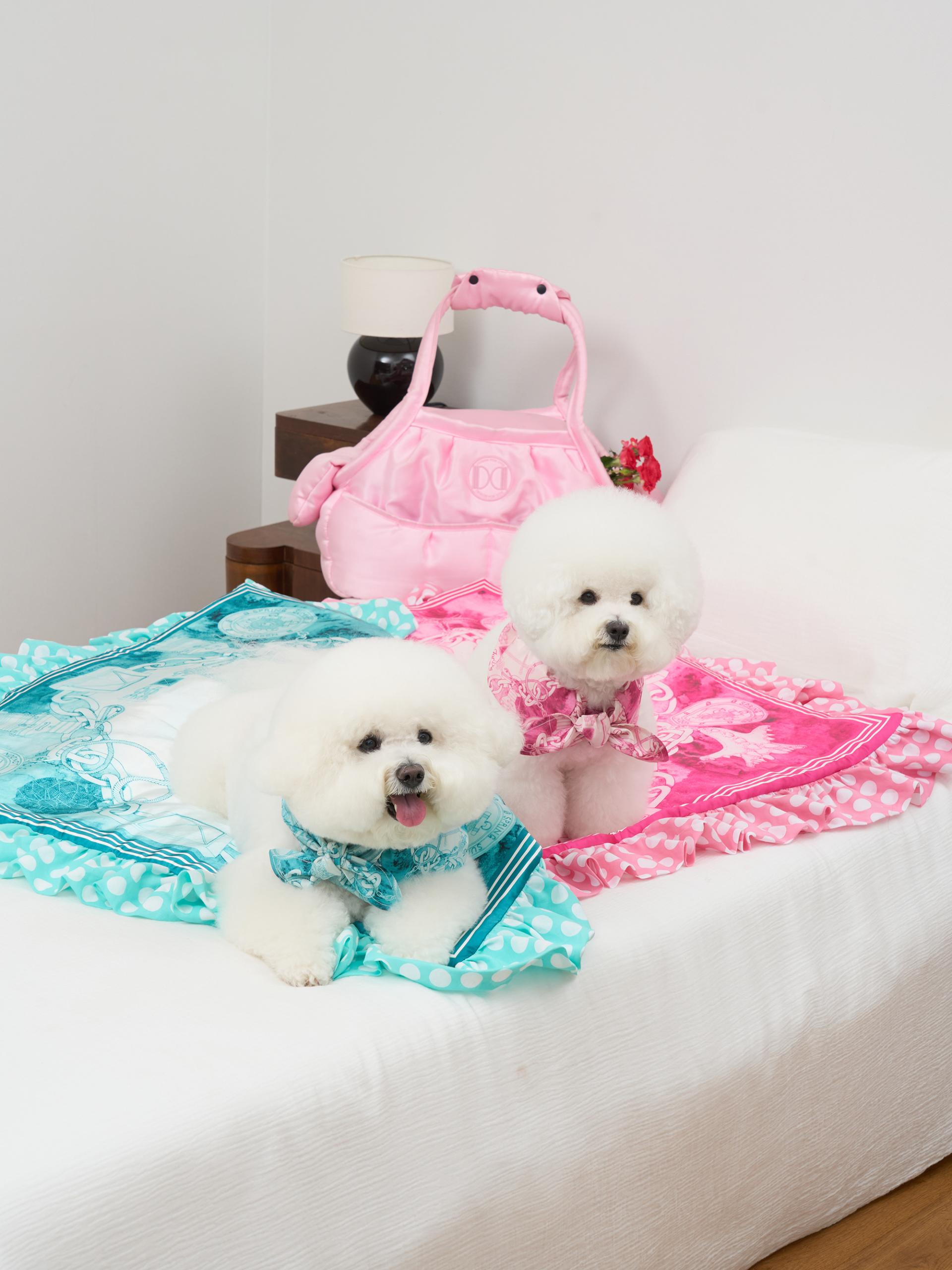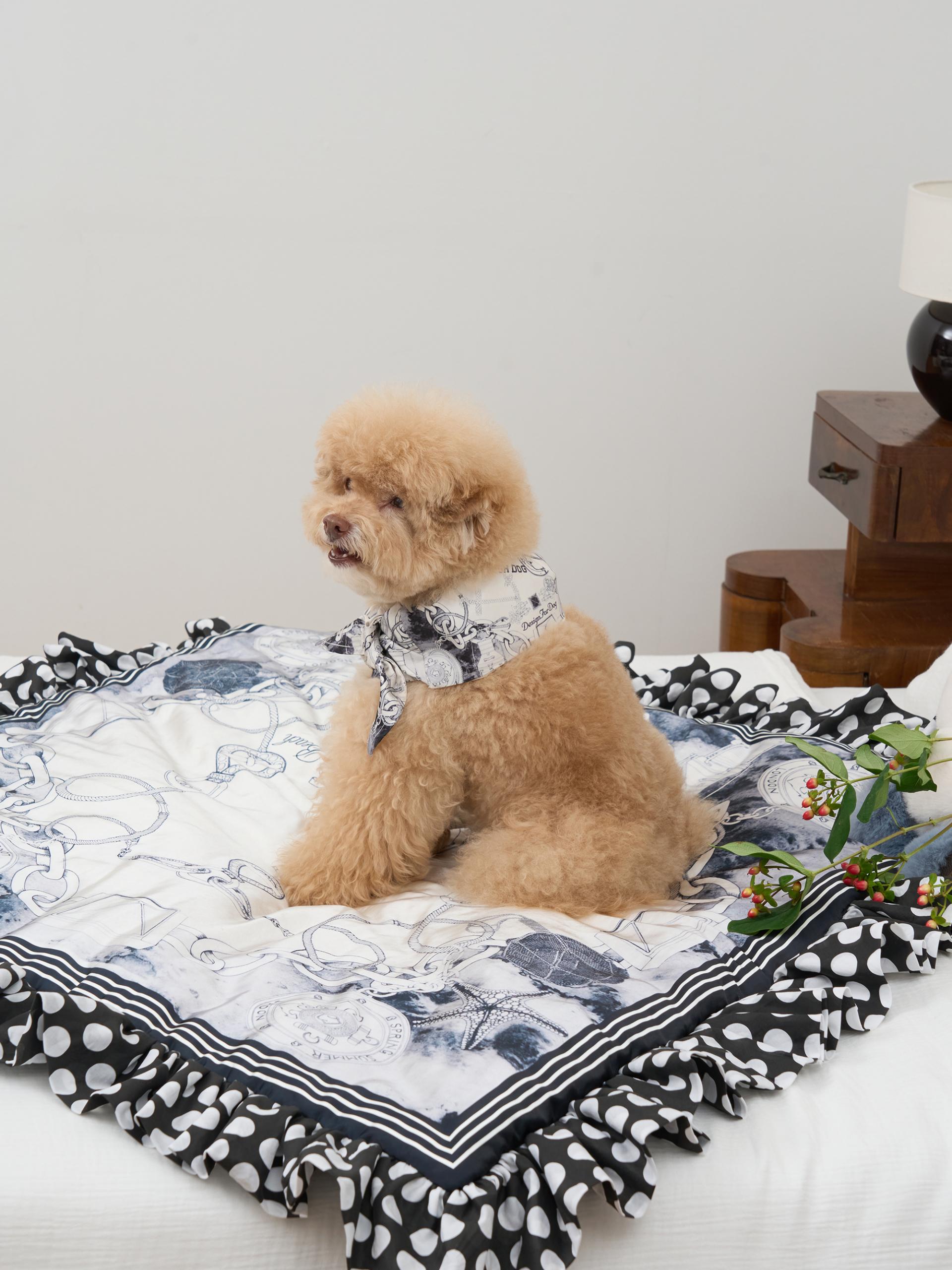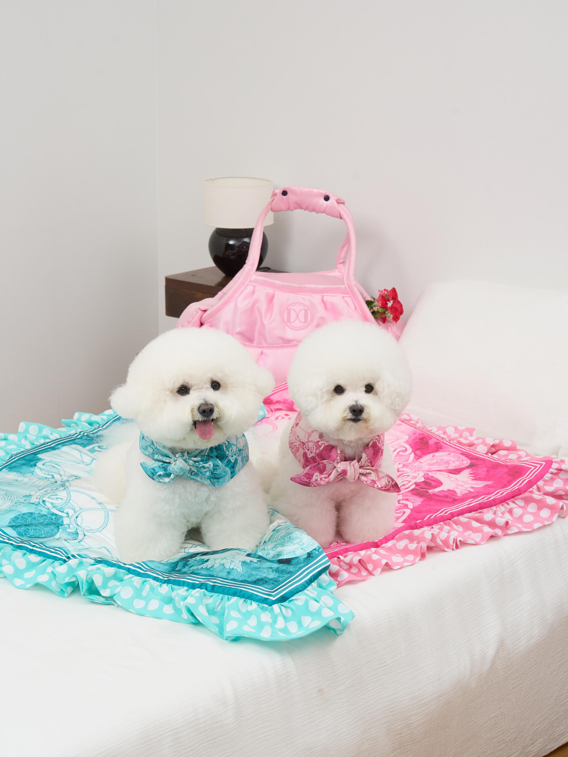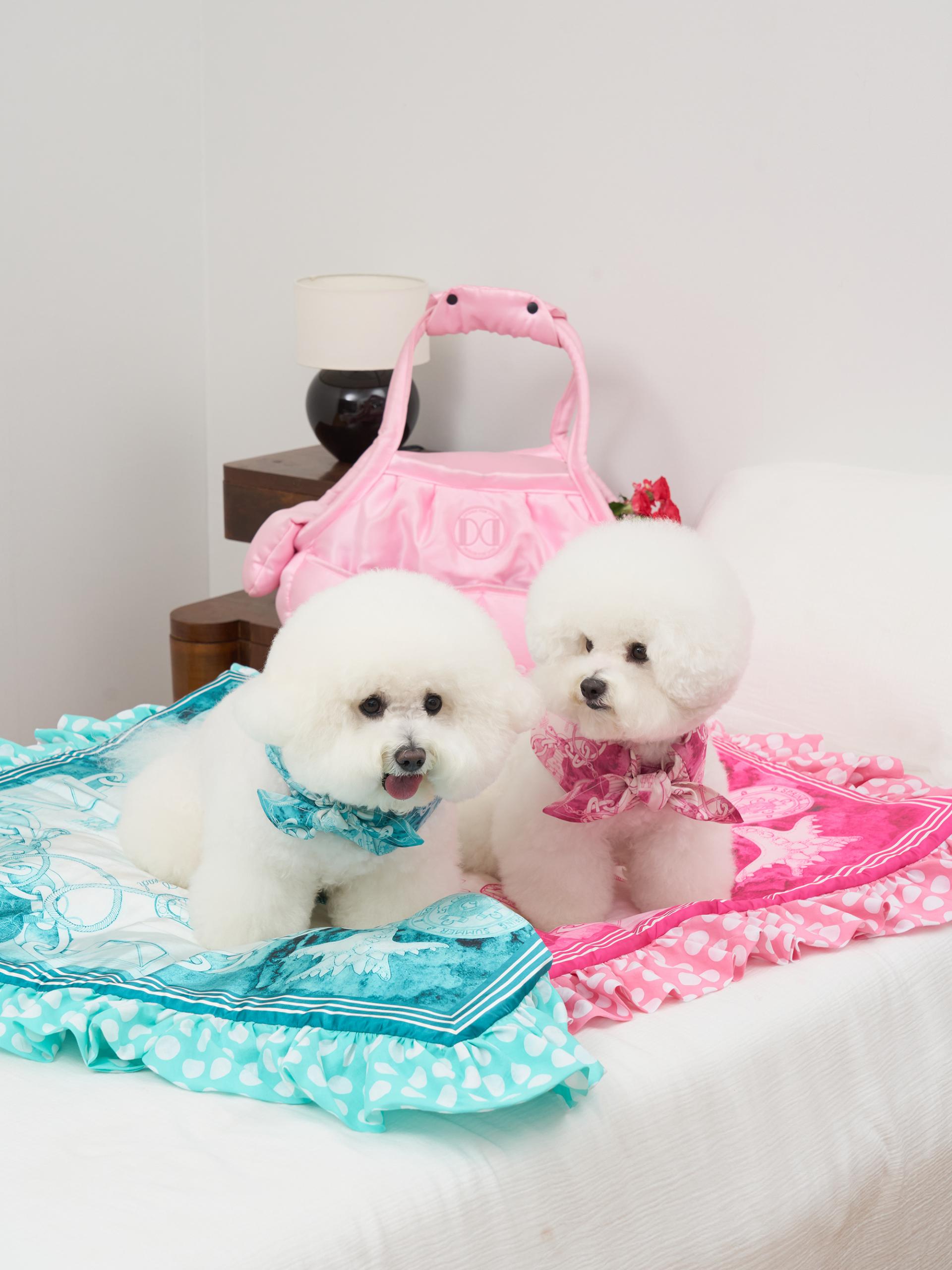 디자인포도그의 감각적인 로고 스카프 패턴이 전면에 펼쳐진