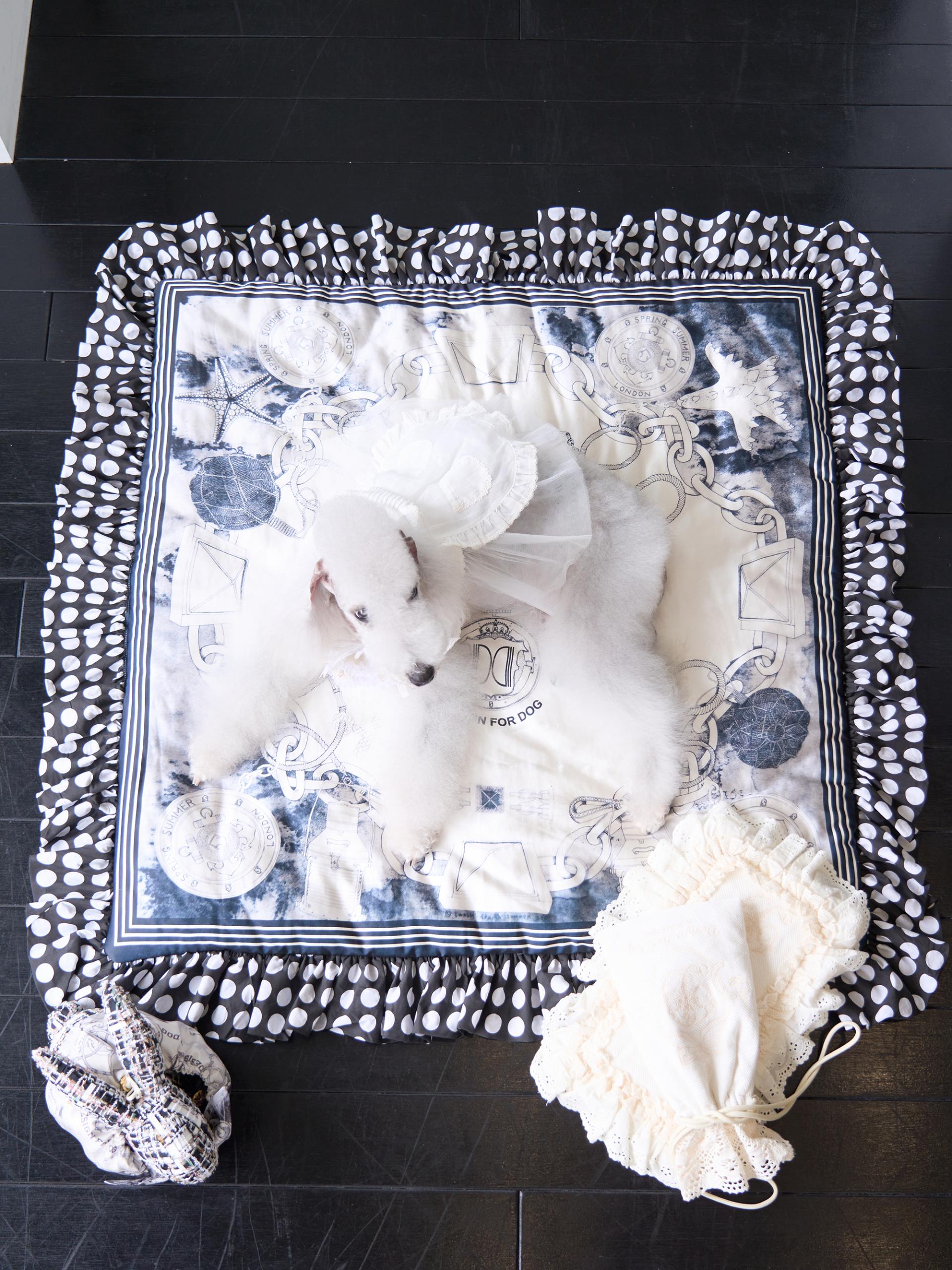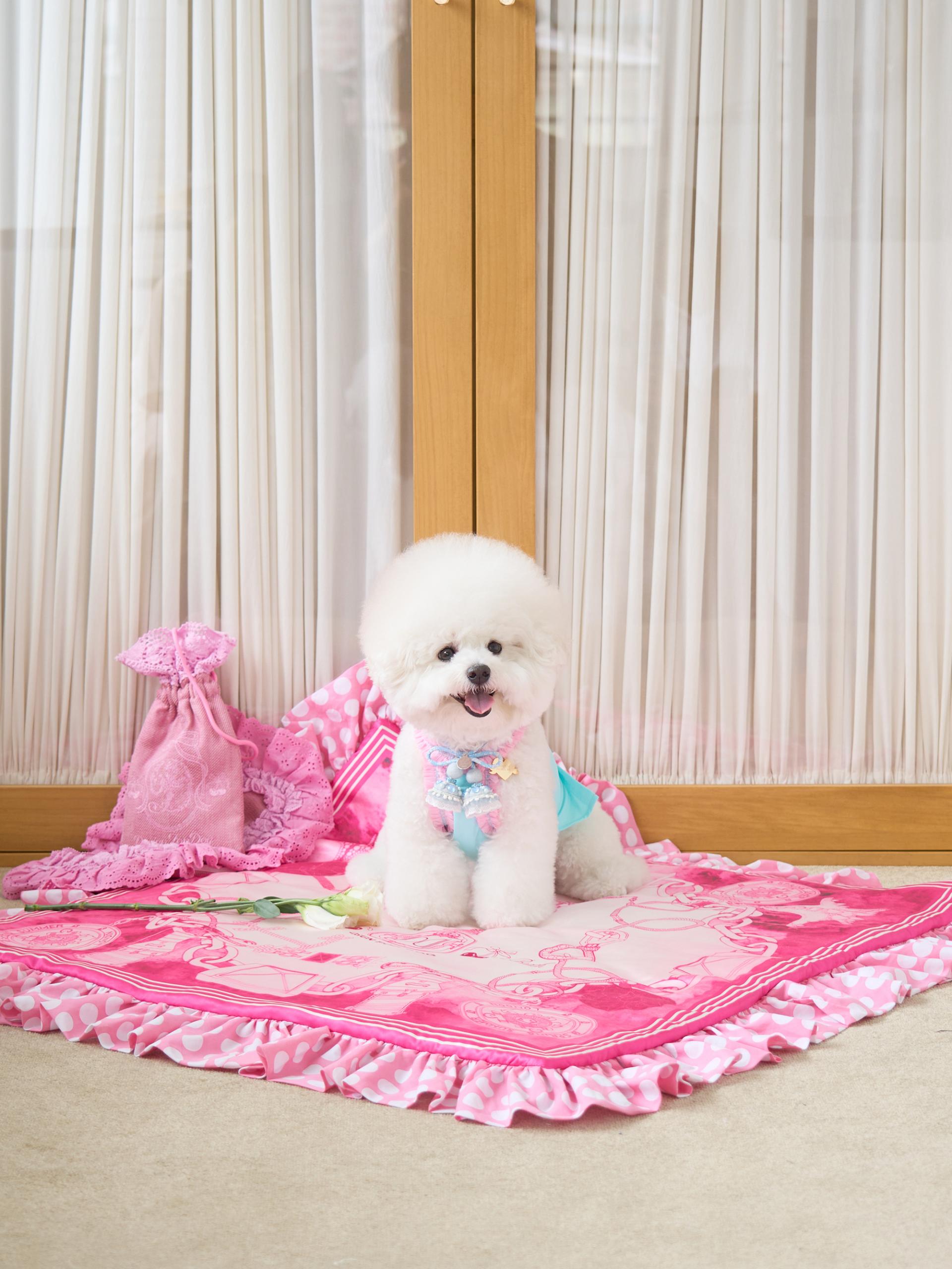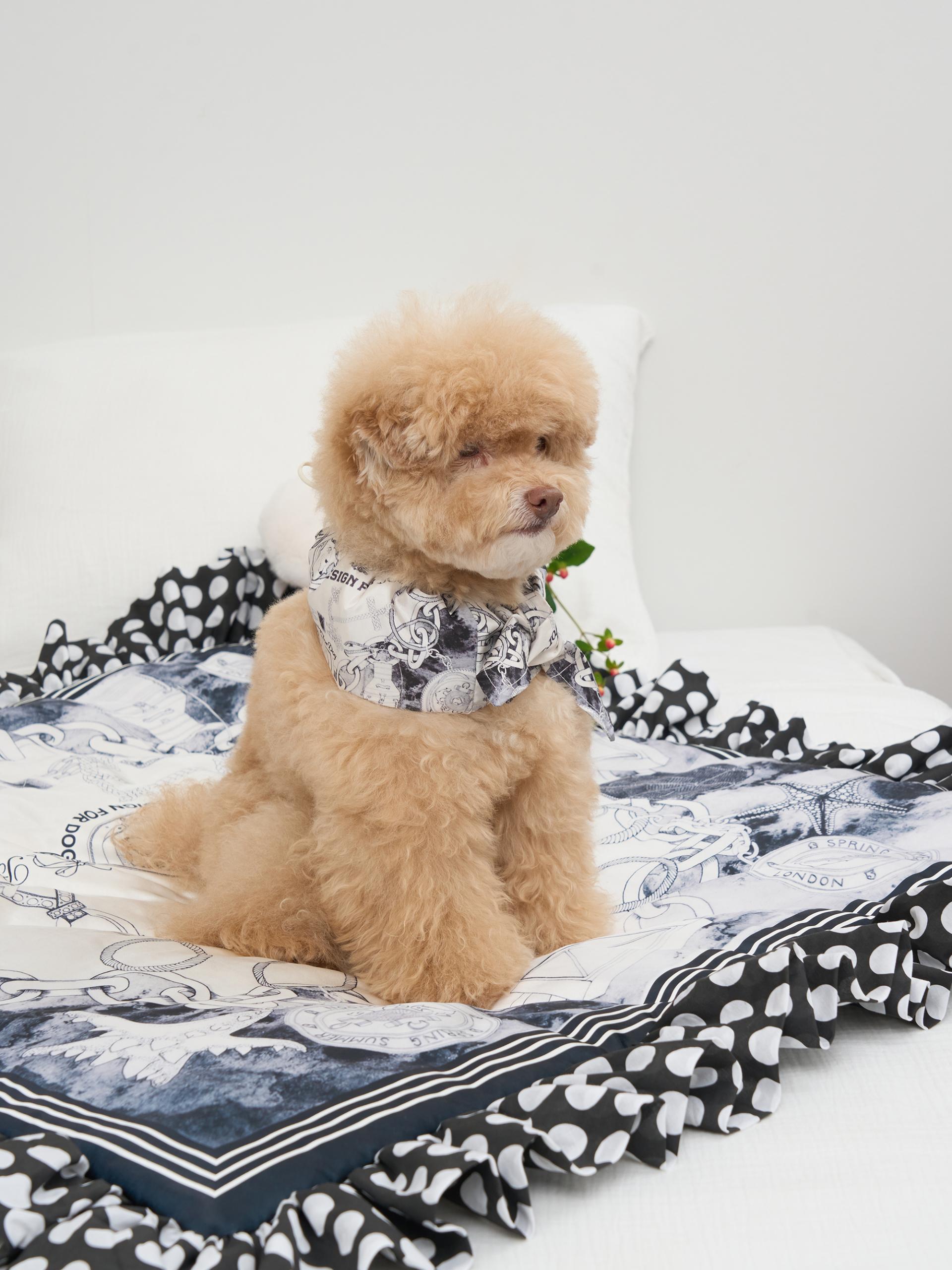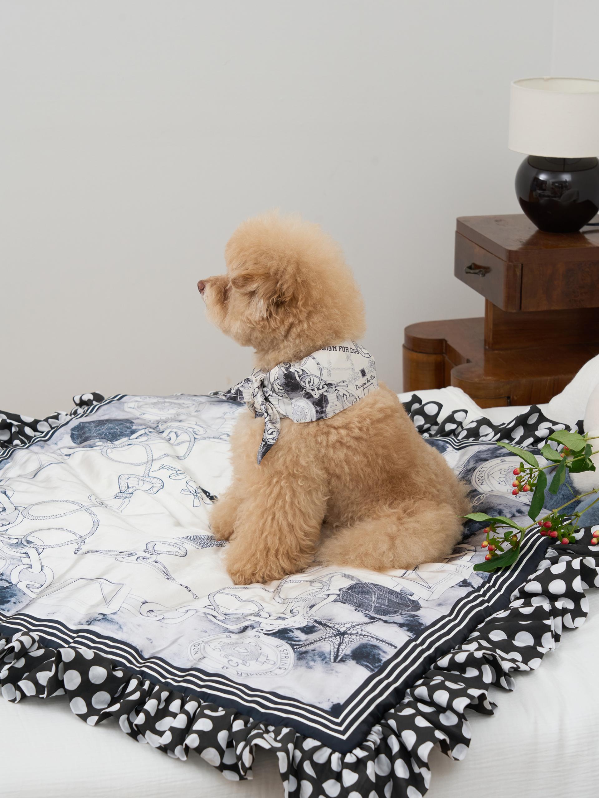 디자인포도그의 감각적인 로고 스카프 패턴이 전면에 펼쳐진