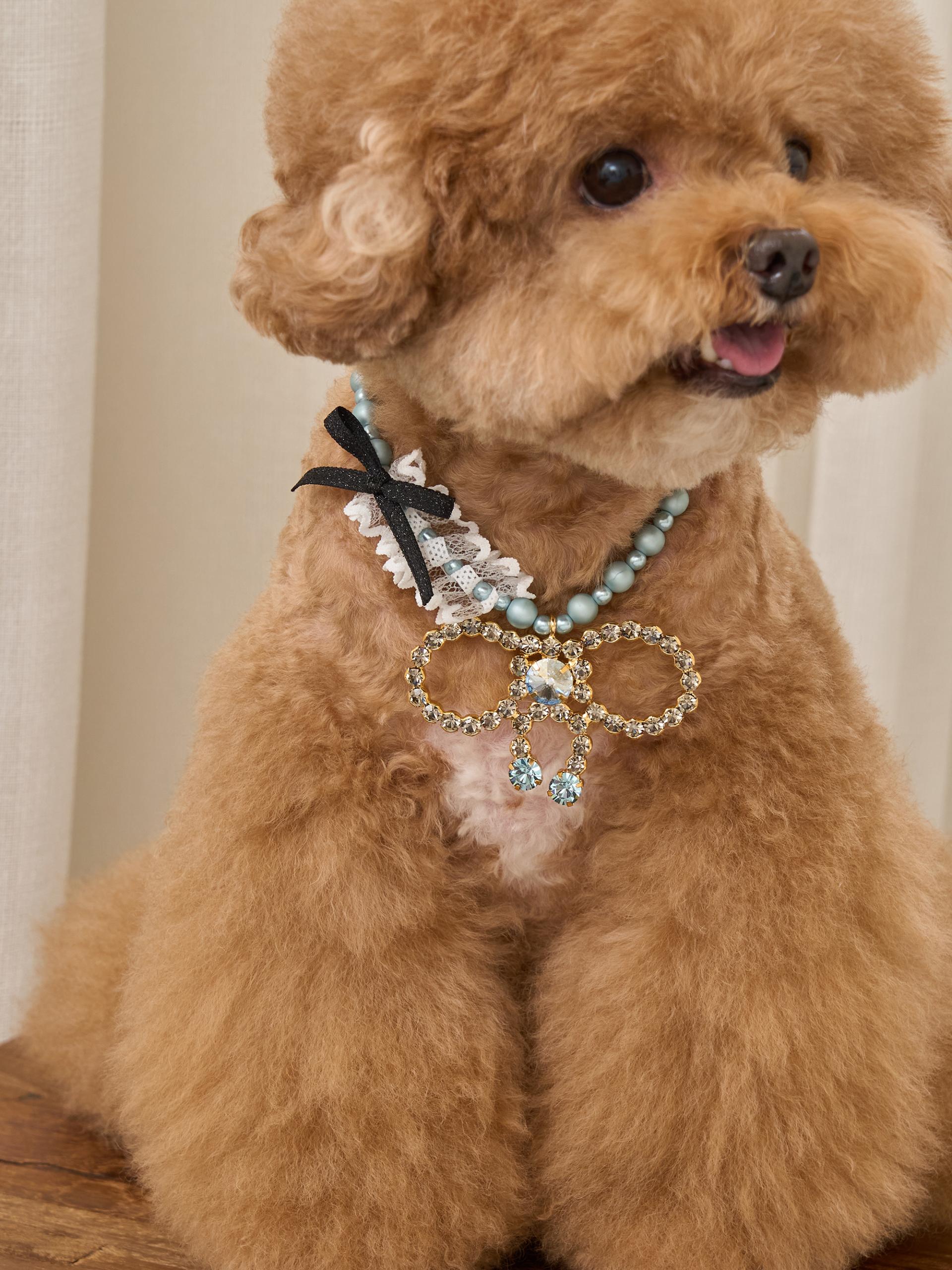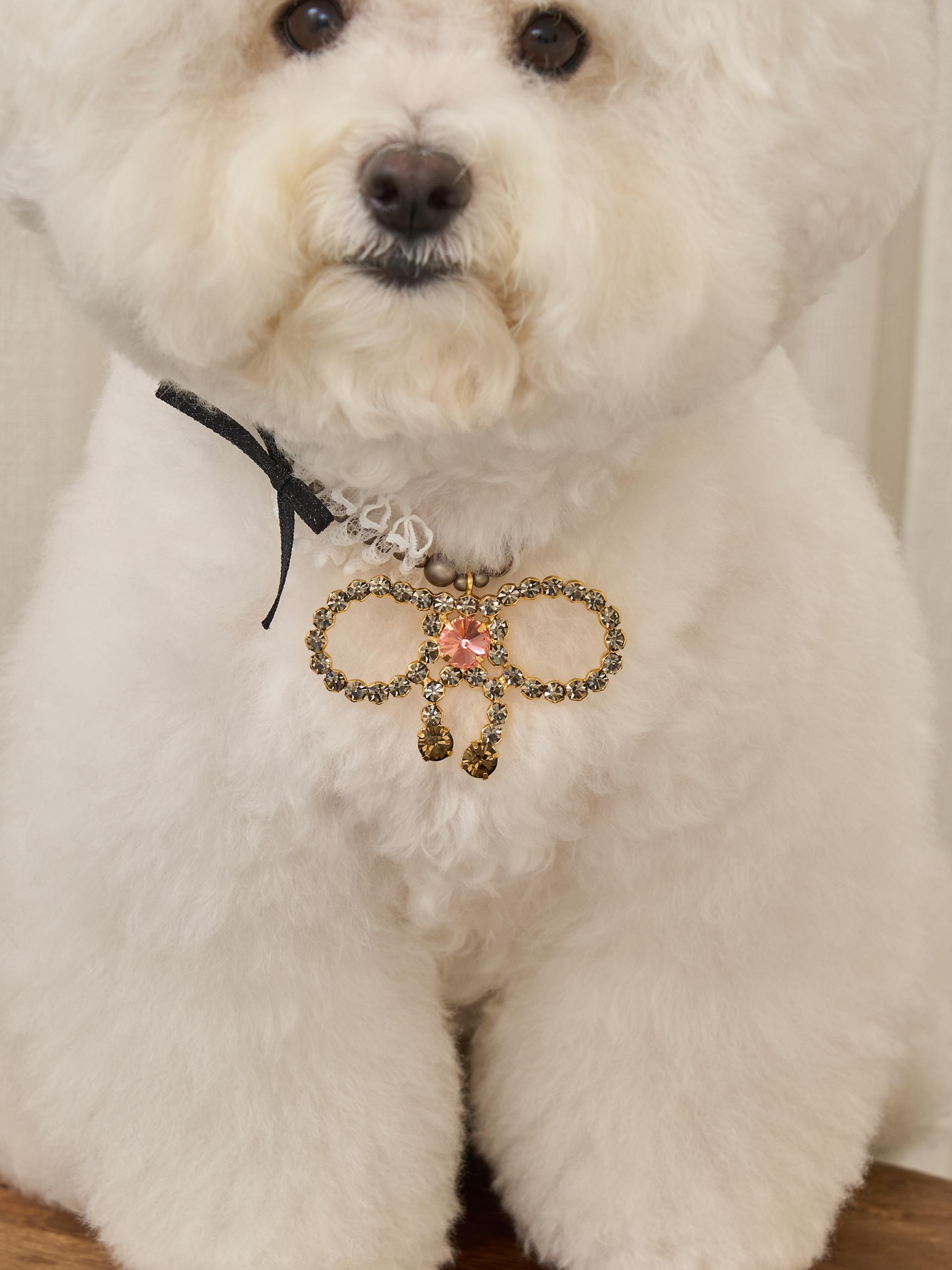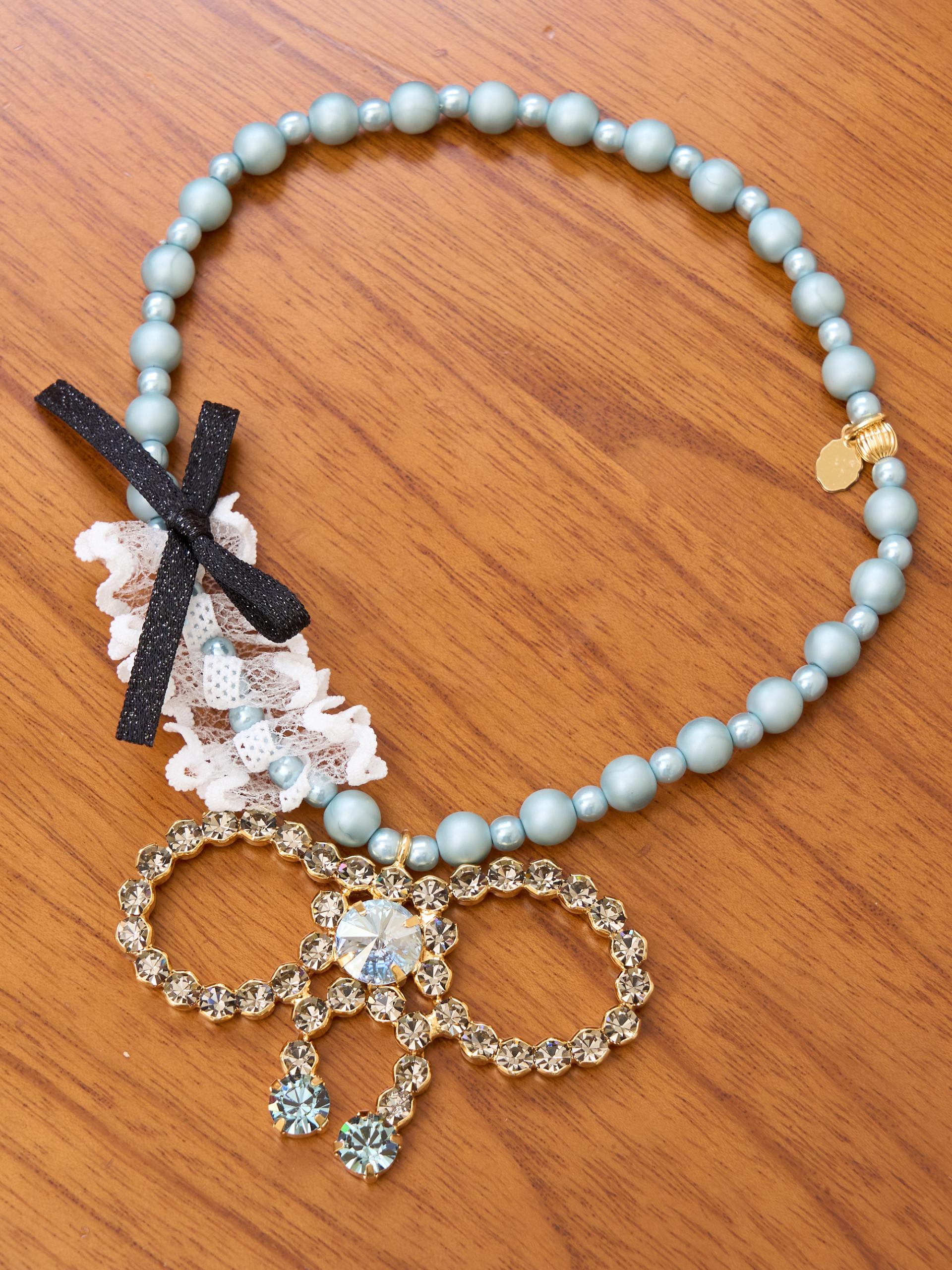 전체가 크리스털로 제작된 리본 모양의 펜던트 목걸이입니다.