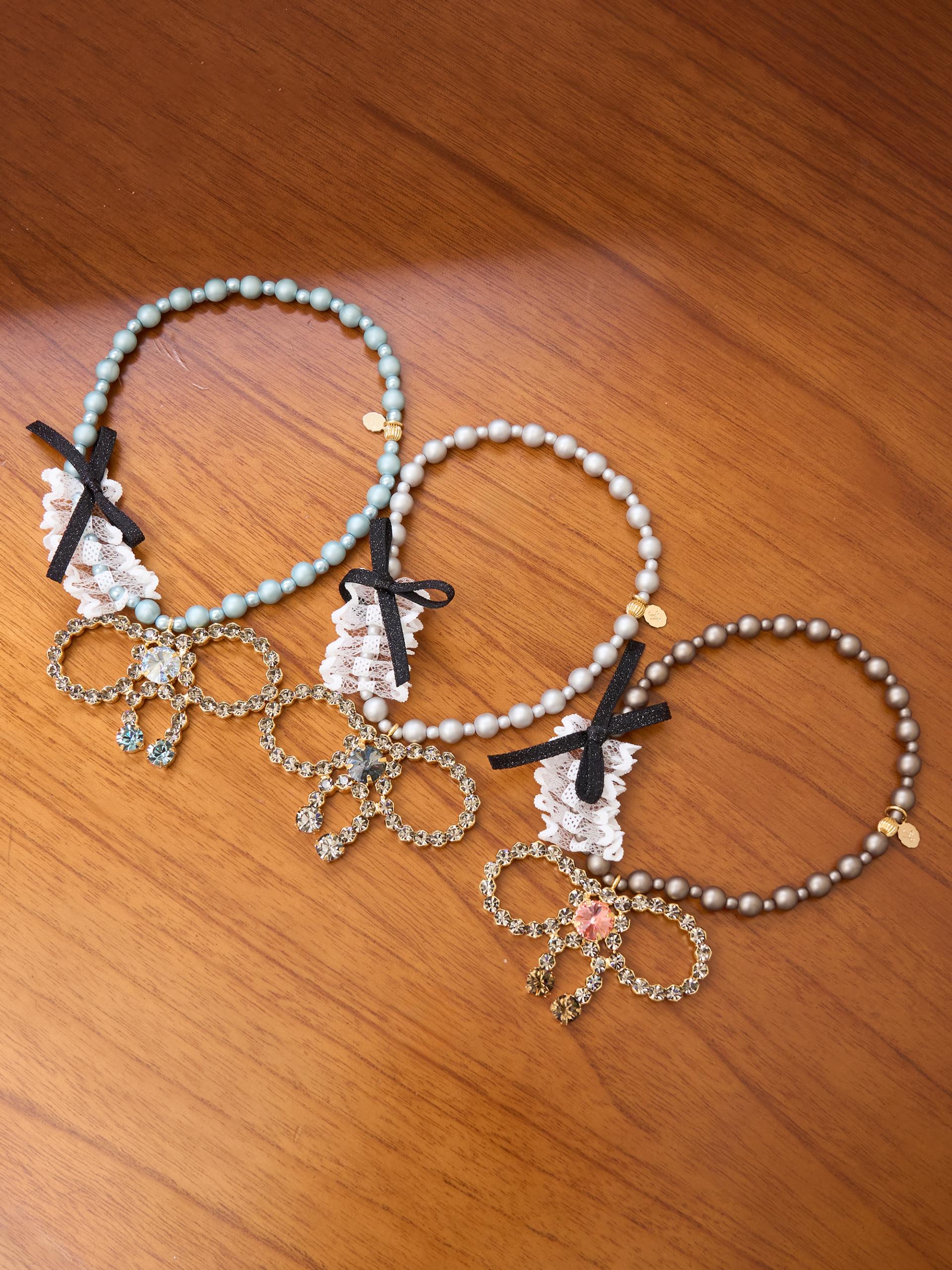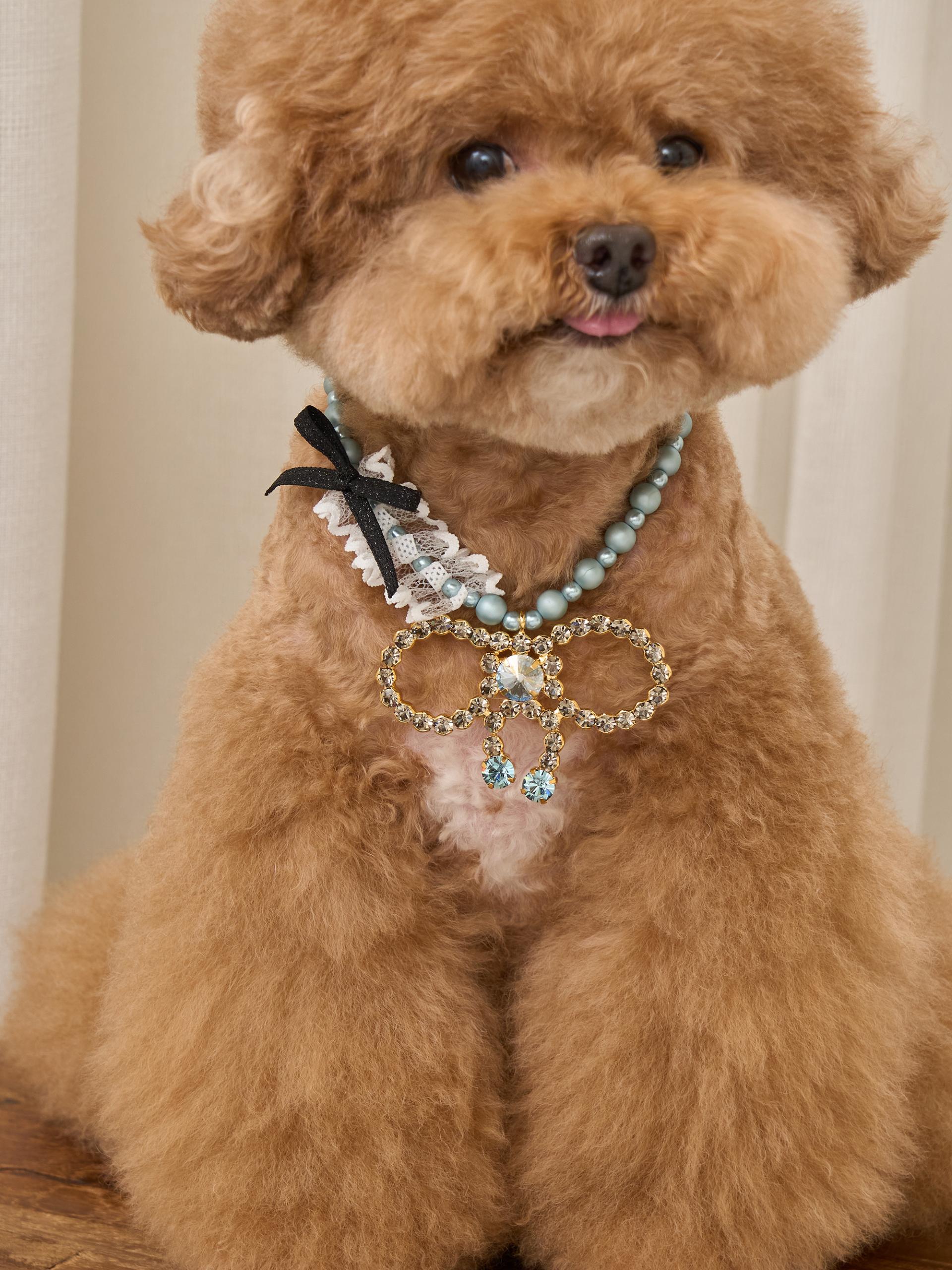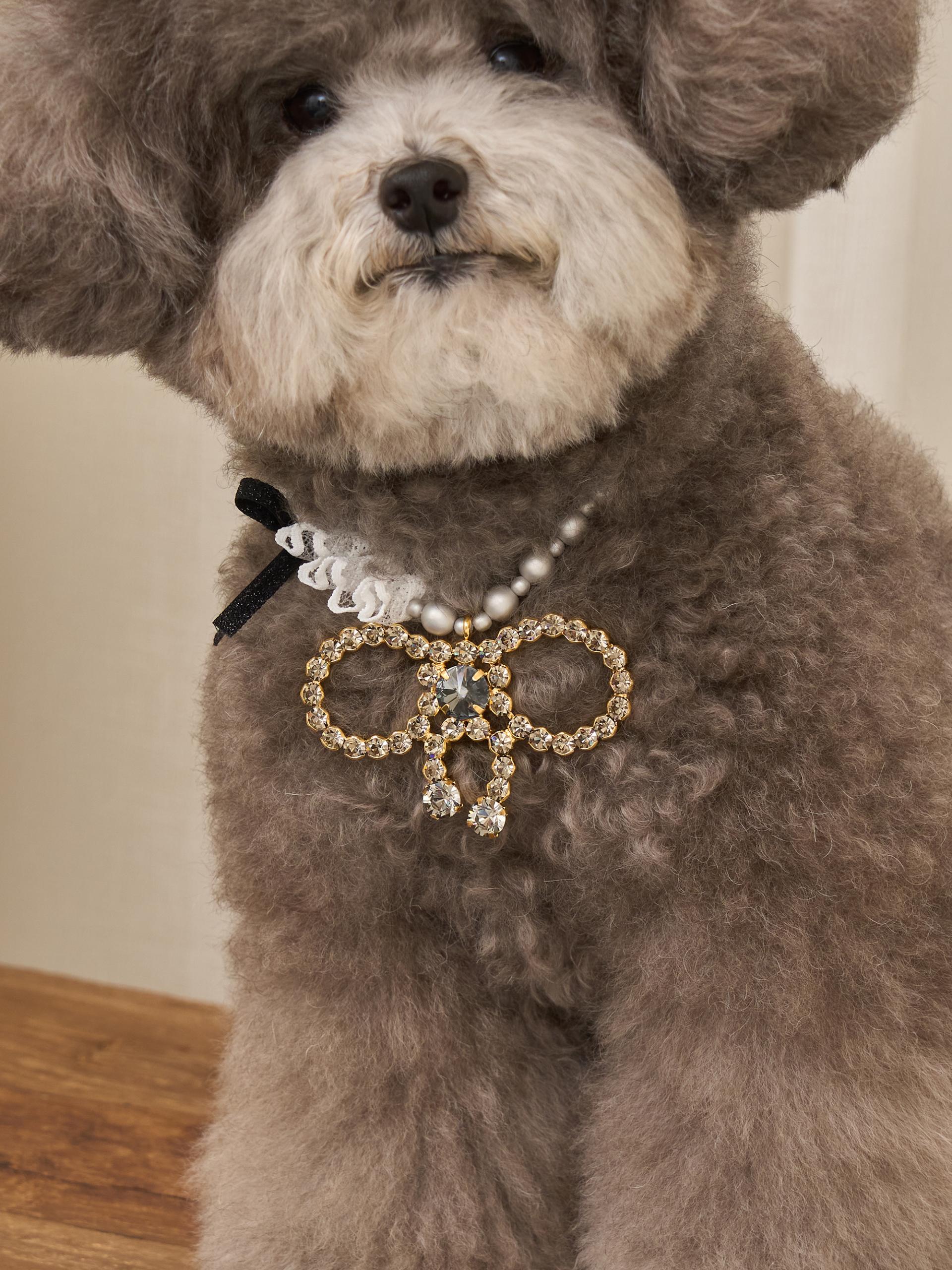전체가 크리스털로 제작된 리본 모양의 펜던트 목걸이입니다.