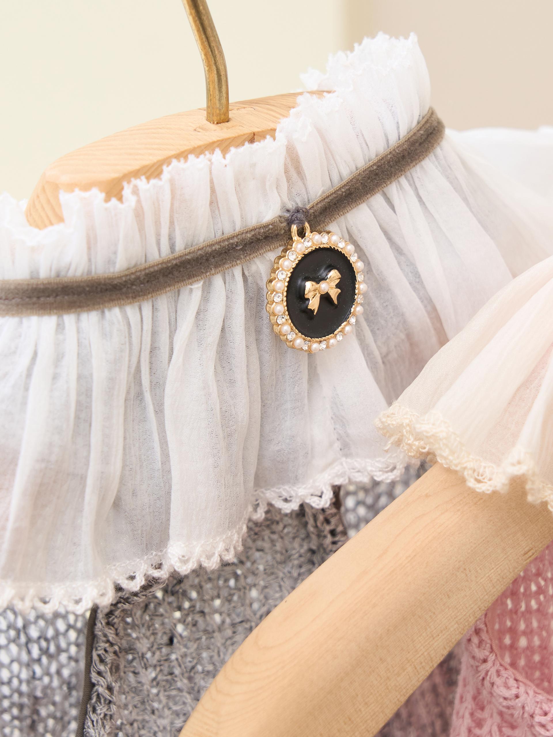 앞 네크 중심에는 작은 펜던트 장식이 포인트가 되어