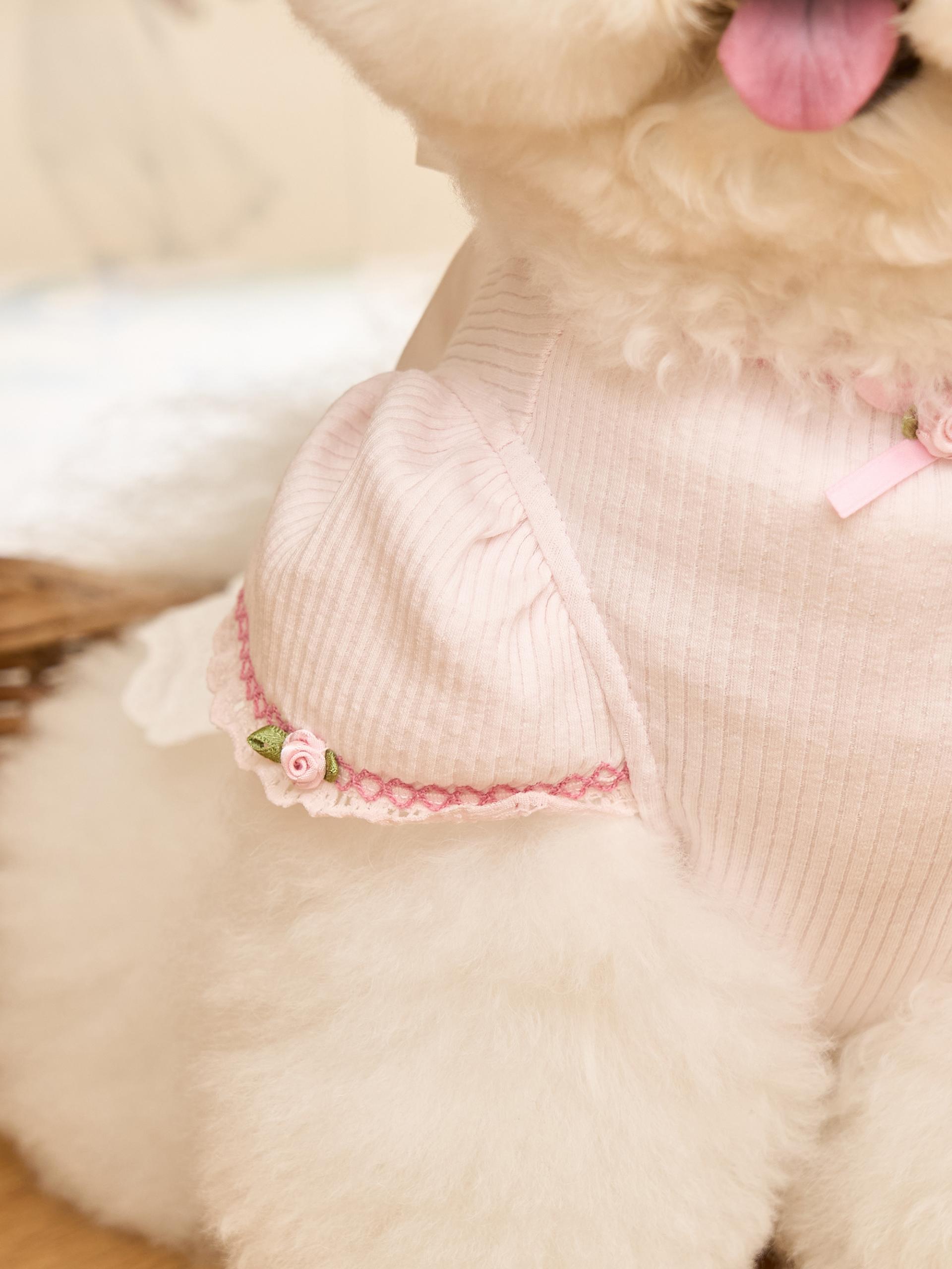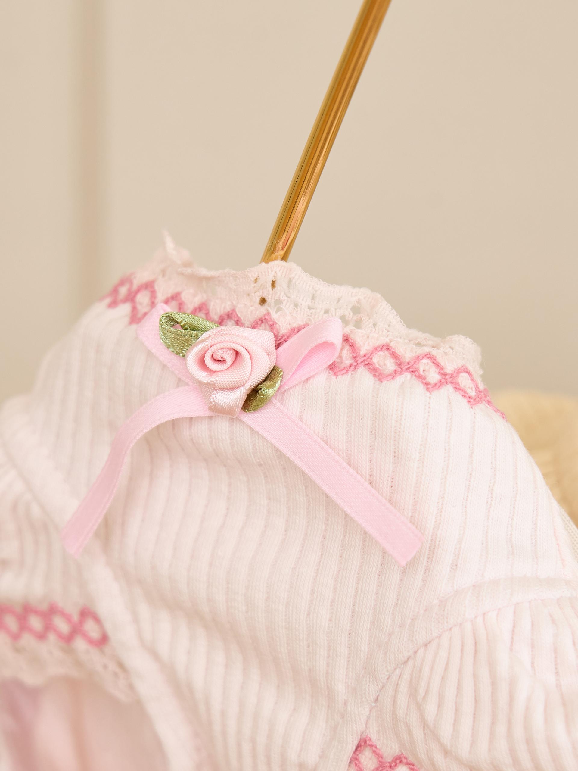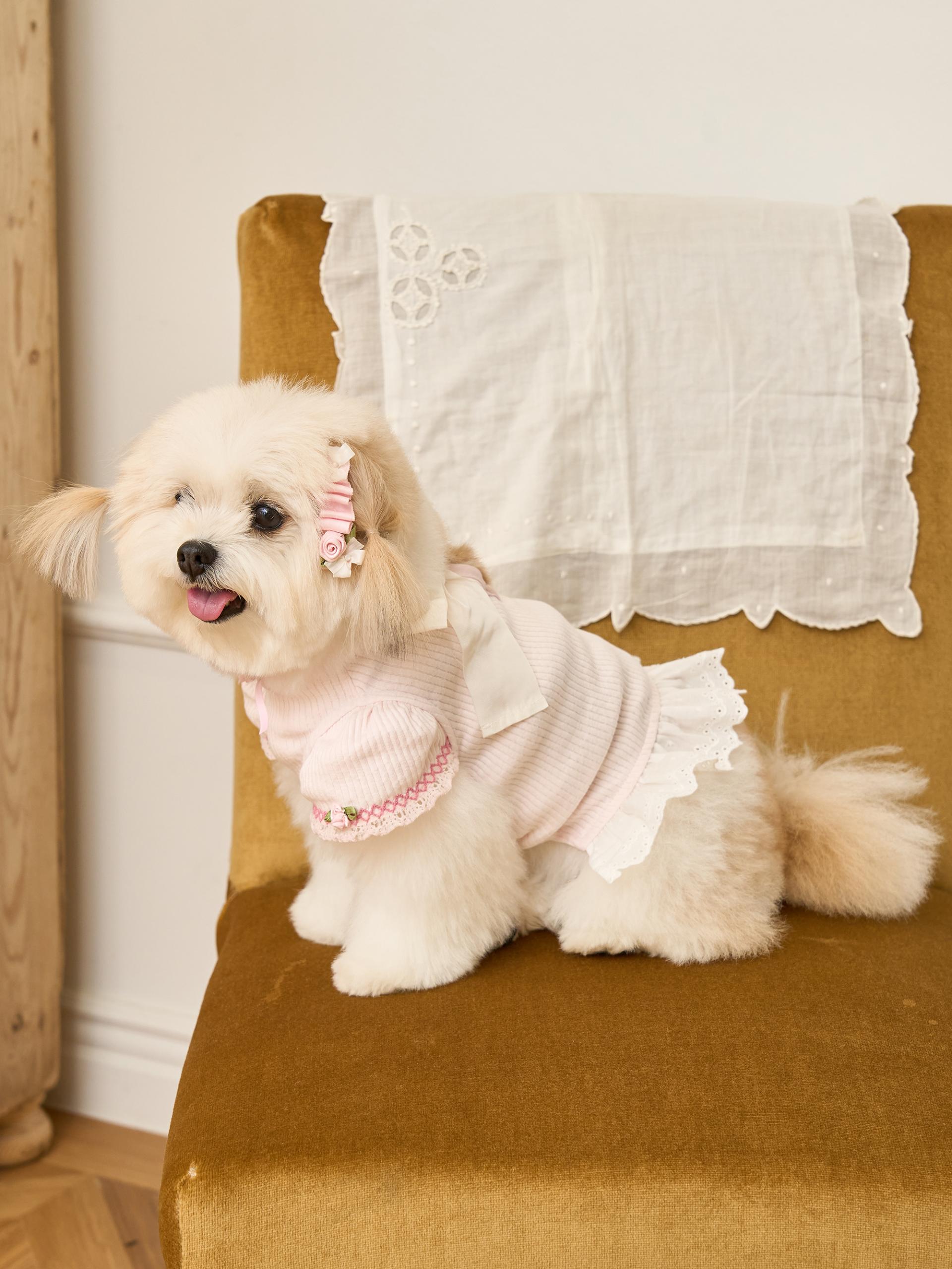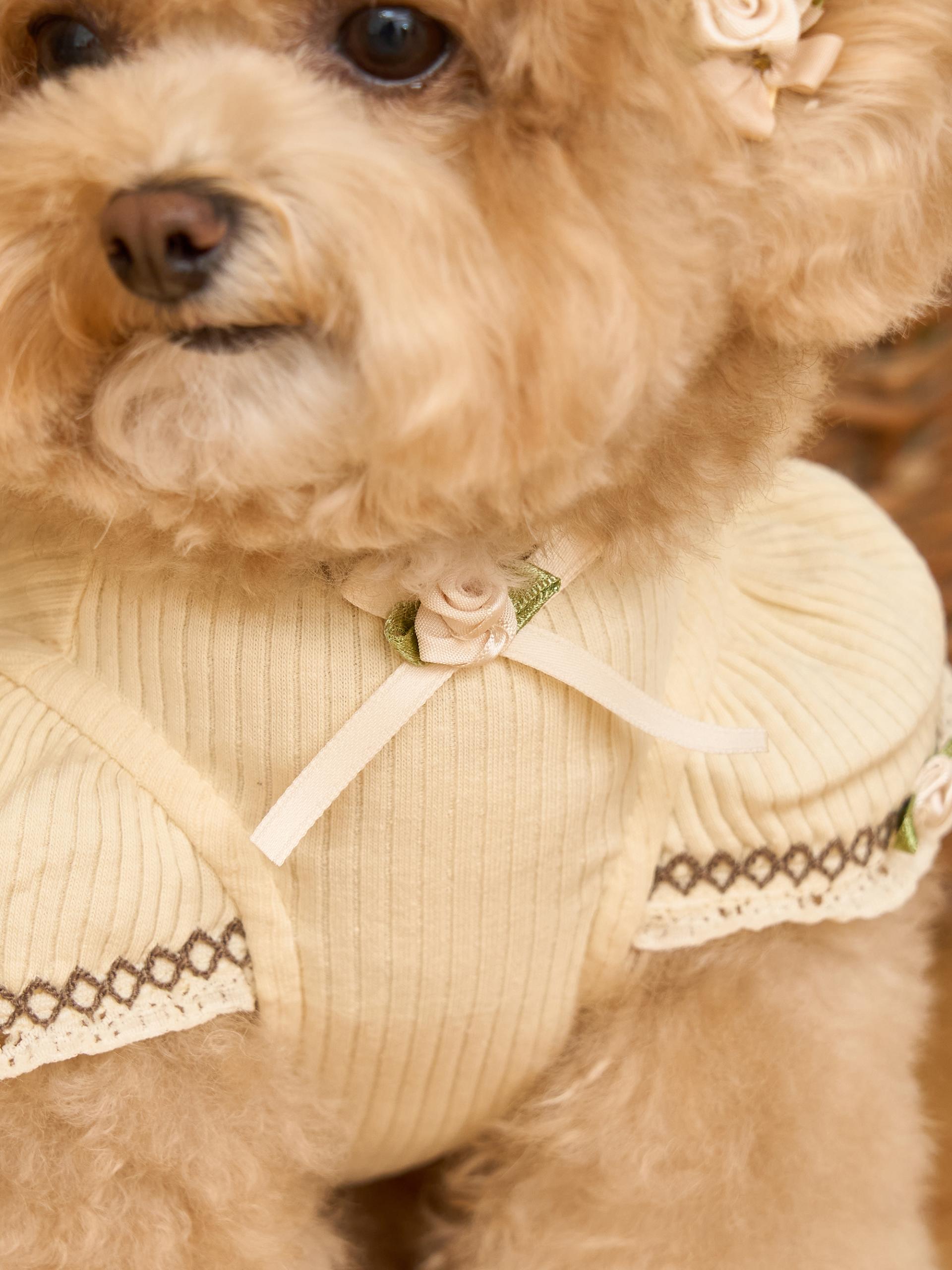 네크와 소매에 작은 장미꽃 자수 장식이 더해져,