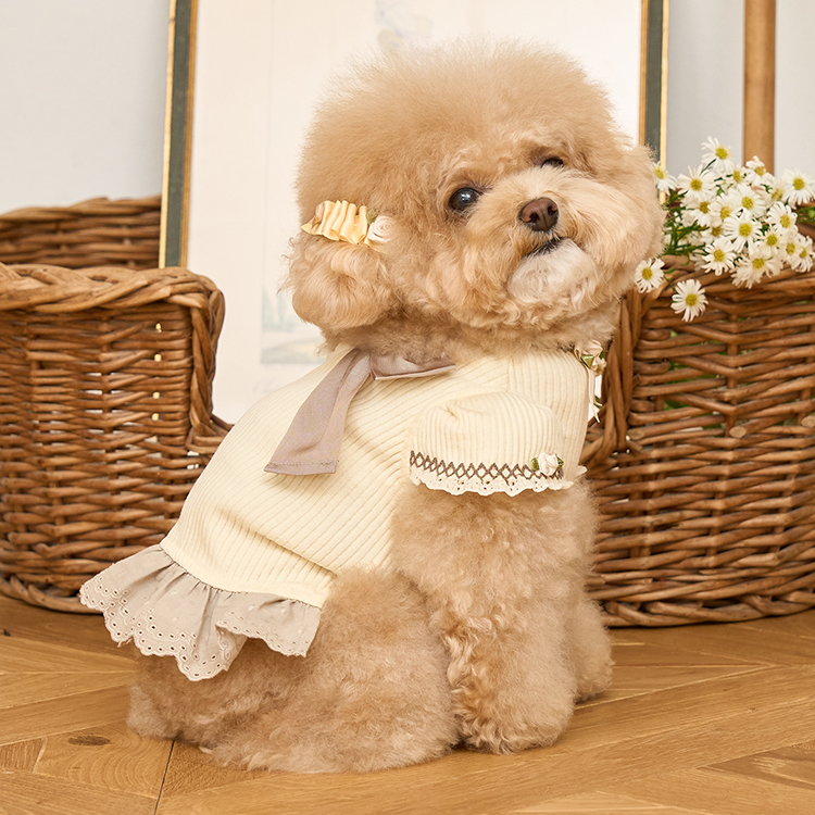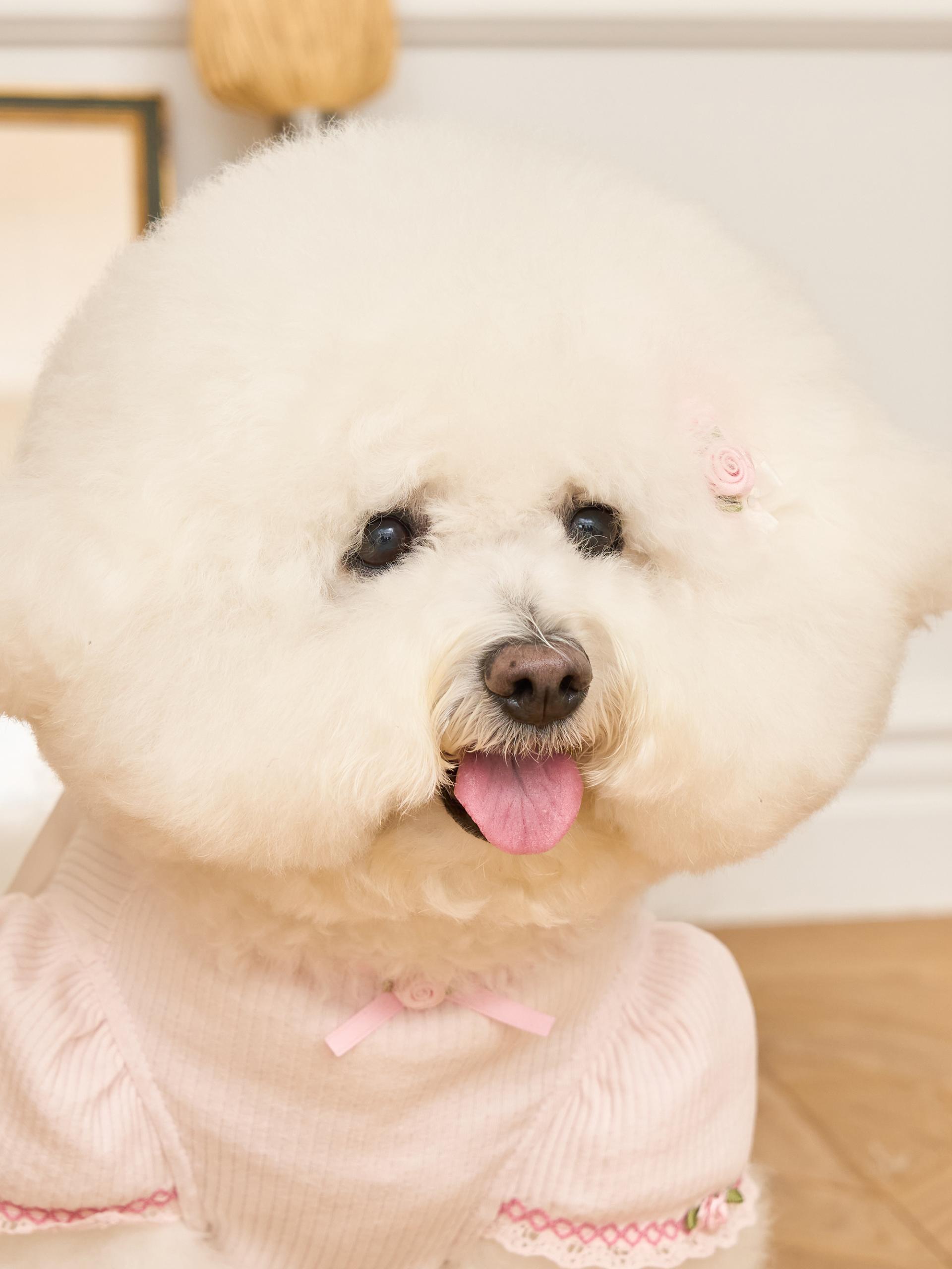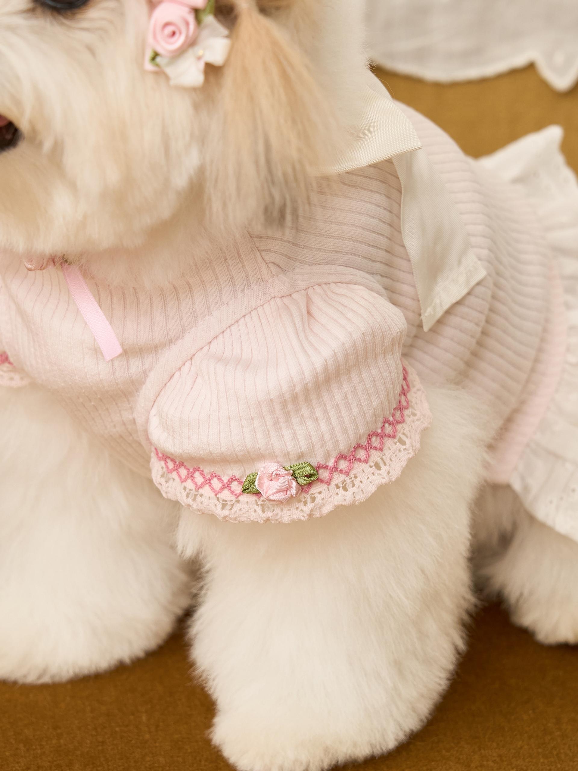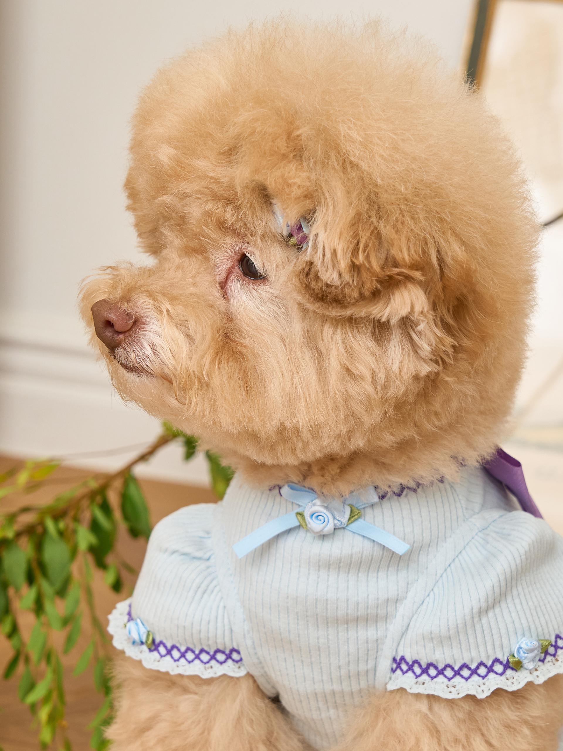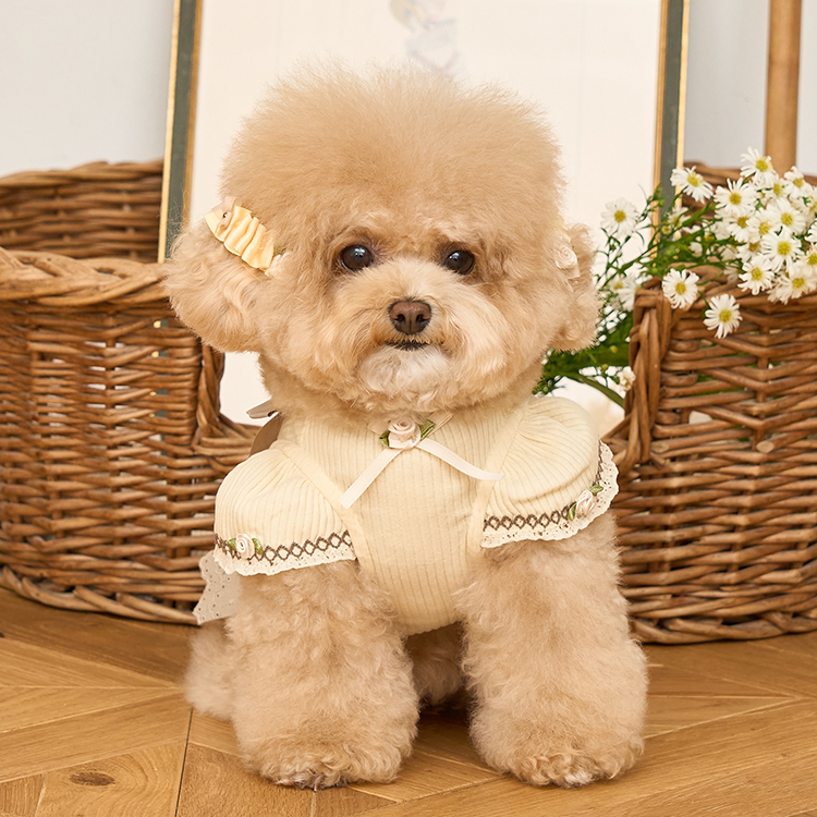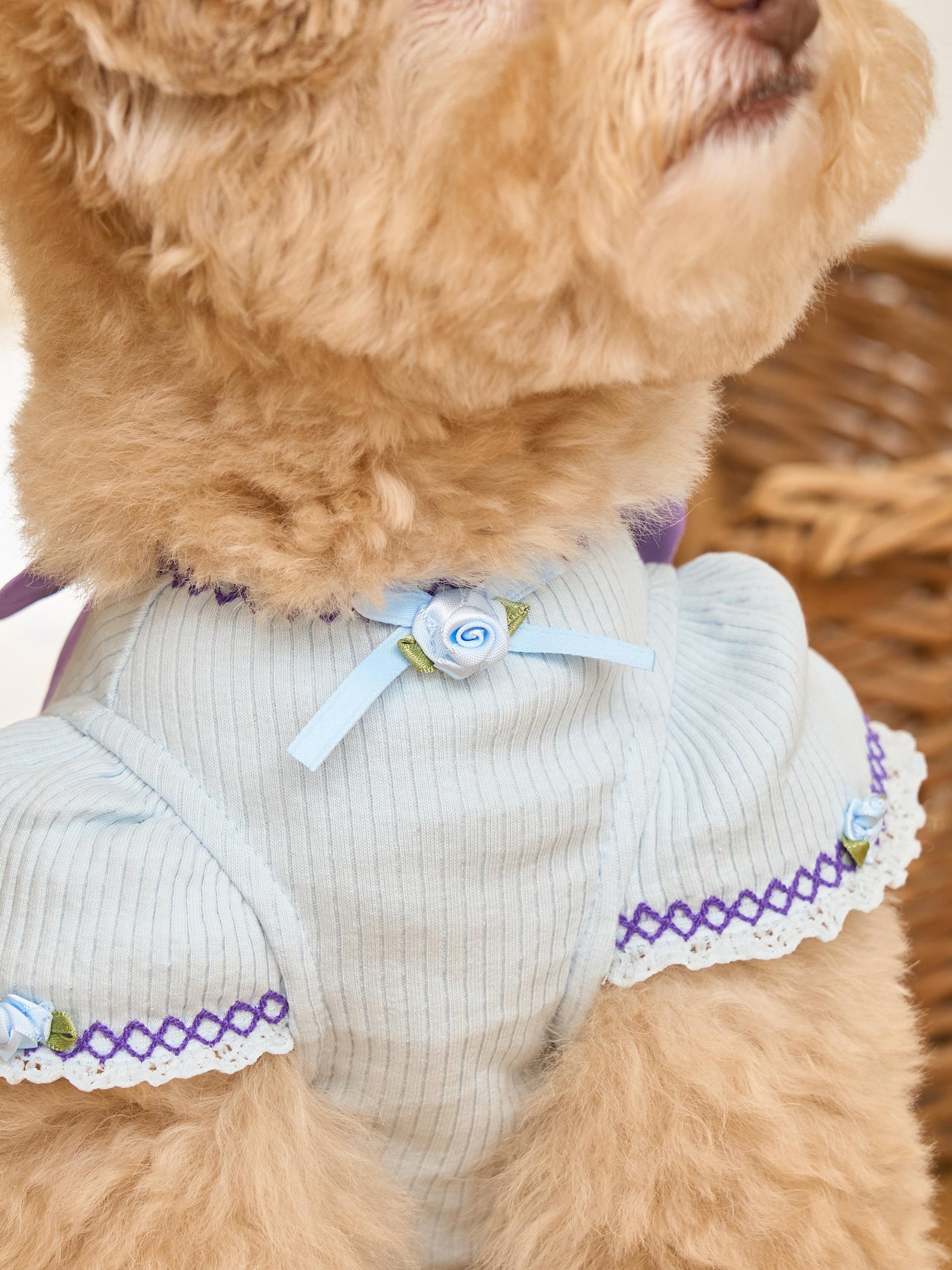 네크와 소매에 작은 장미꽃 자수 장식이 더해져,