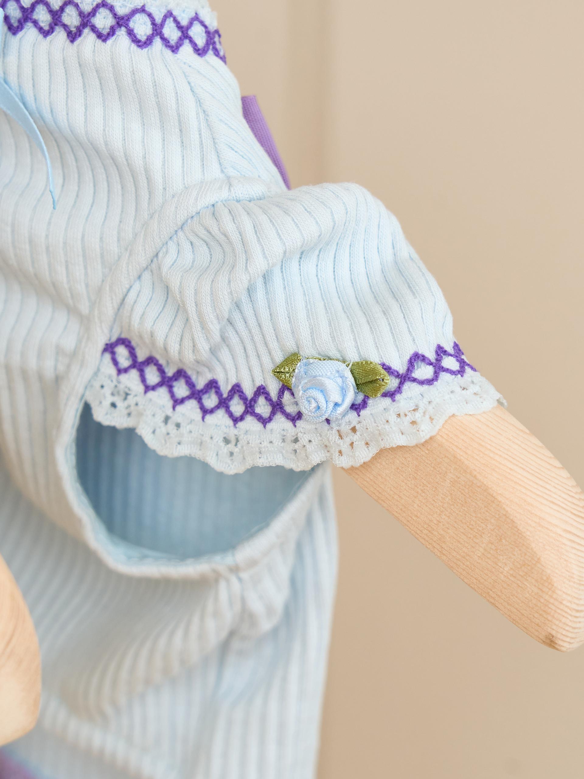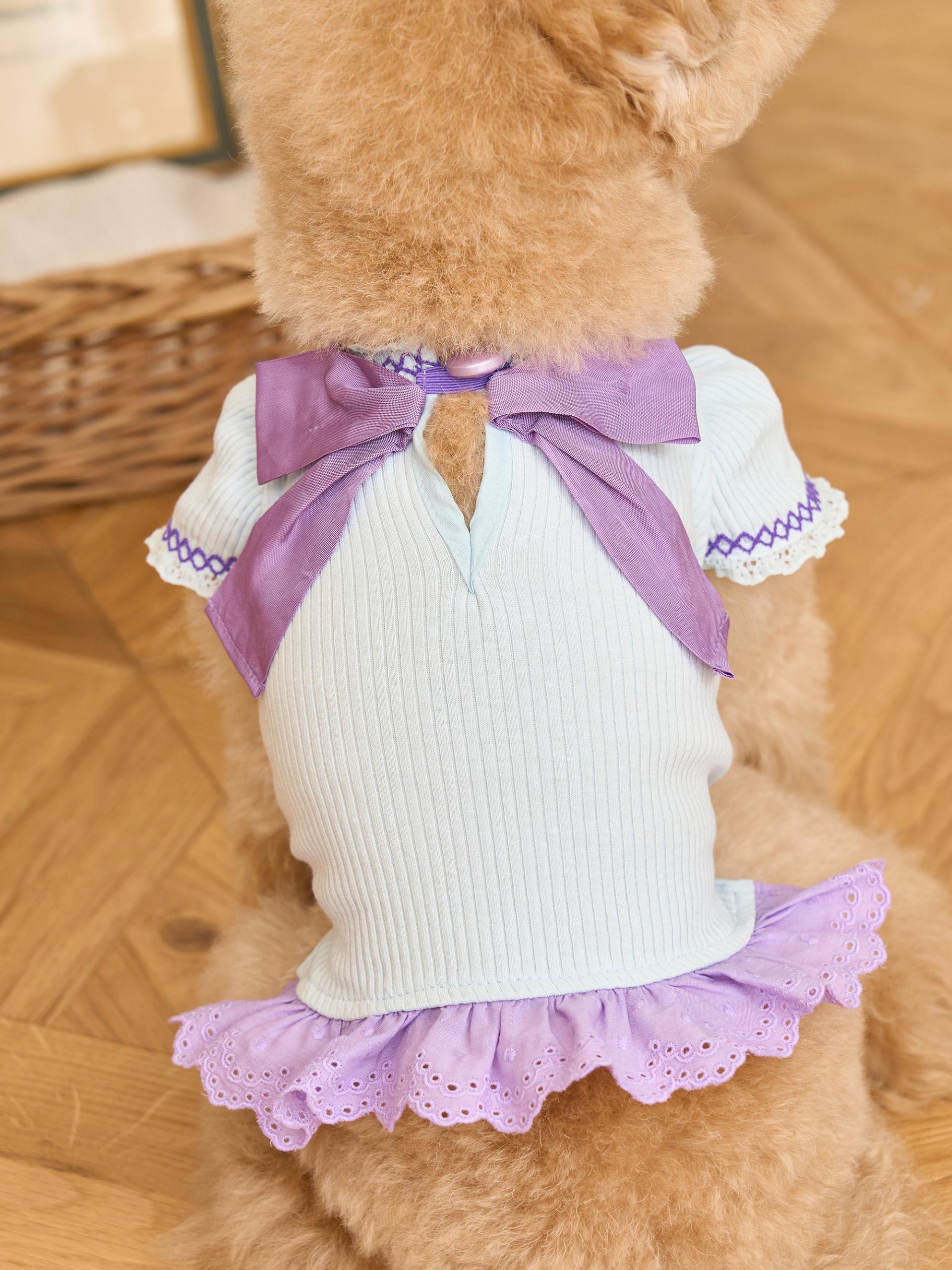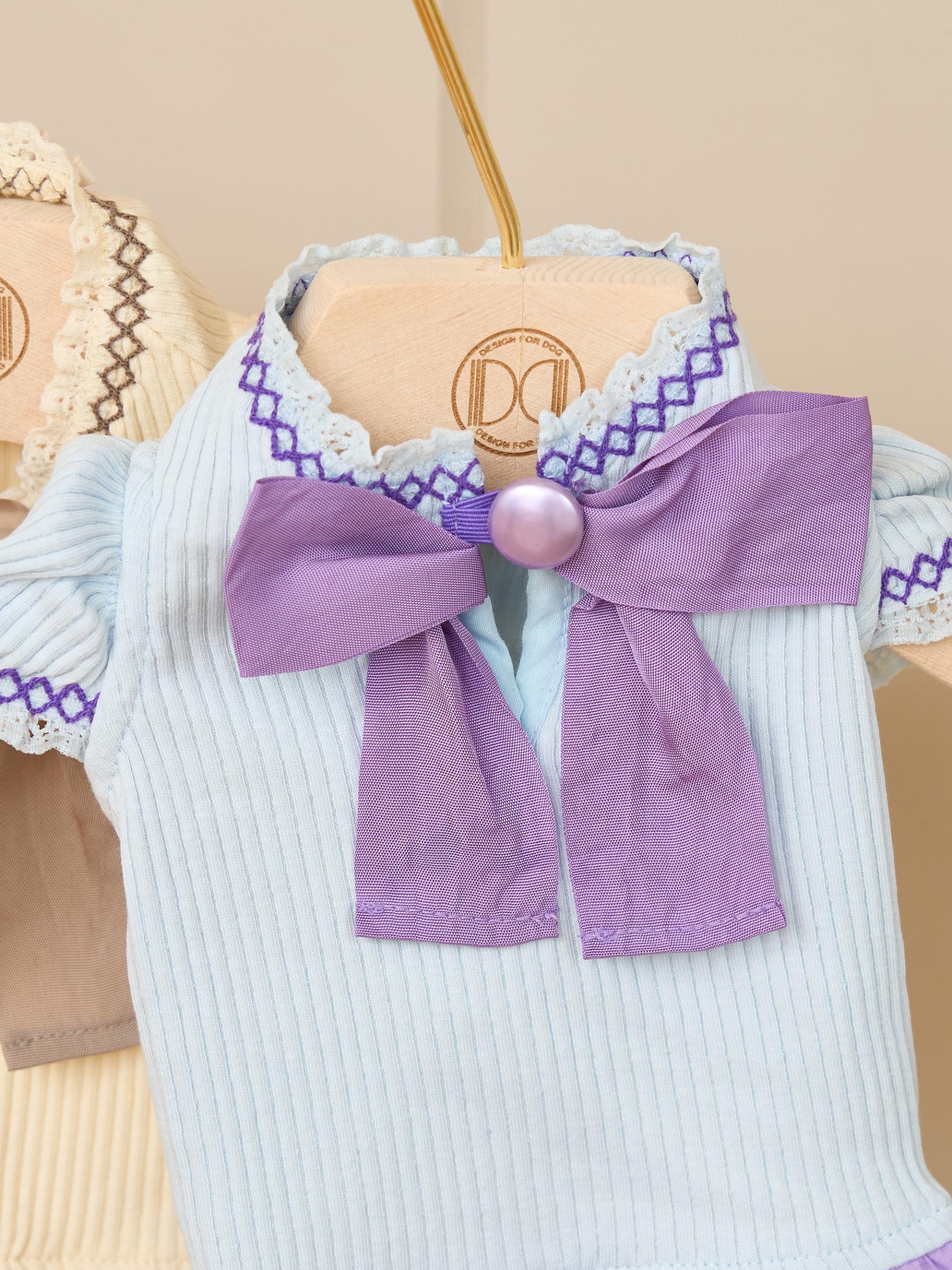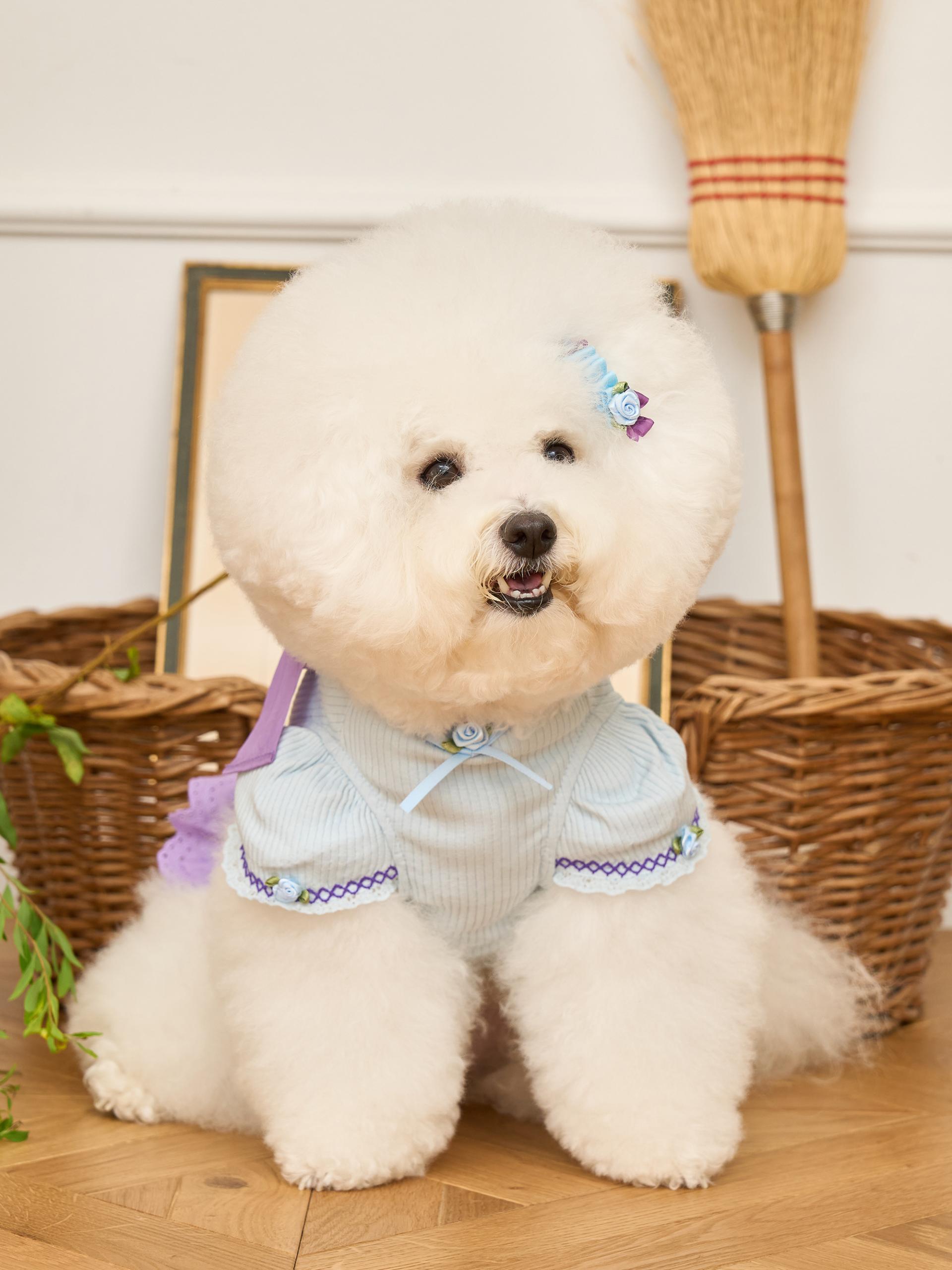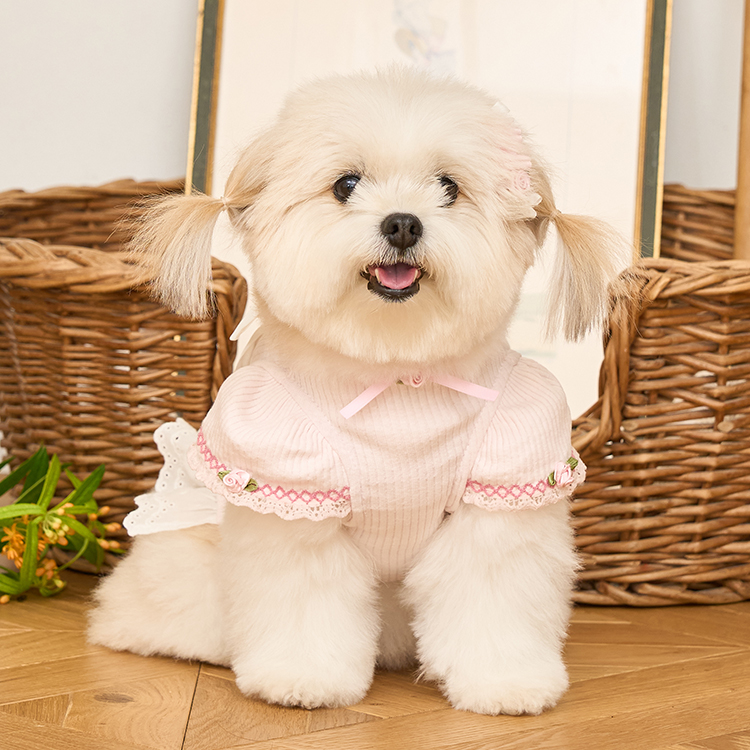 네크와 소매에 작은 장미꽃 자수 장식이 더해져,