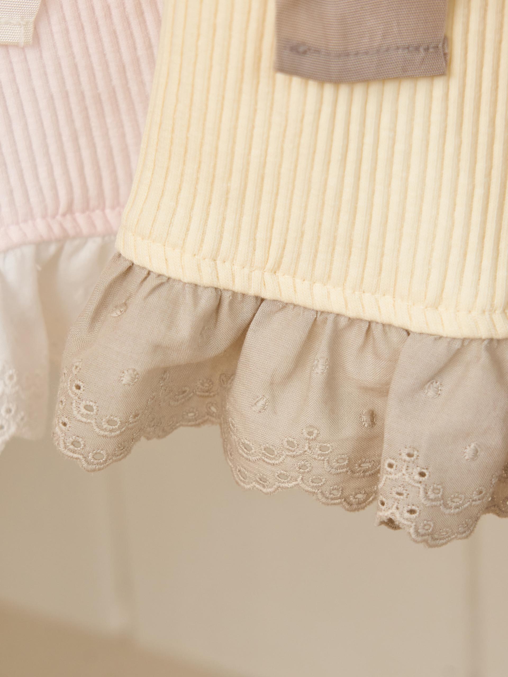 밑단에는 스칼럽 자수 면 레이스가 더해져,