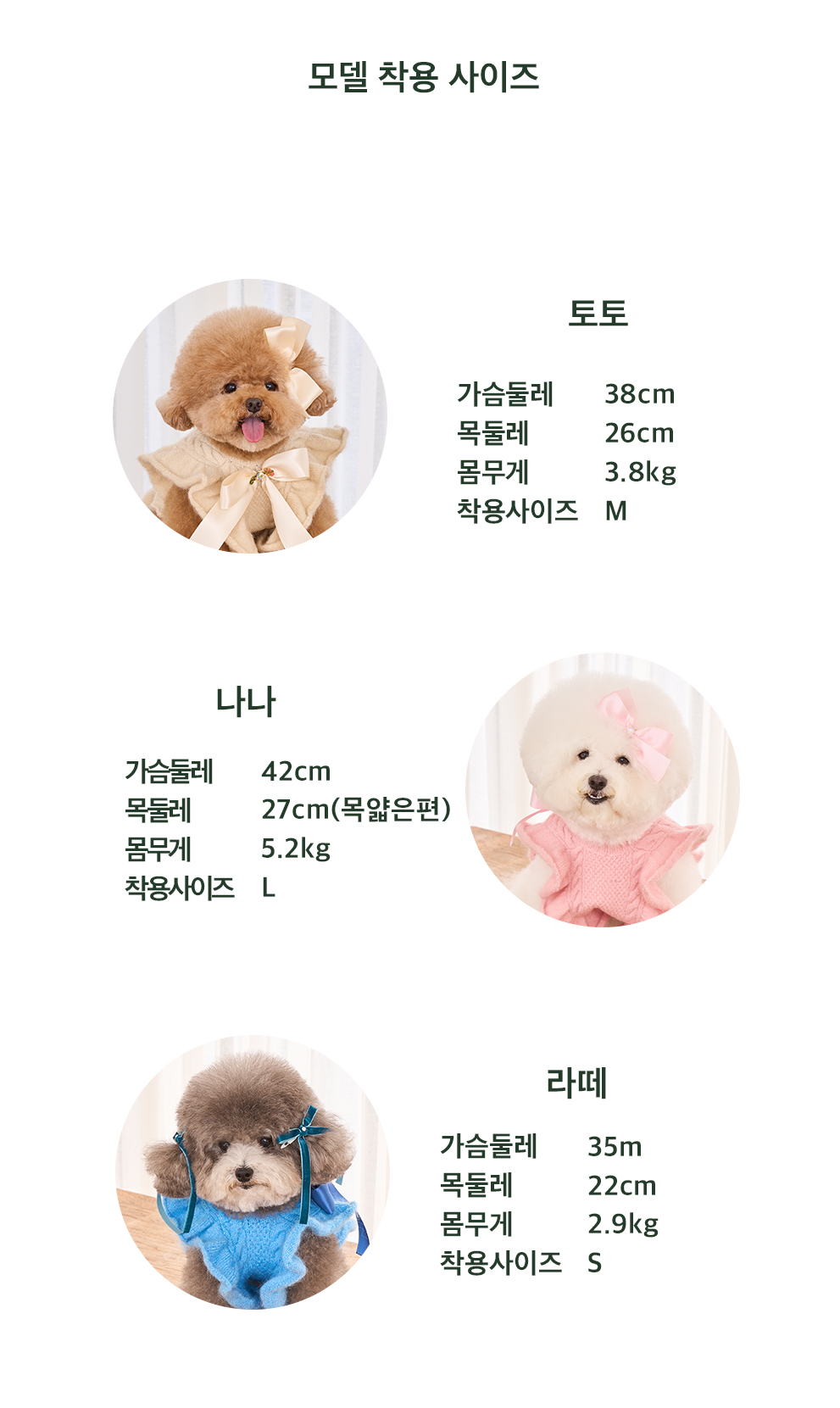 아래는 바닐라 컬러 기준의 사이즈입니다.
