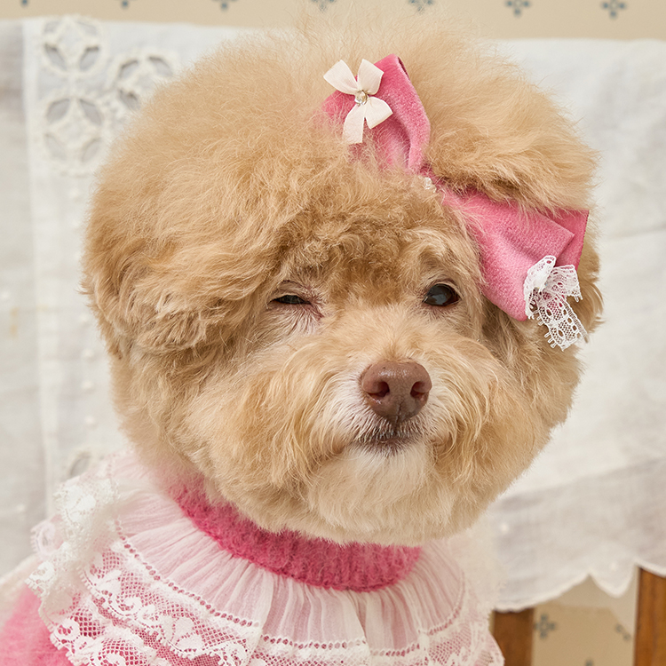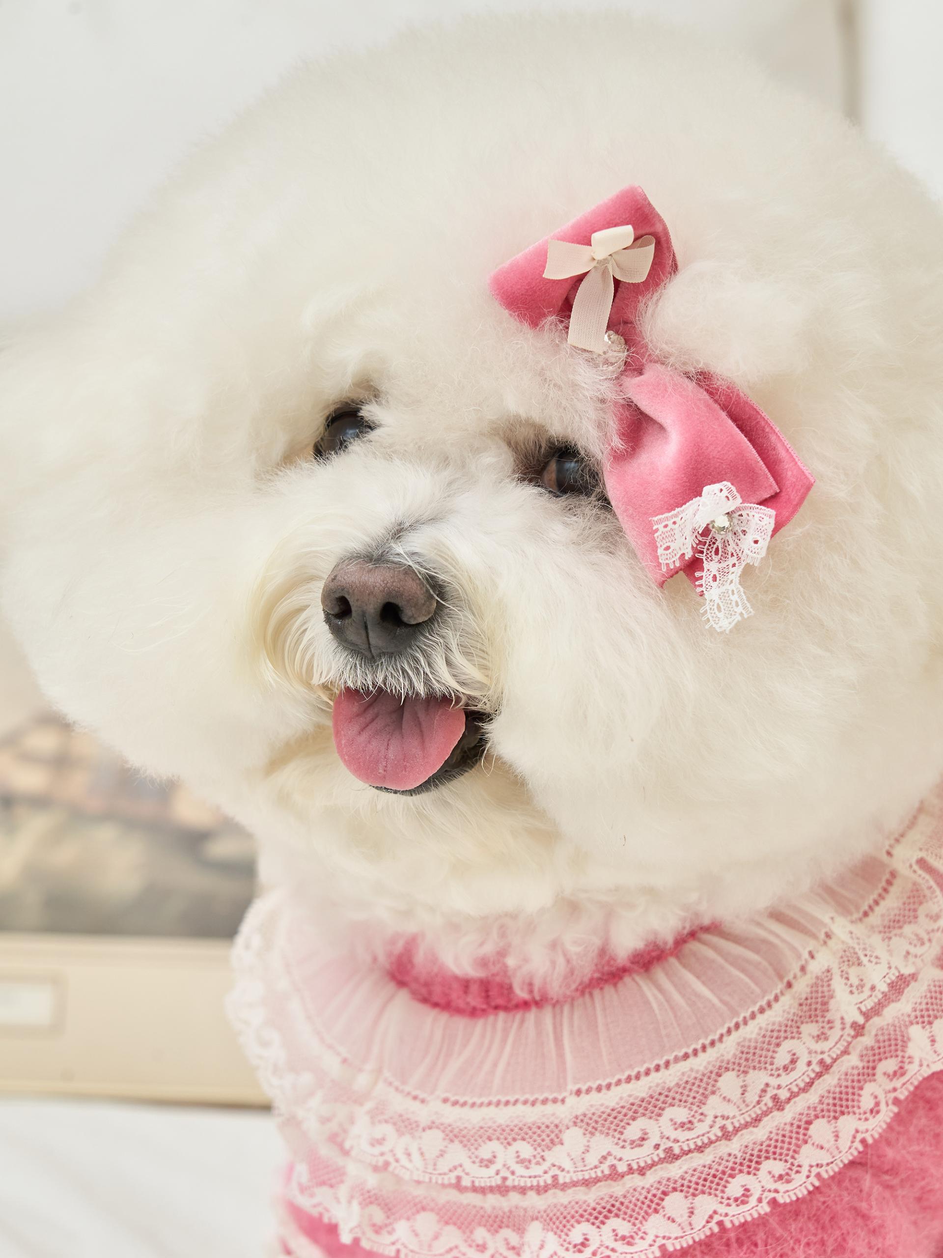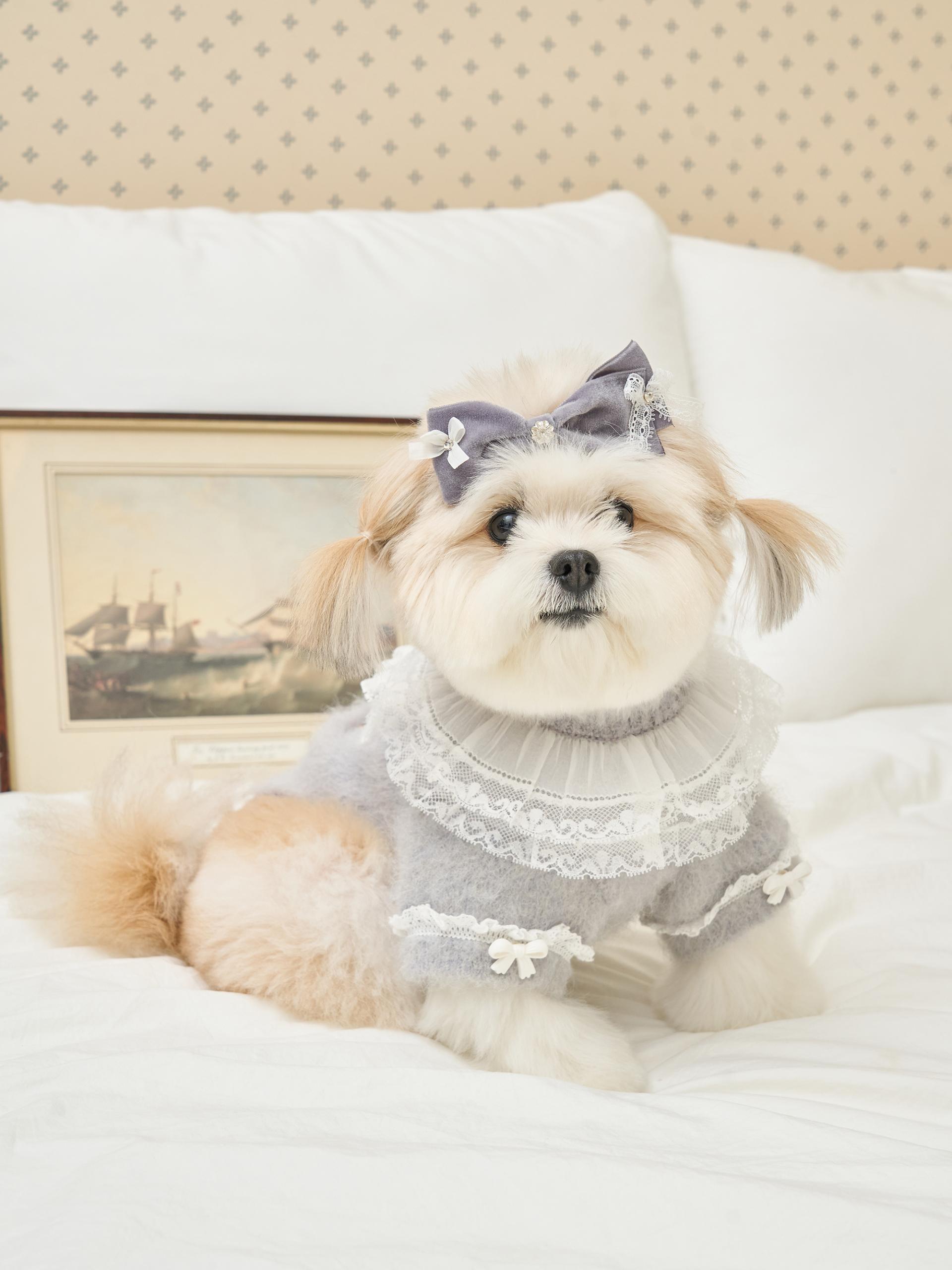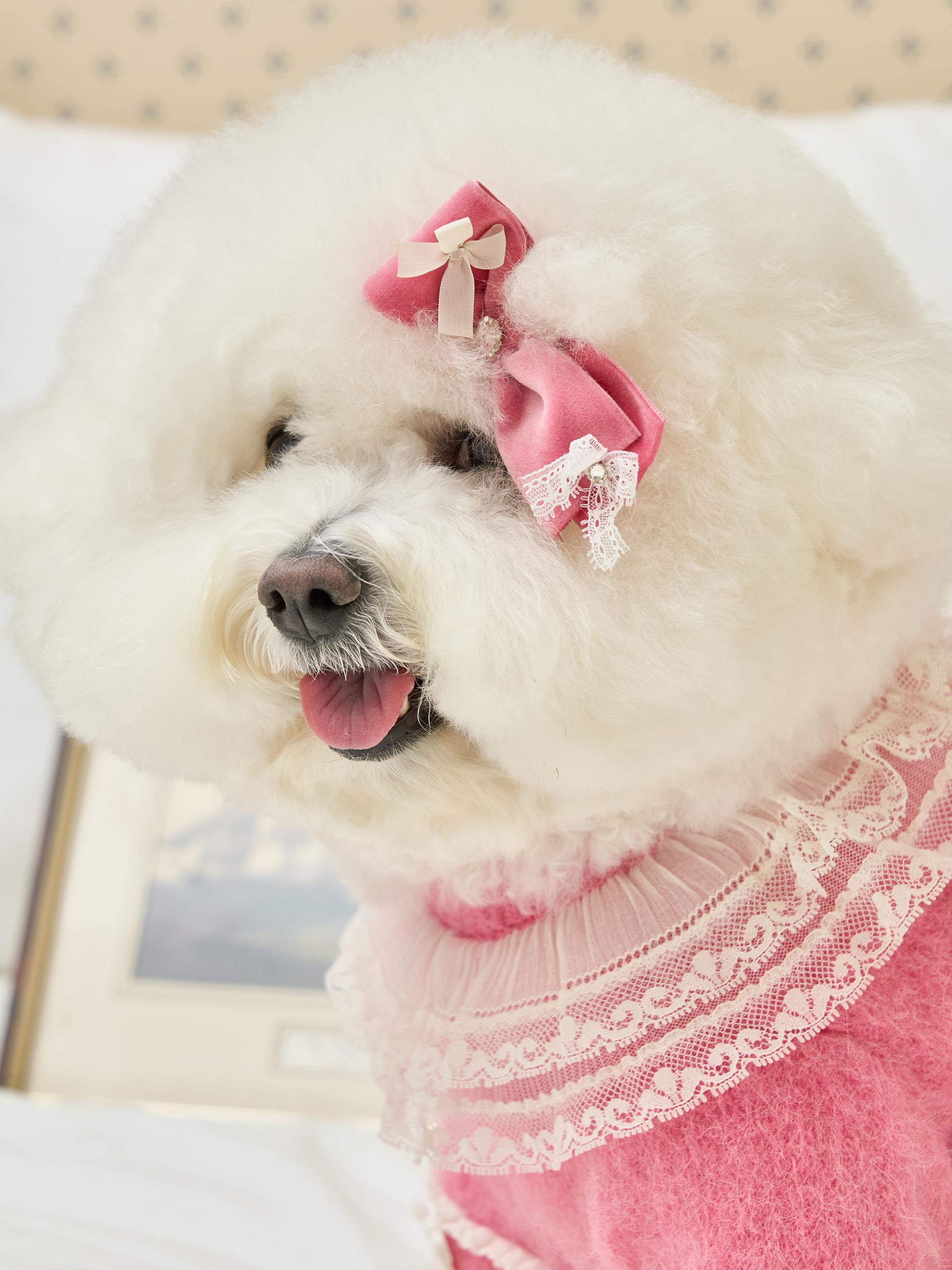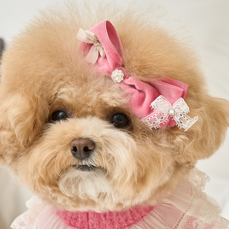 리본 끝단에는 섬세한 레이스 디테일이 더해져,