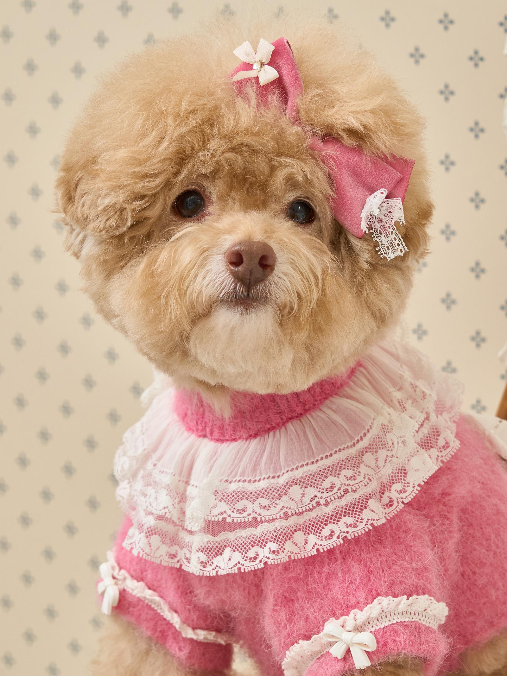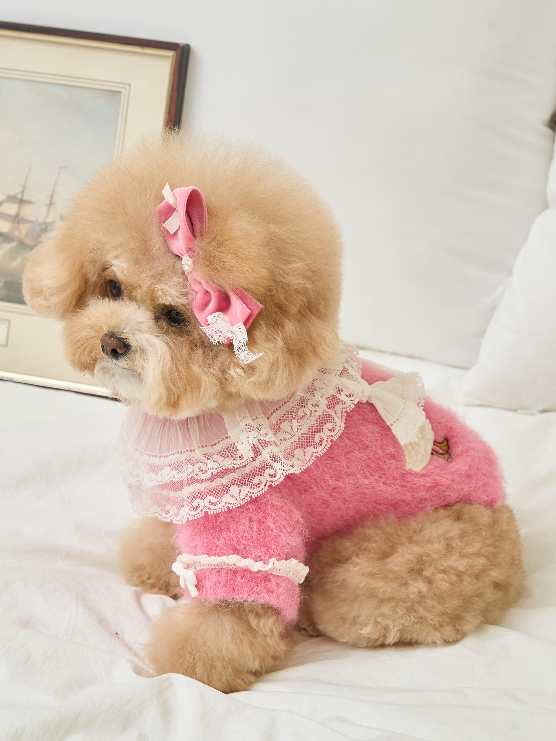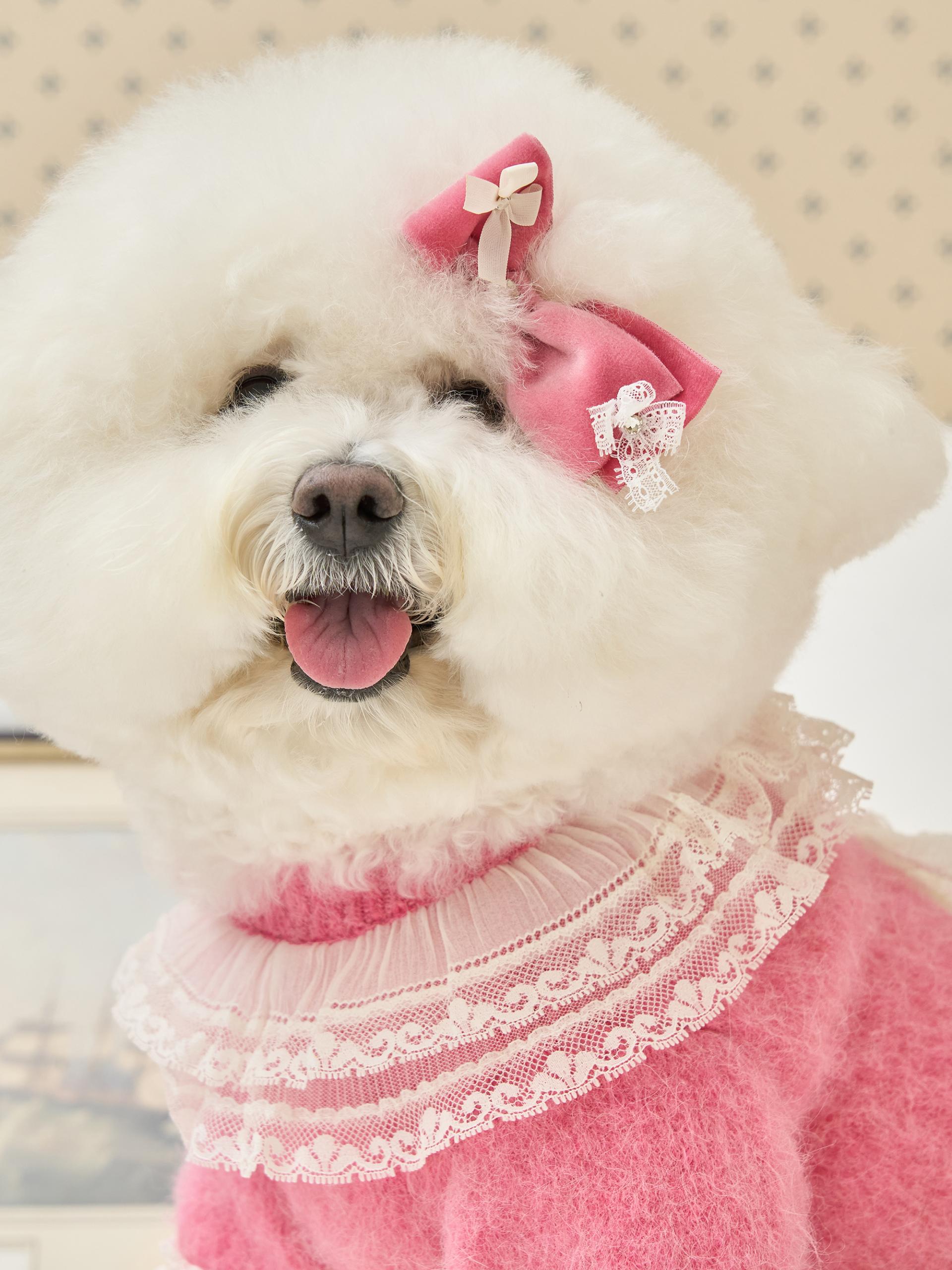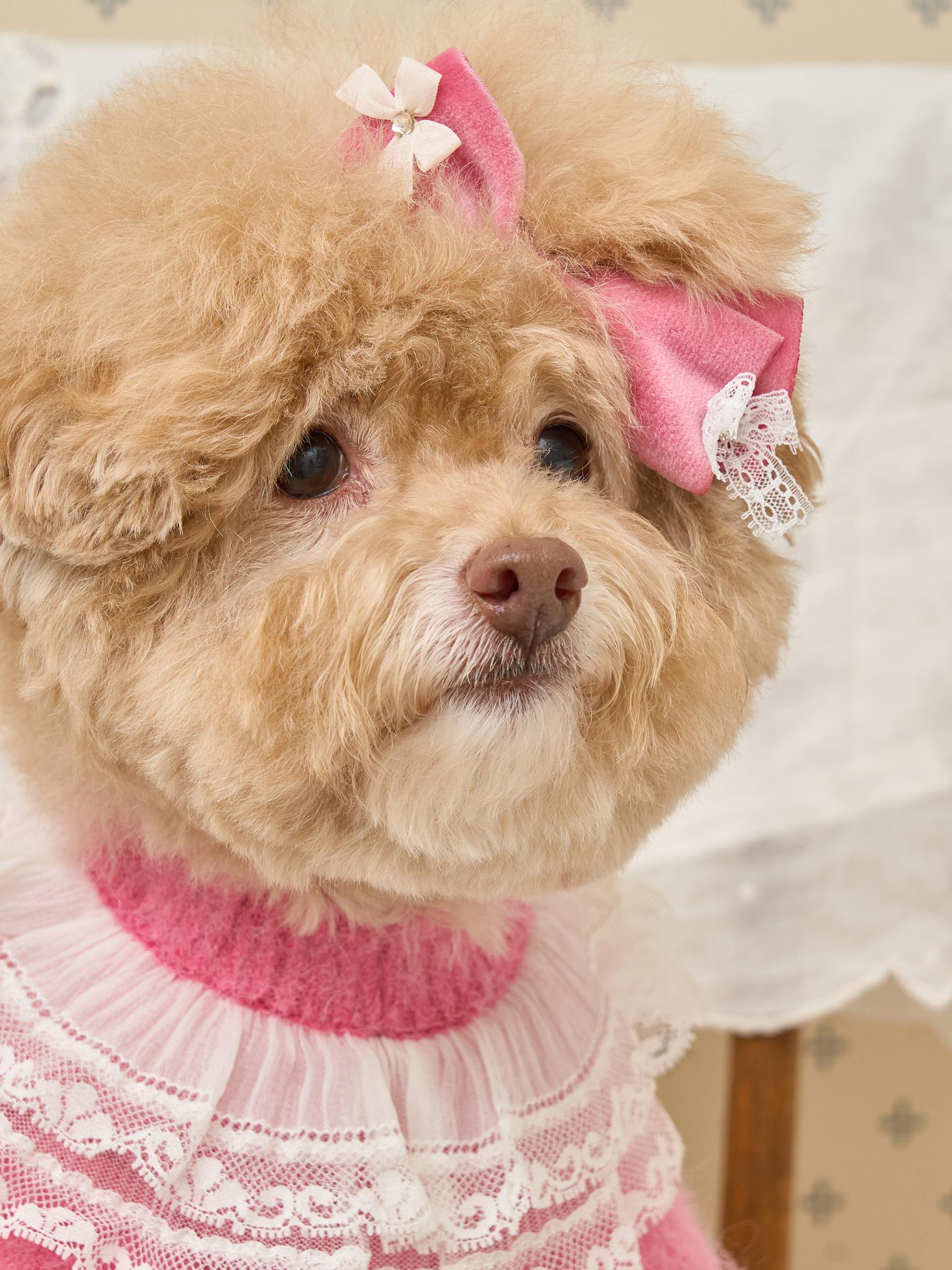 리본 끝단에는 섬세한 레이스 디테일이 더해져,