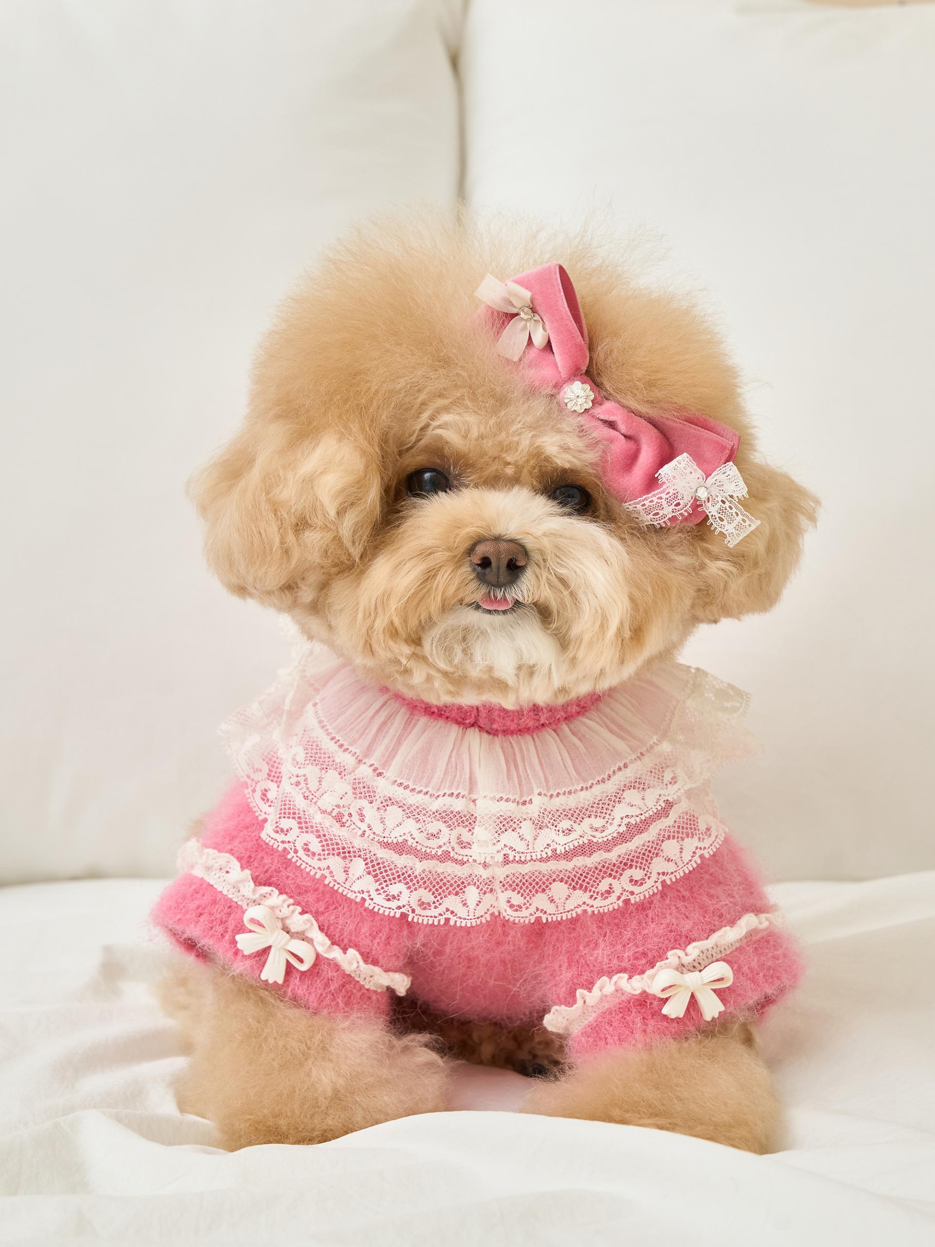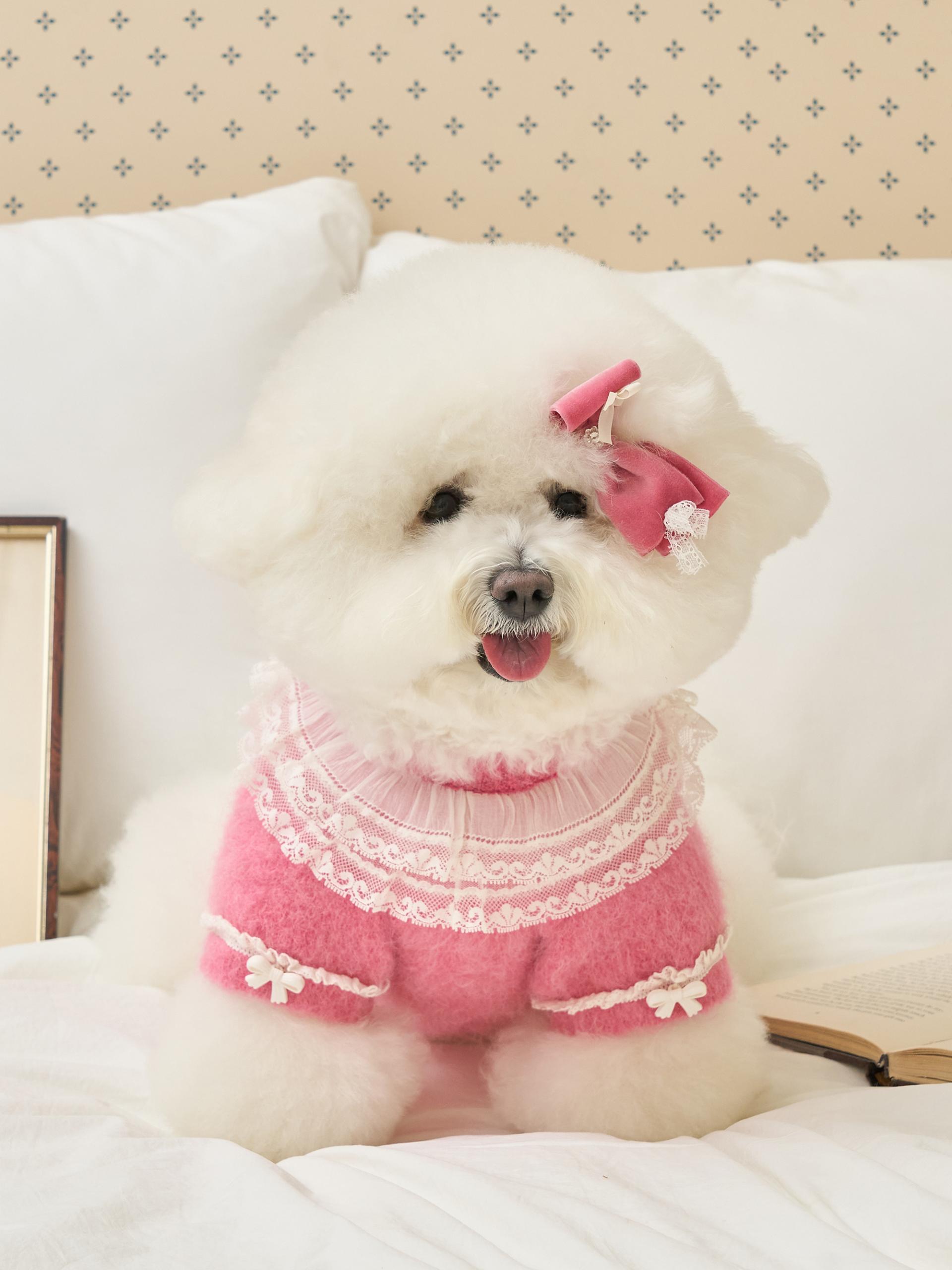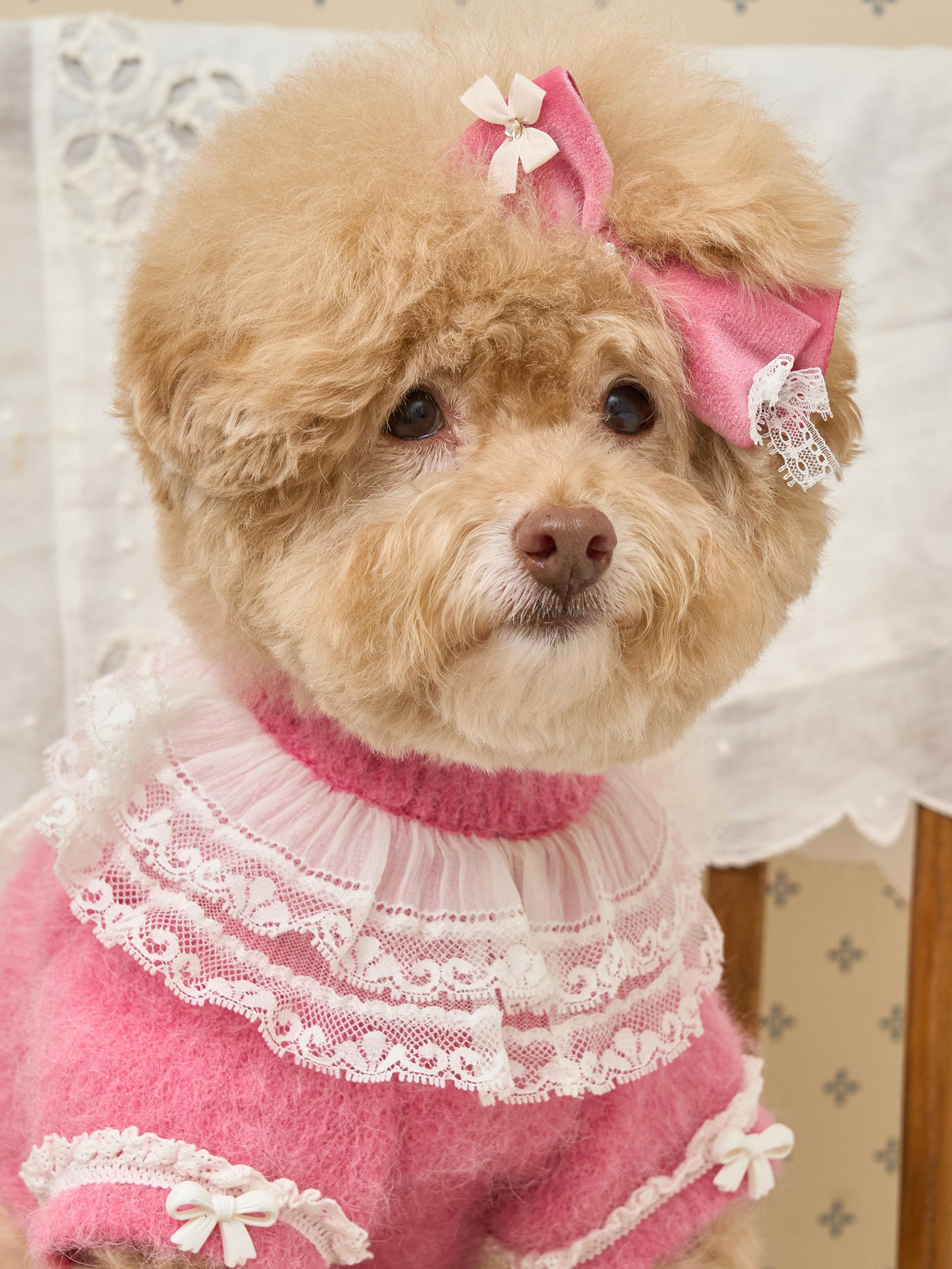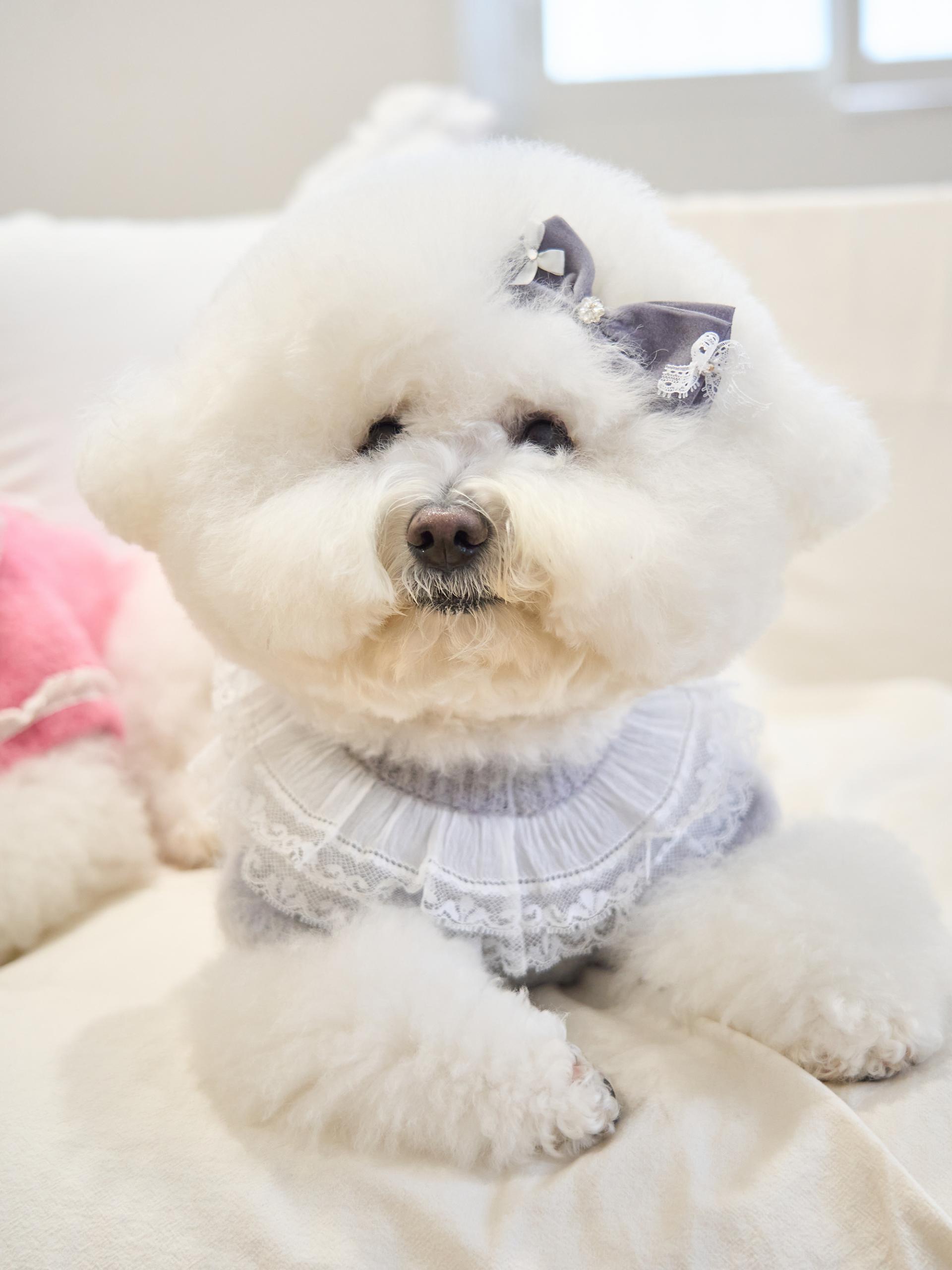 리본 끝단에는 섬세한 레이스 디테일이 더해져,