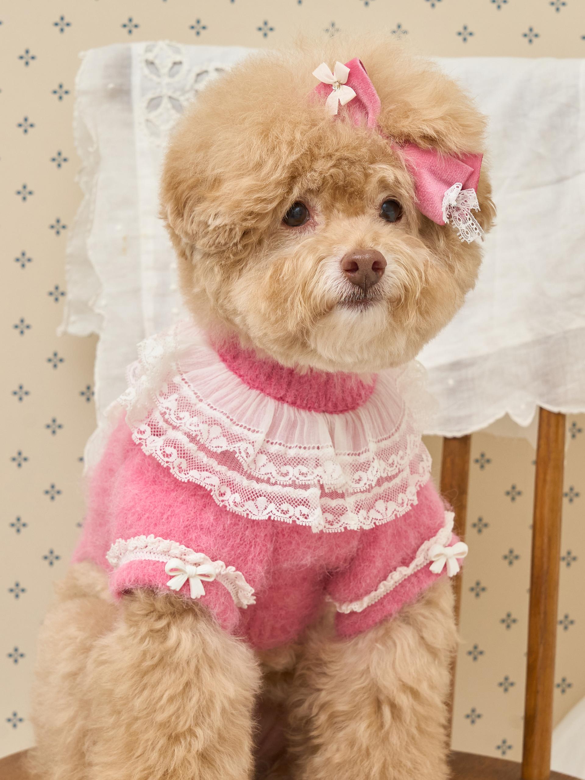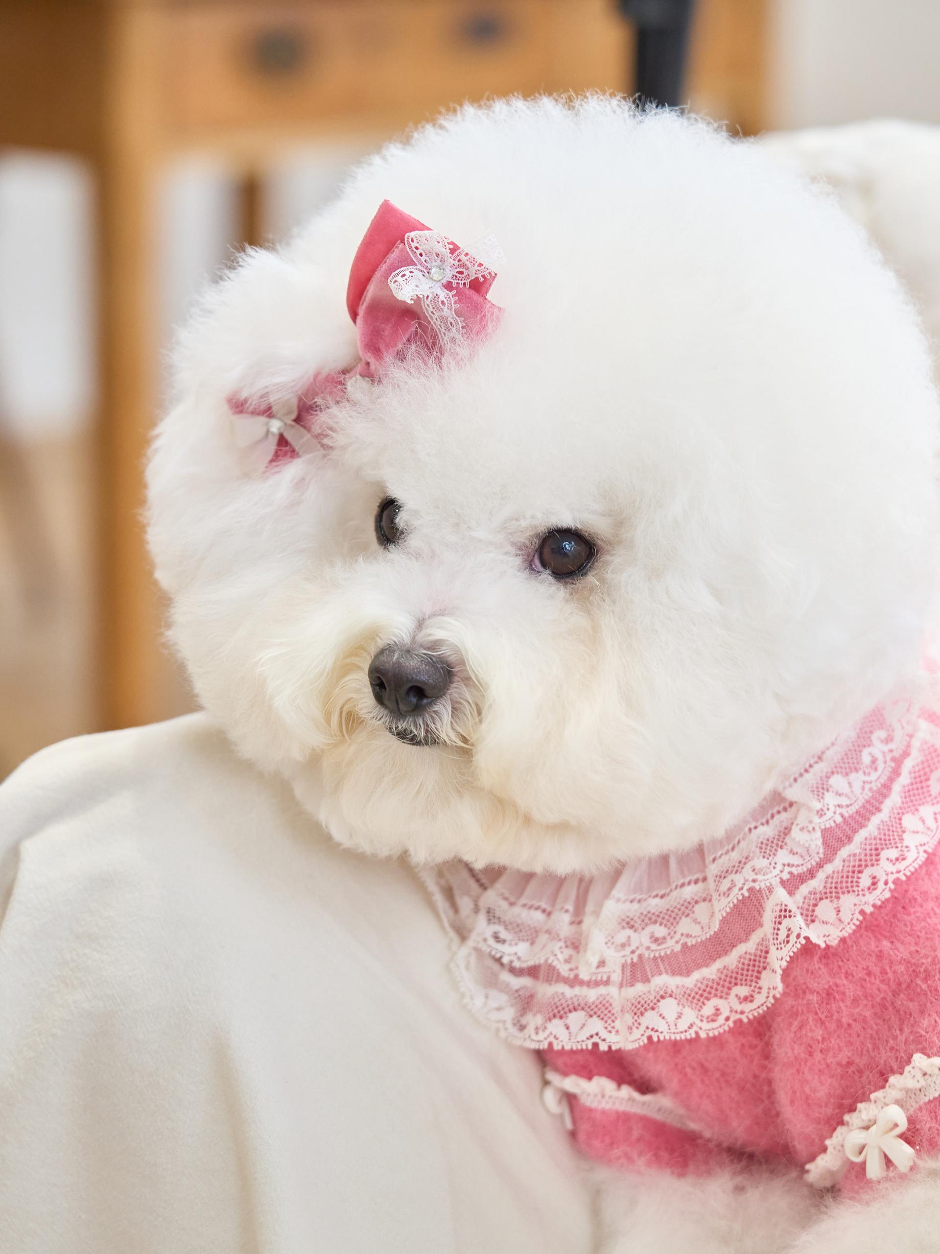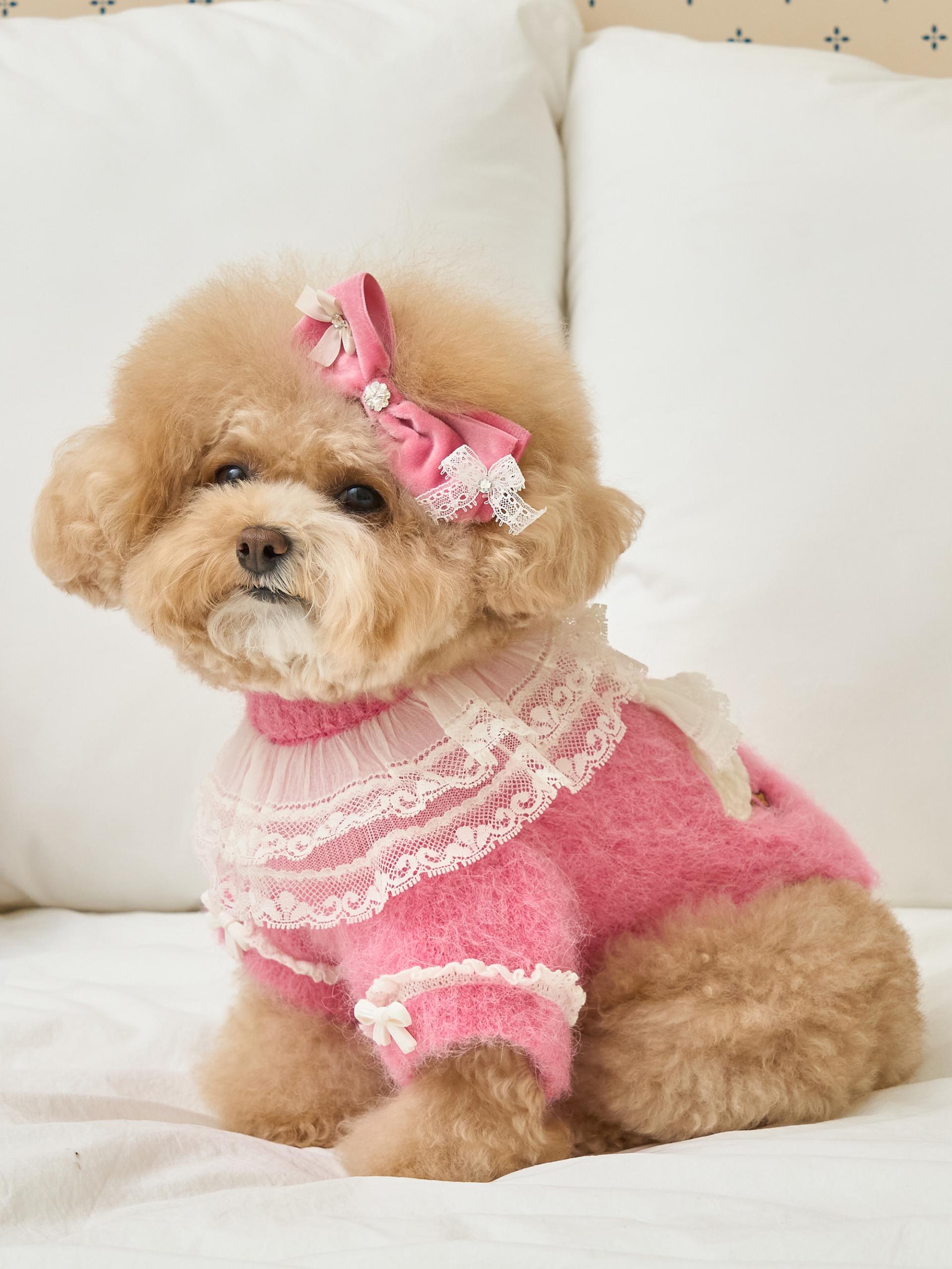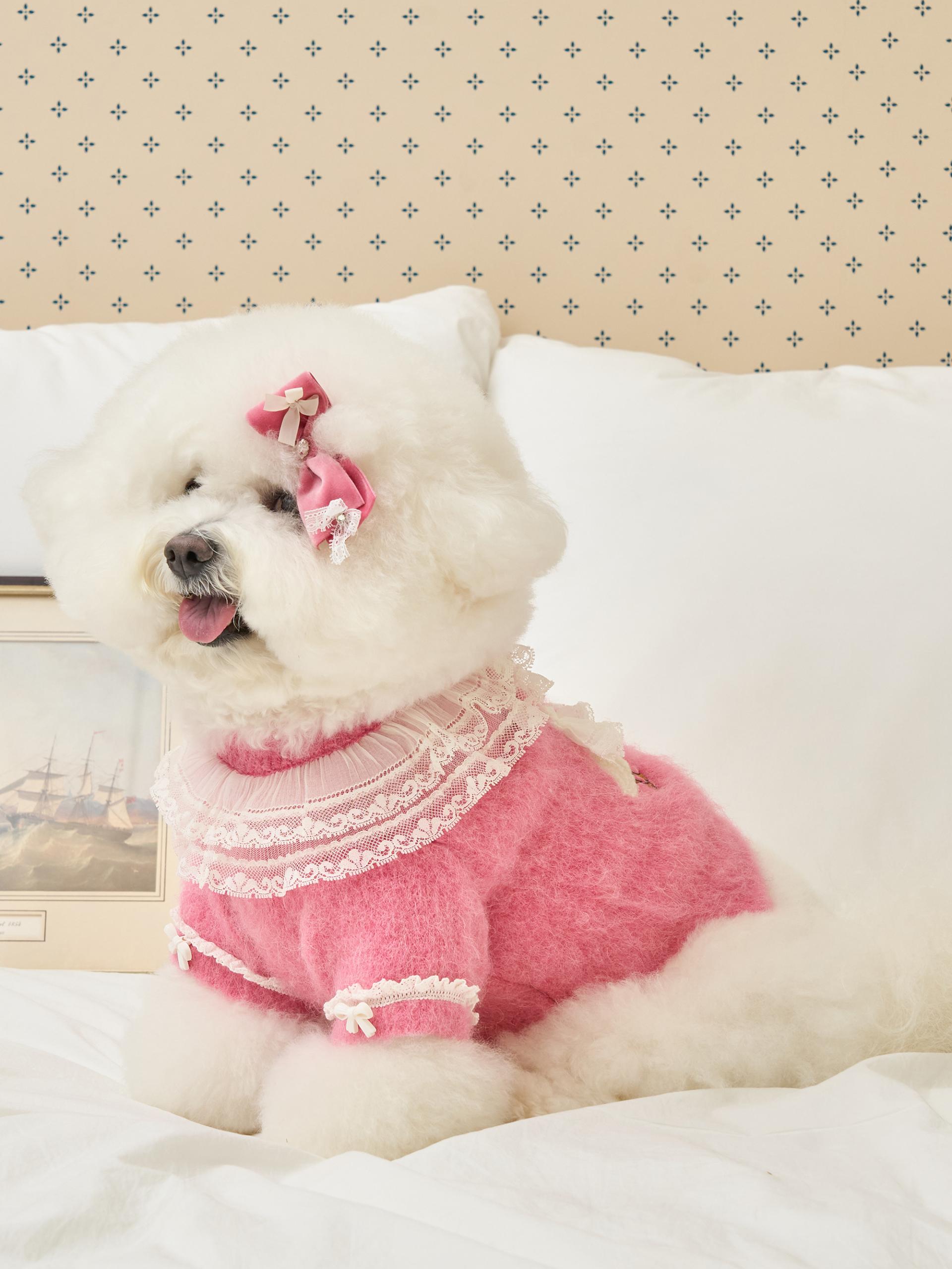 리본 끝단에는 섬세한 레이스 디테일이 더해져,