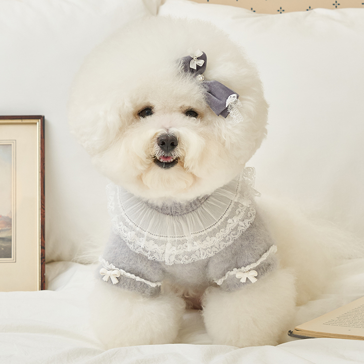 네크라인에는 섬세한 레이스 장식의 프릴 케이프가