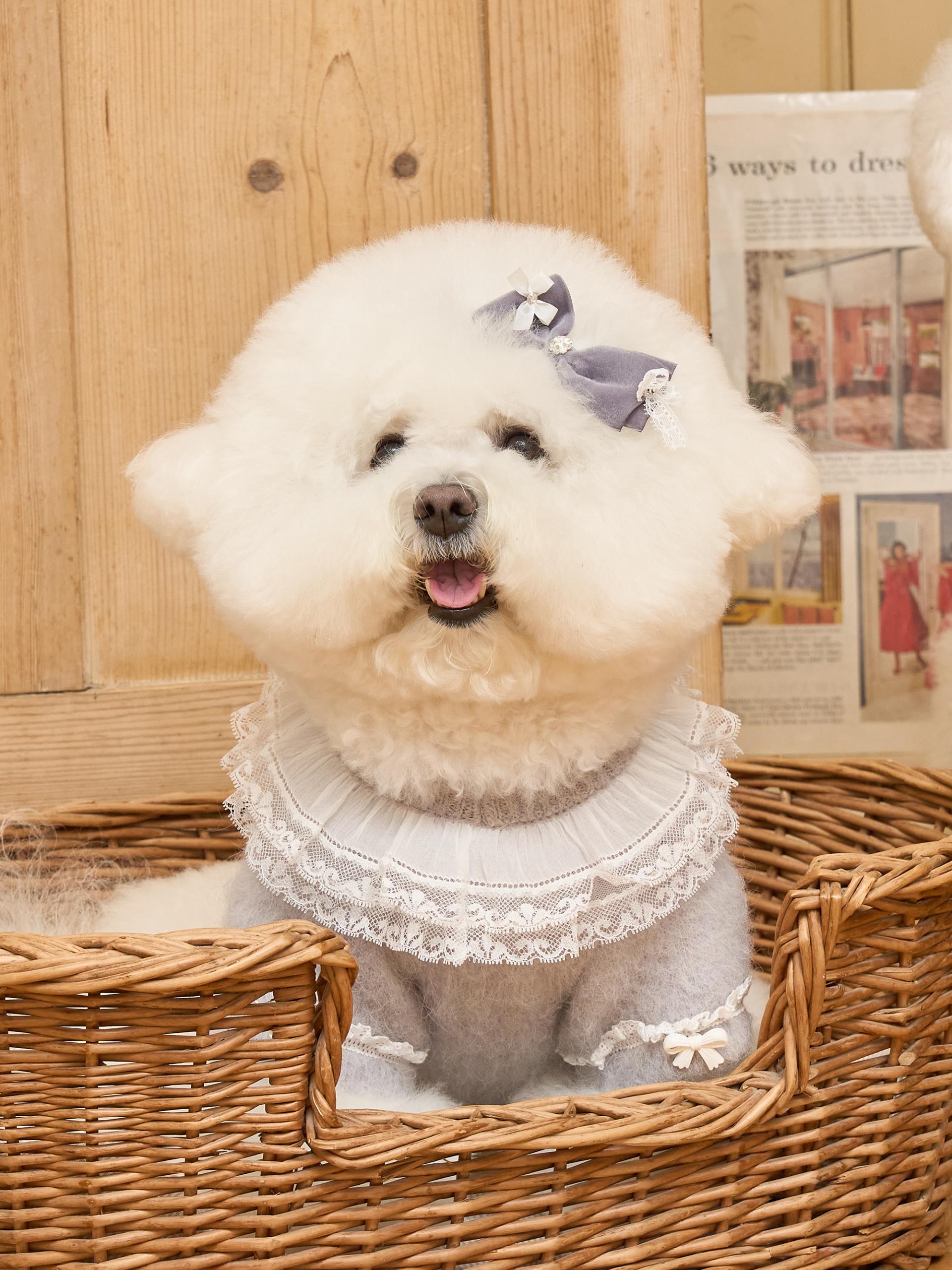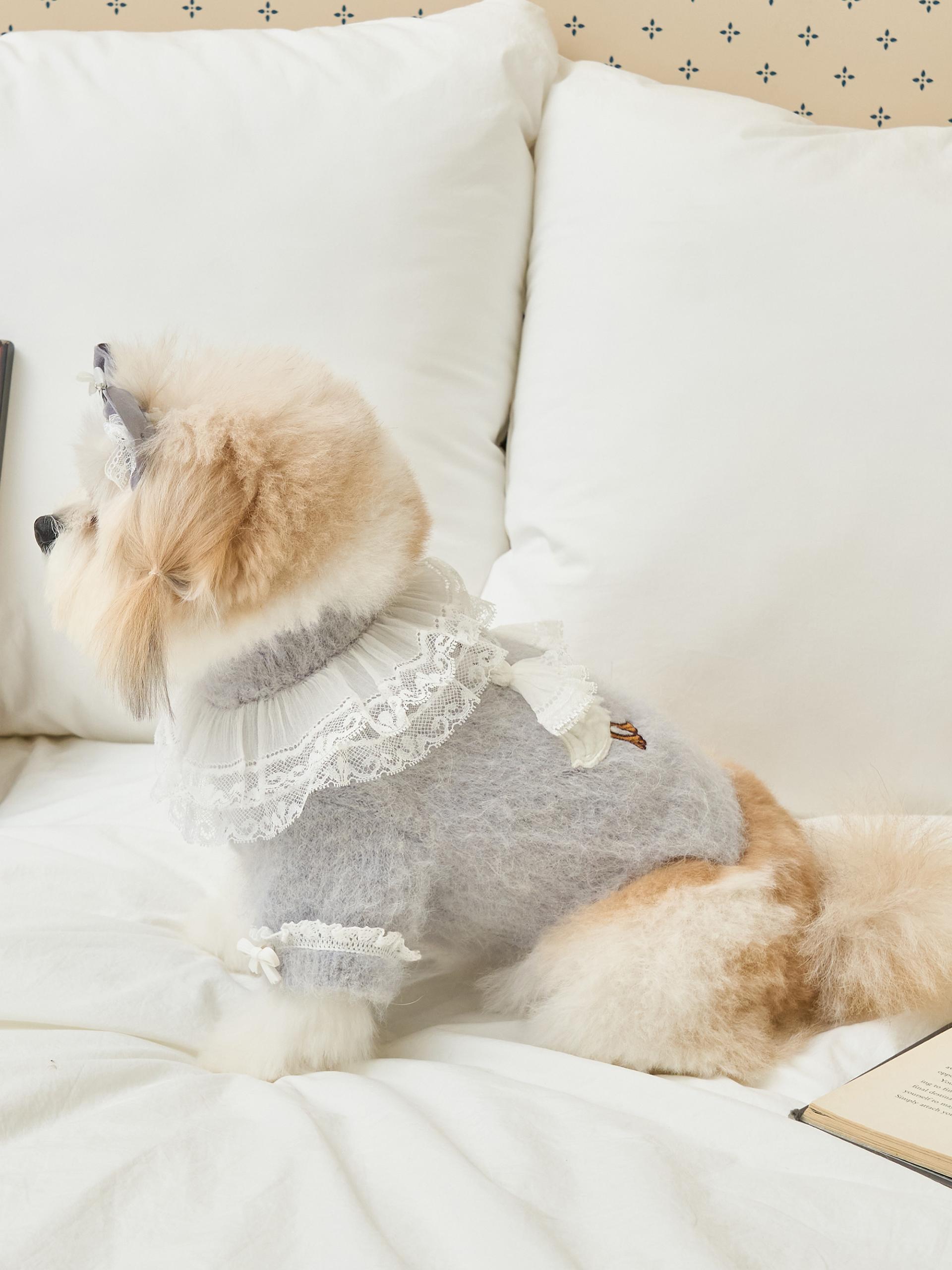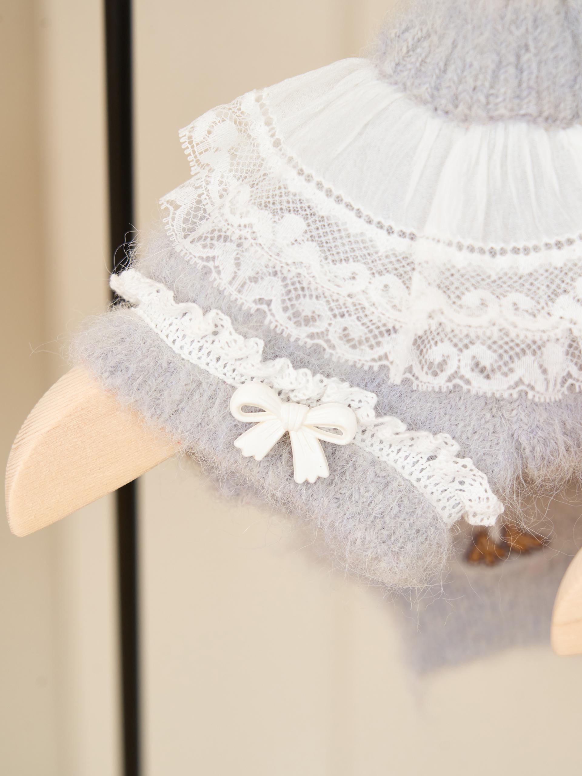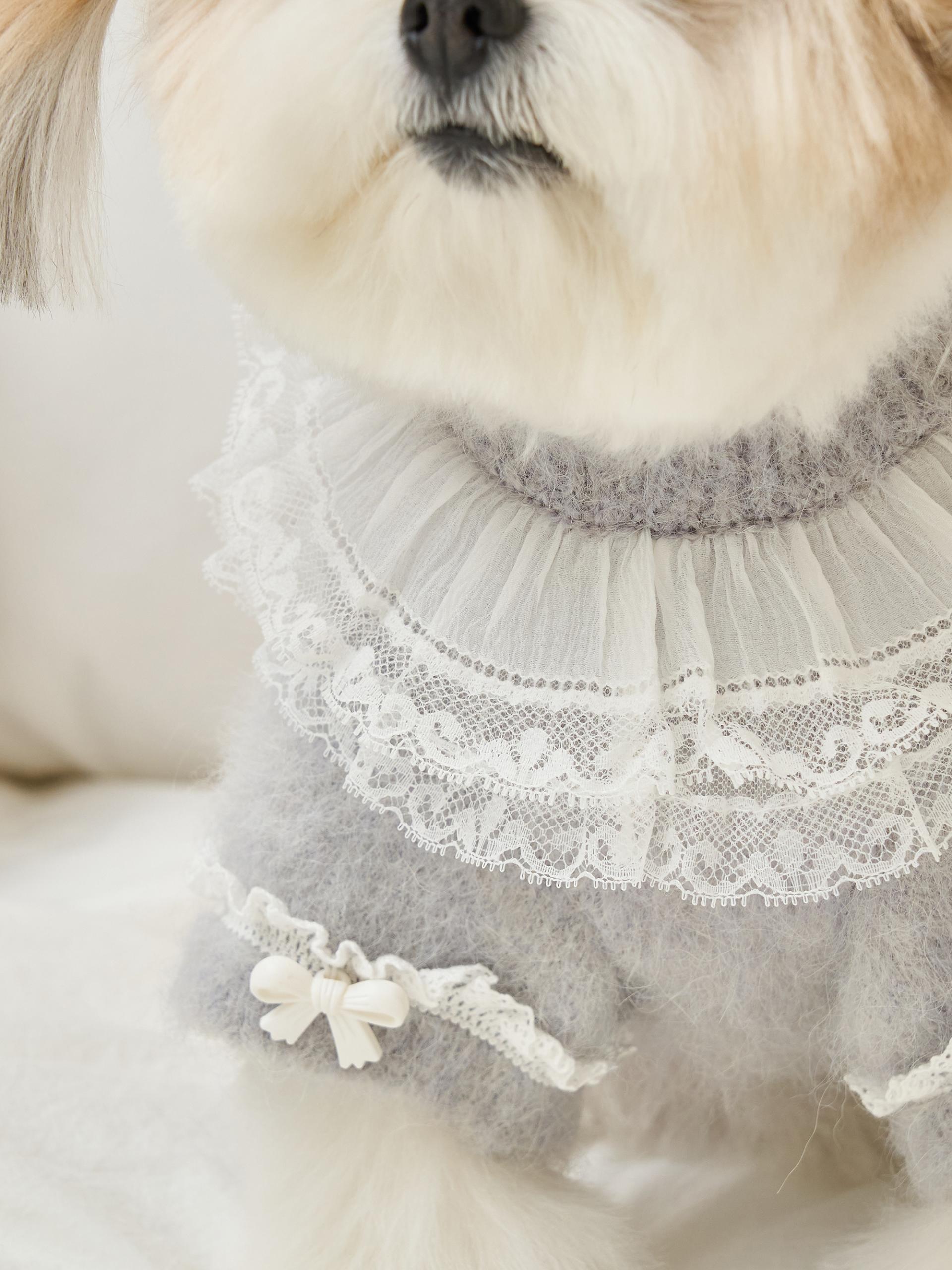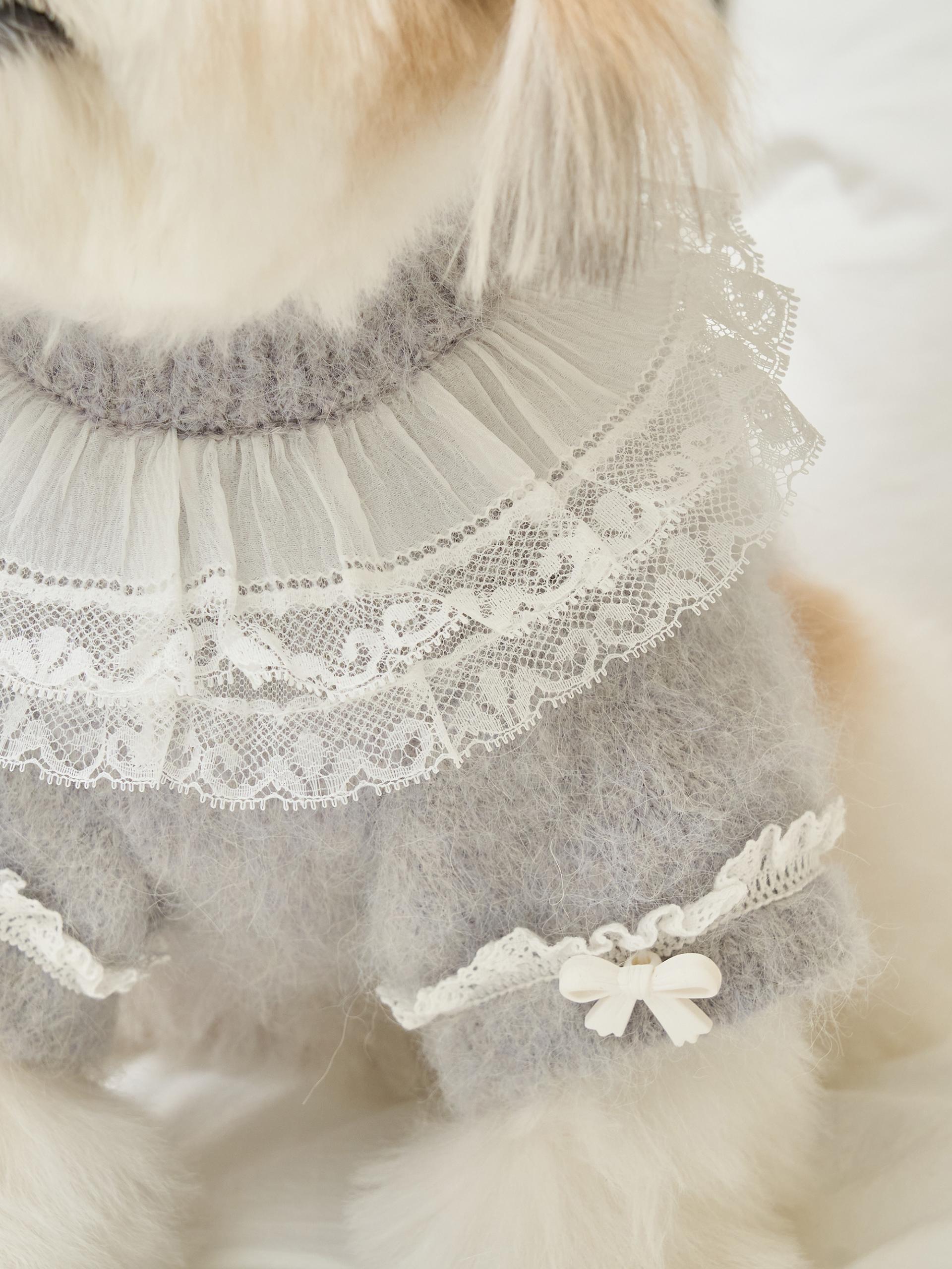 네크라인에는 섬세한 레이스 장식의 프릴 케이프가