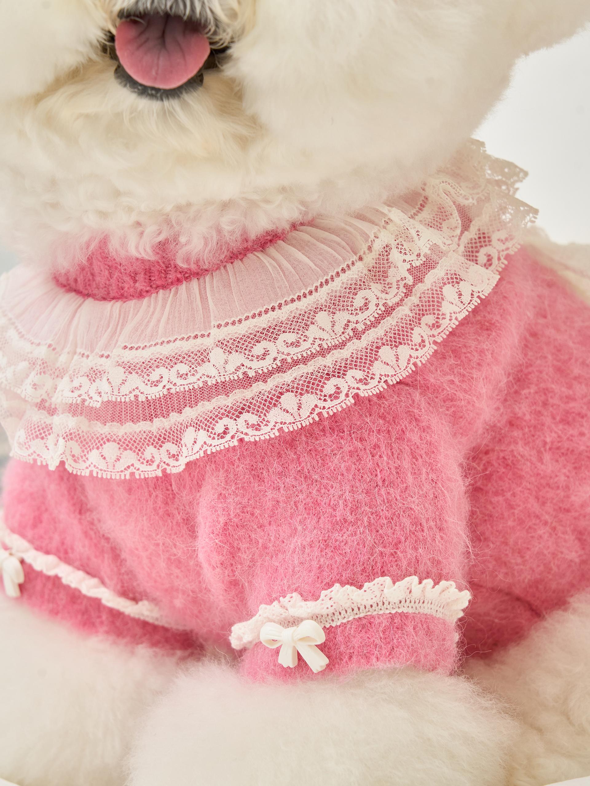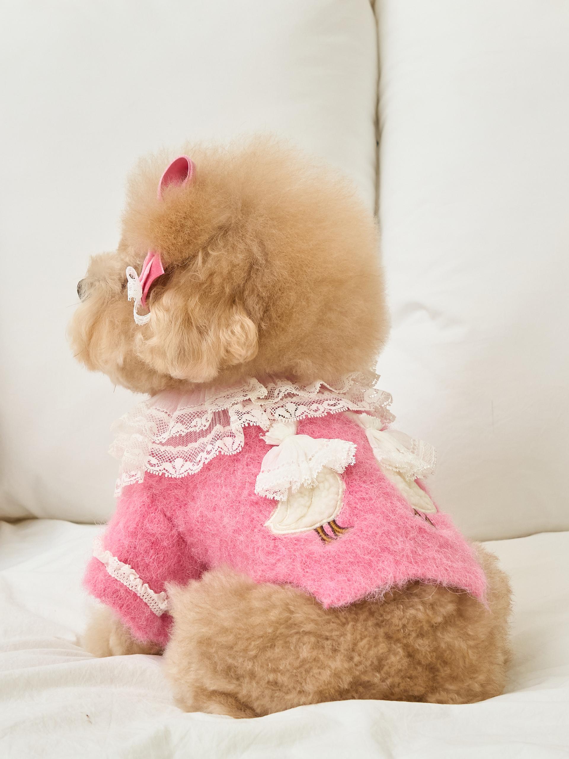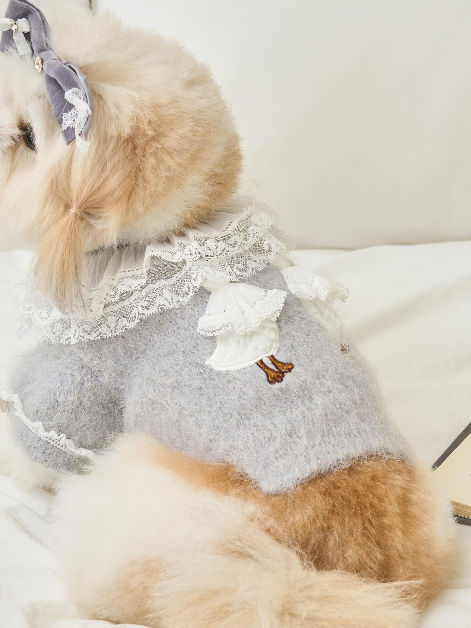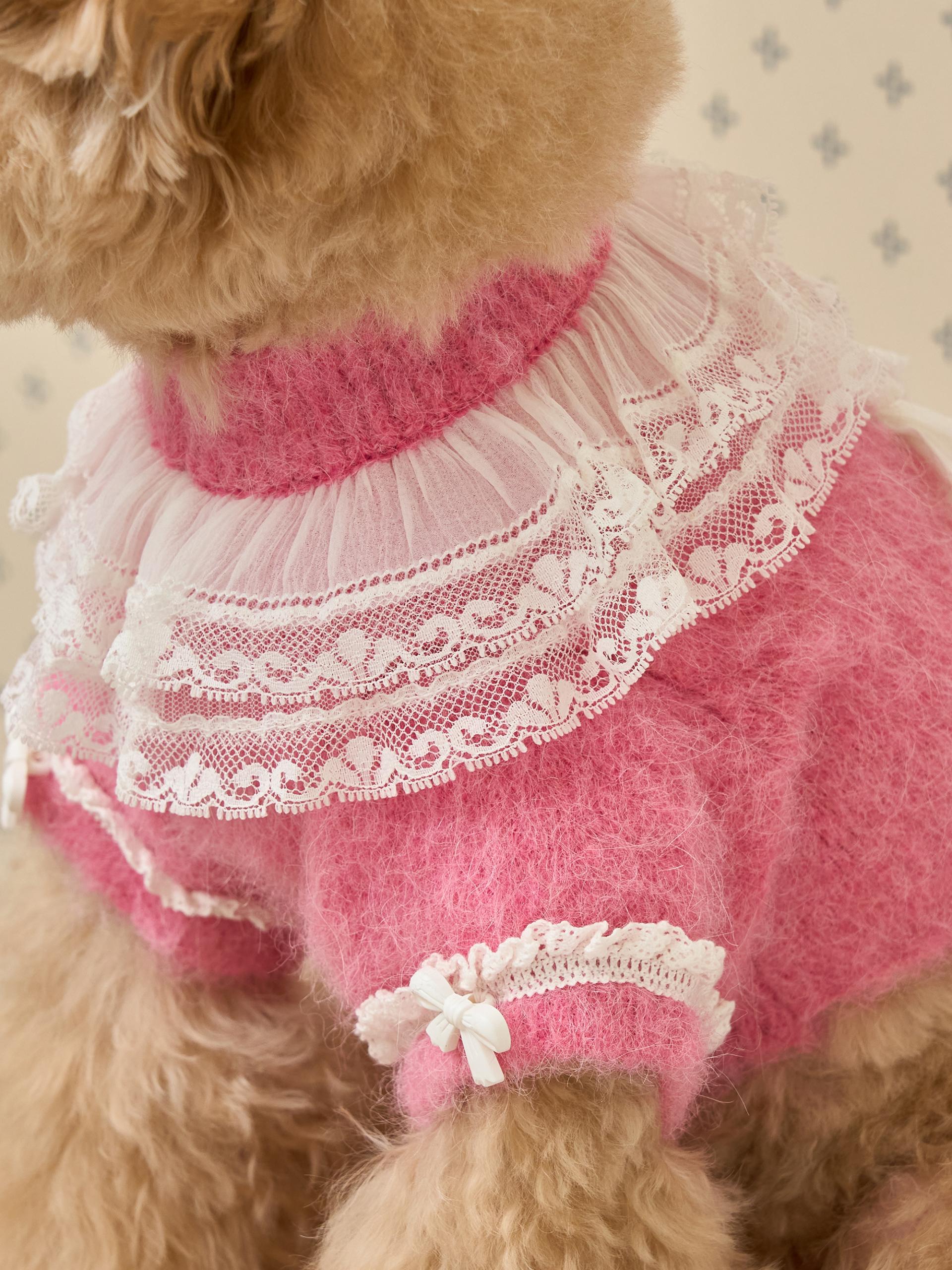 네크라인에는 섬세한 레이스 장식의 프릴 케이프가