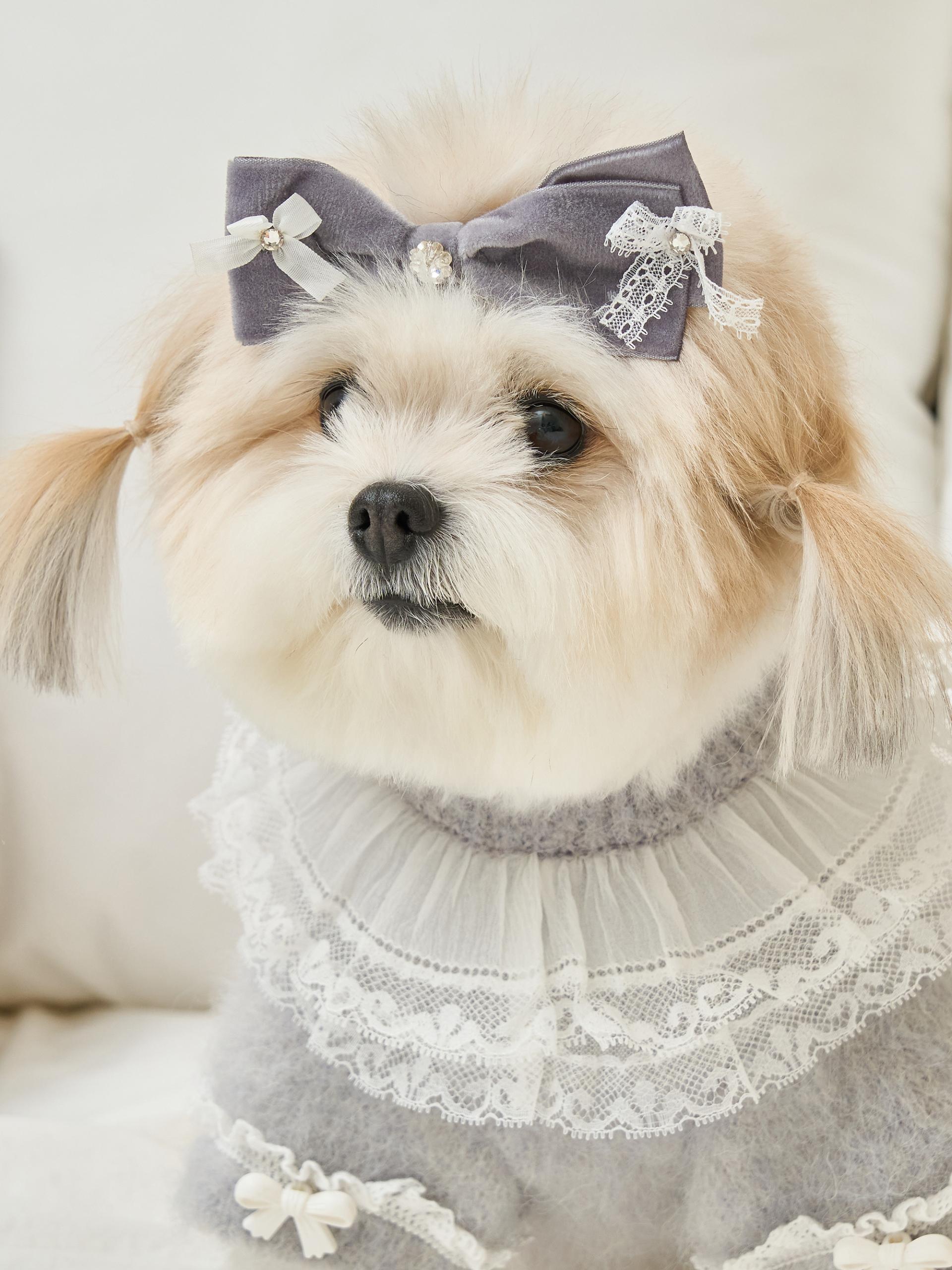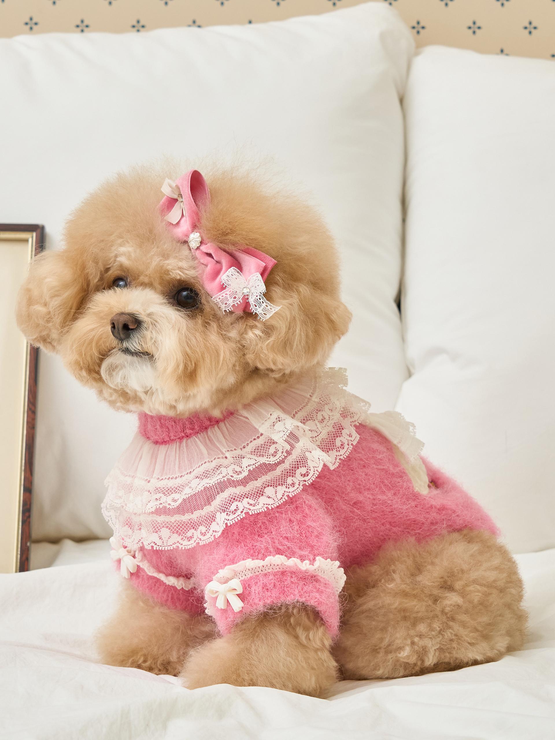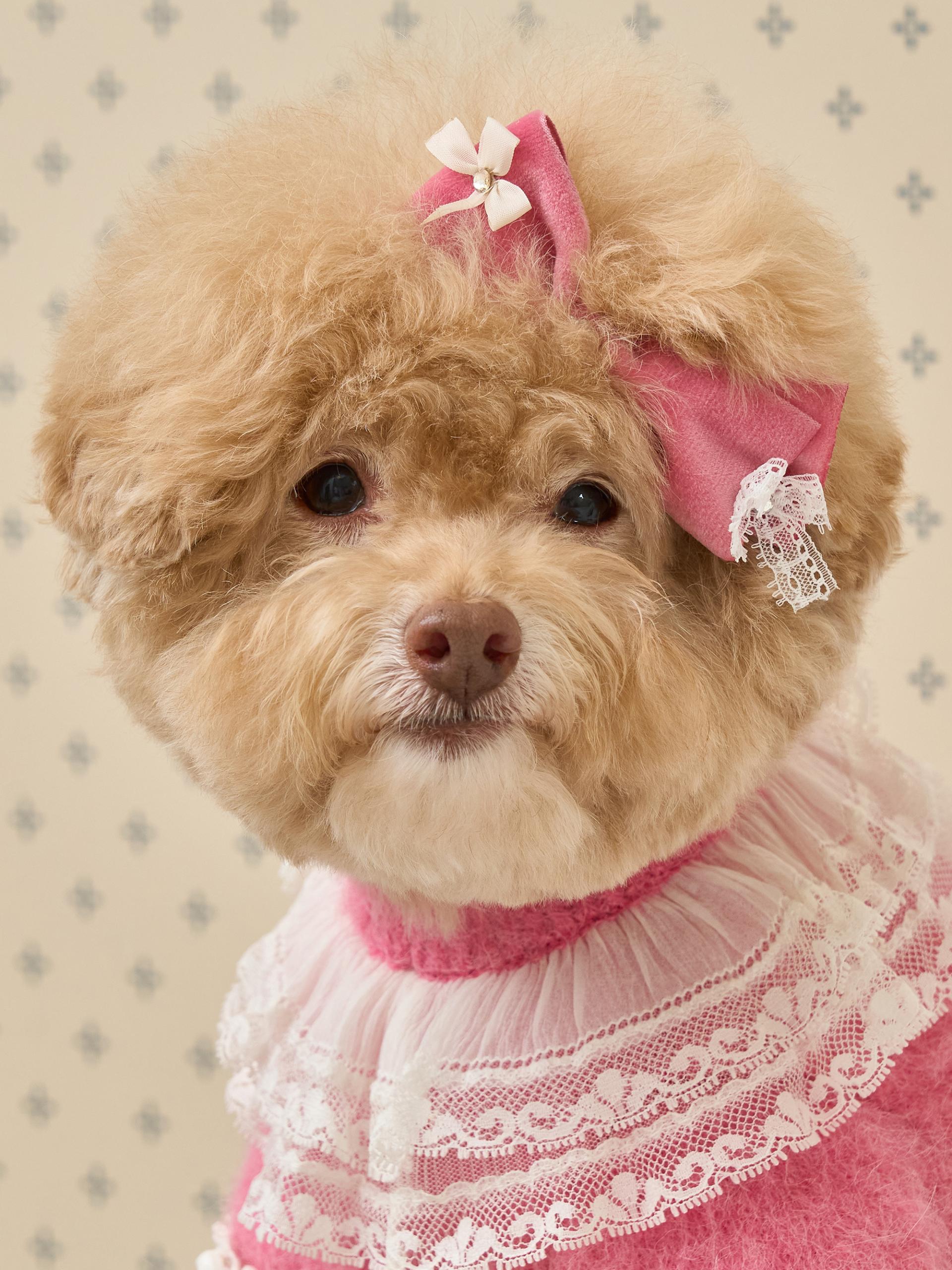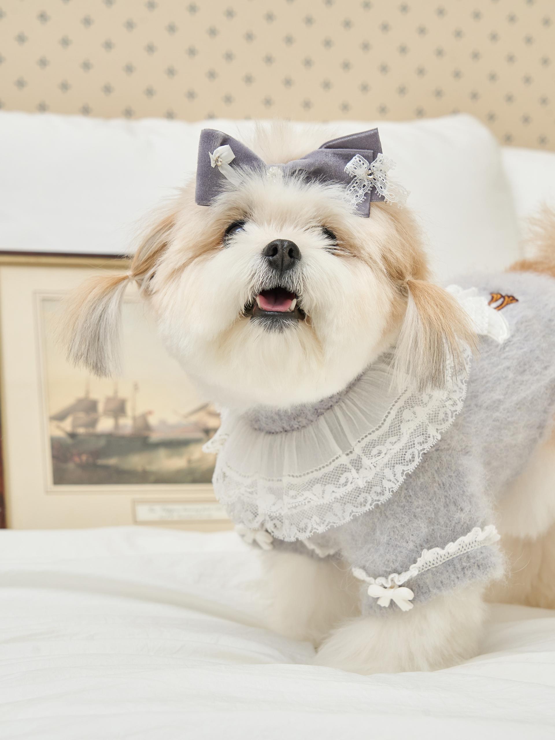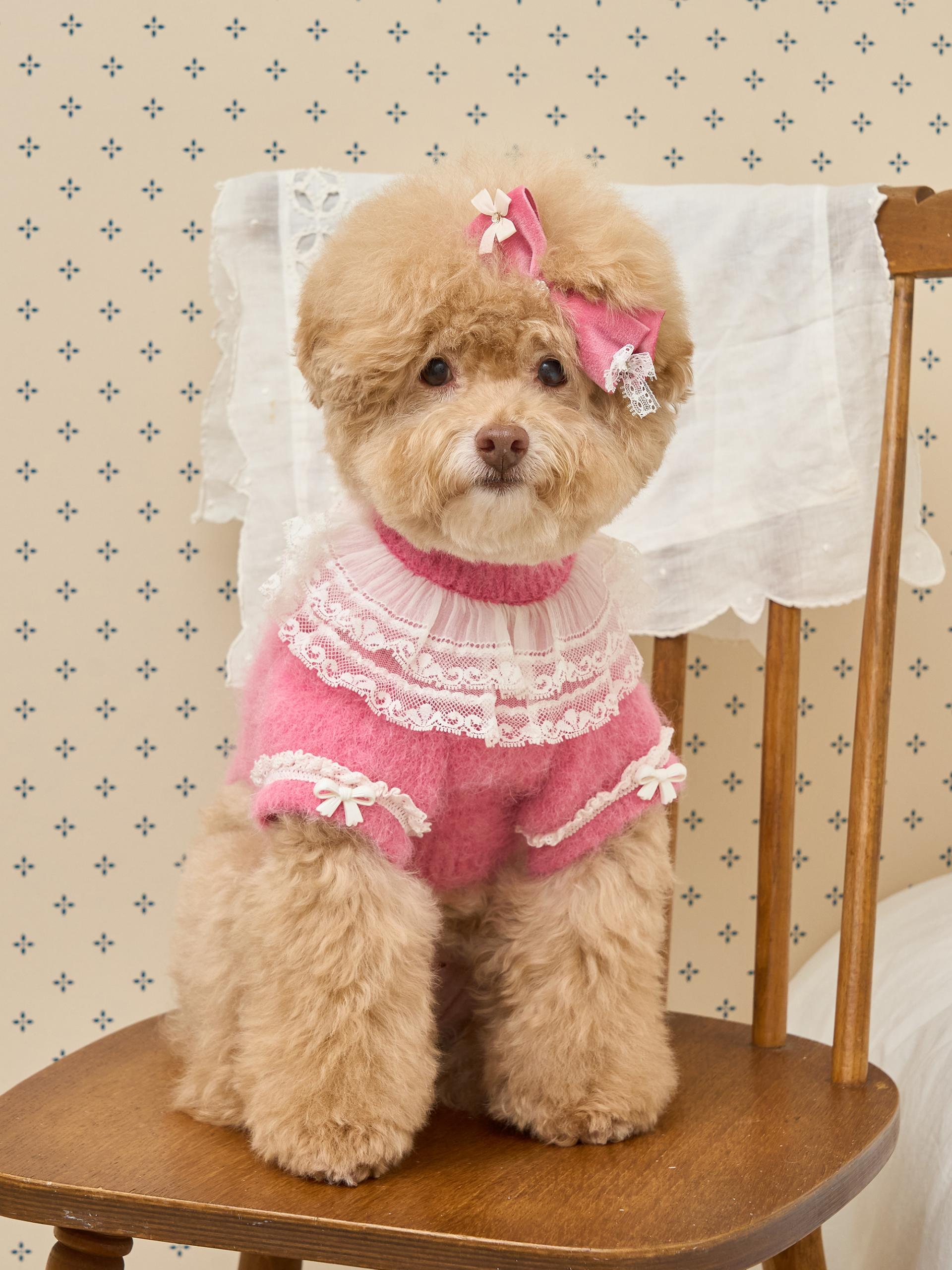 네크라인에는 섬세한 레이스 장식의 프릴 케이프가