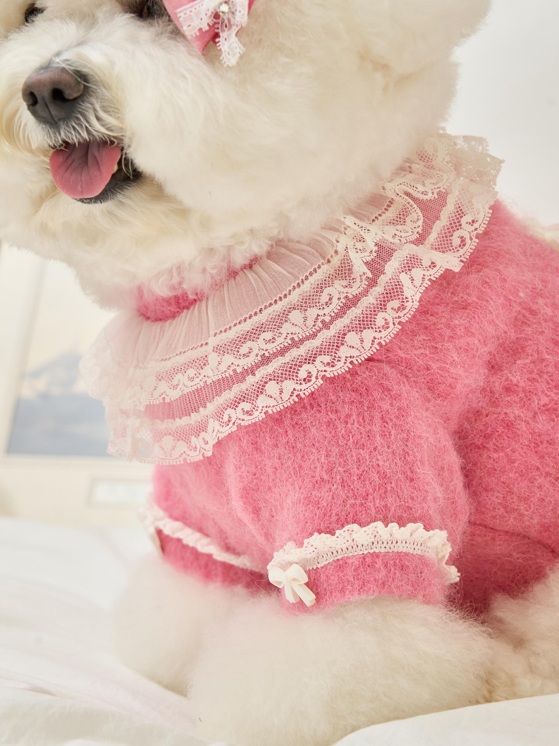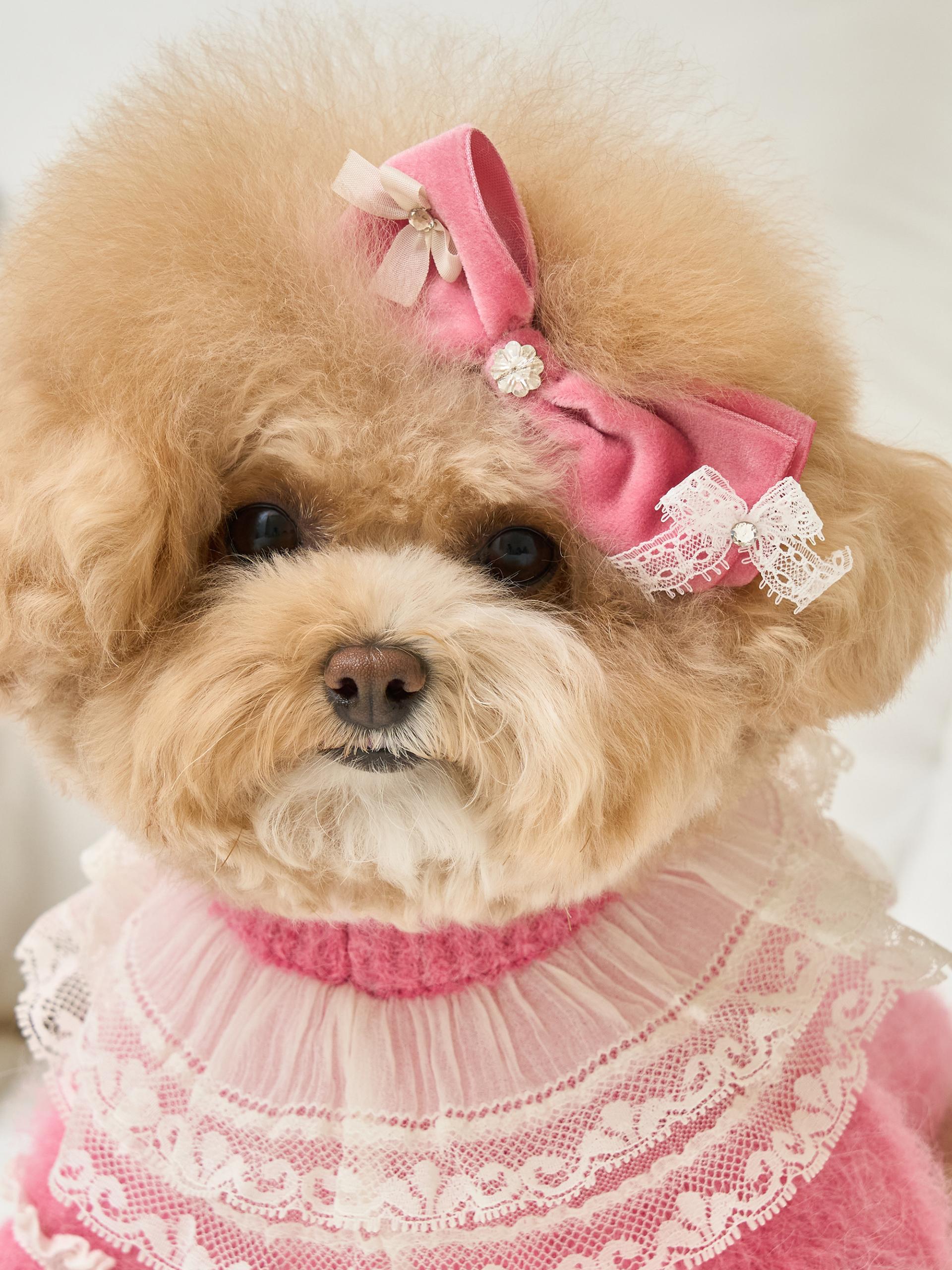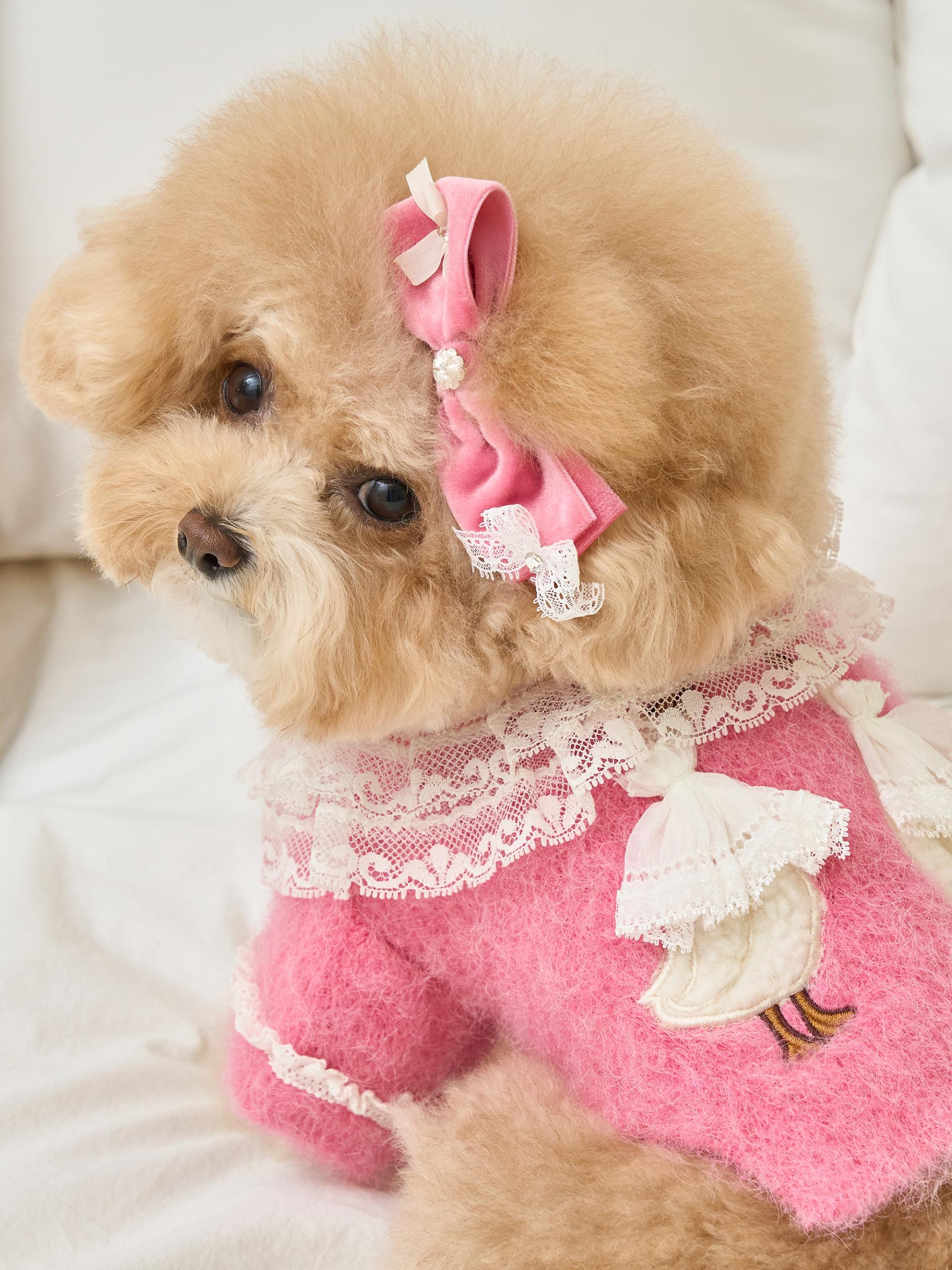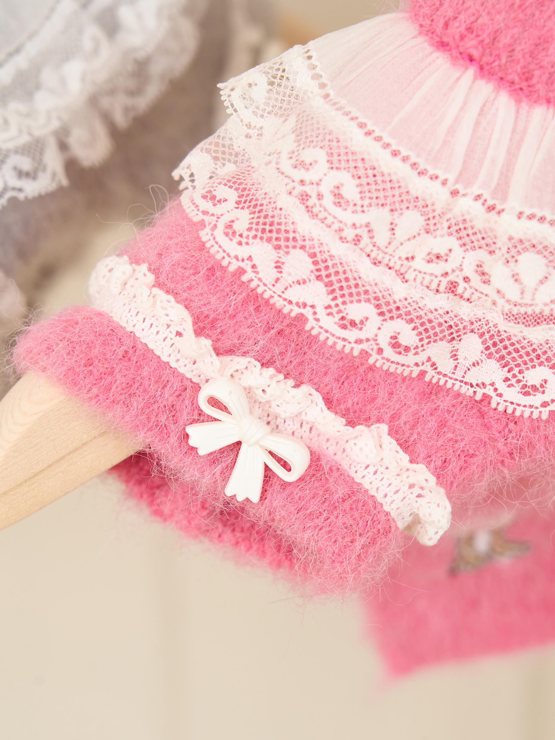 네크라인에는 섬세한 레이스 장식의 프릴 케이프가