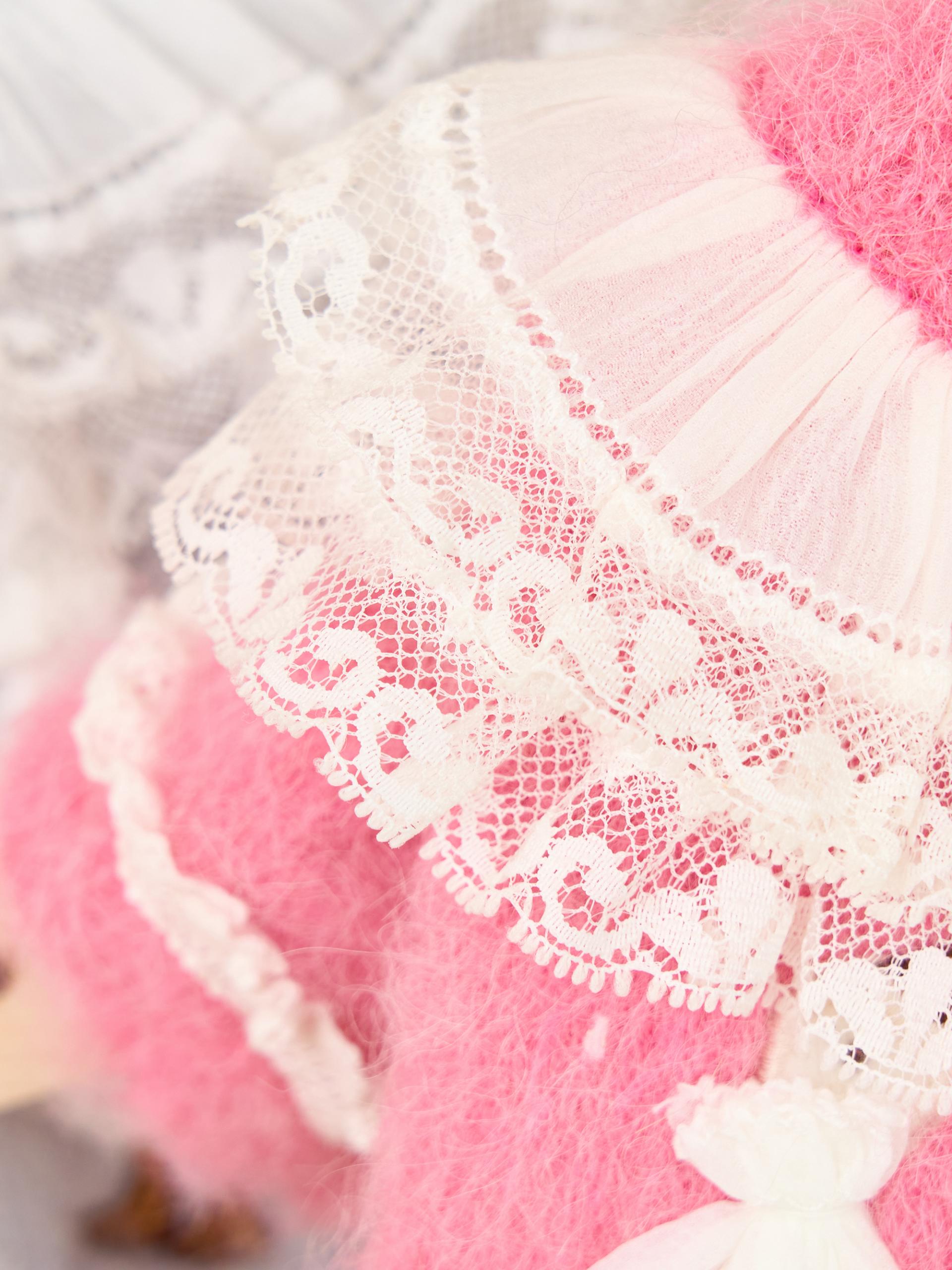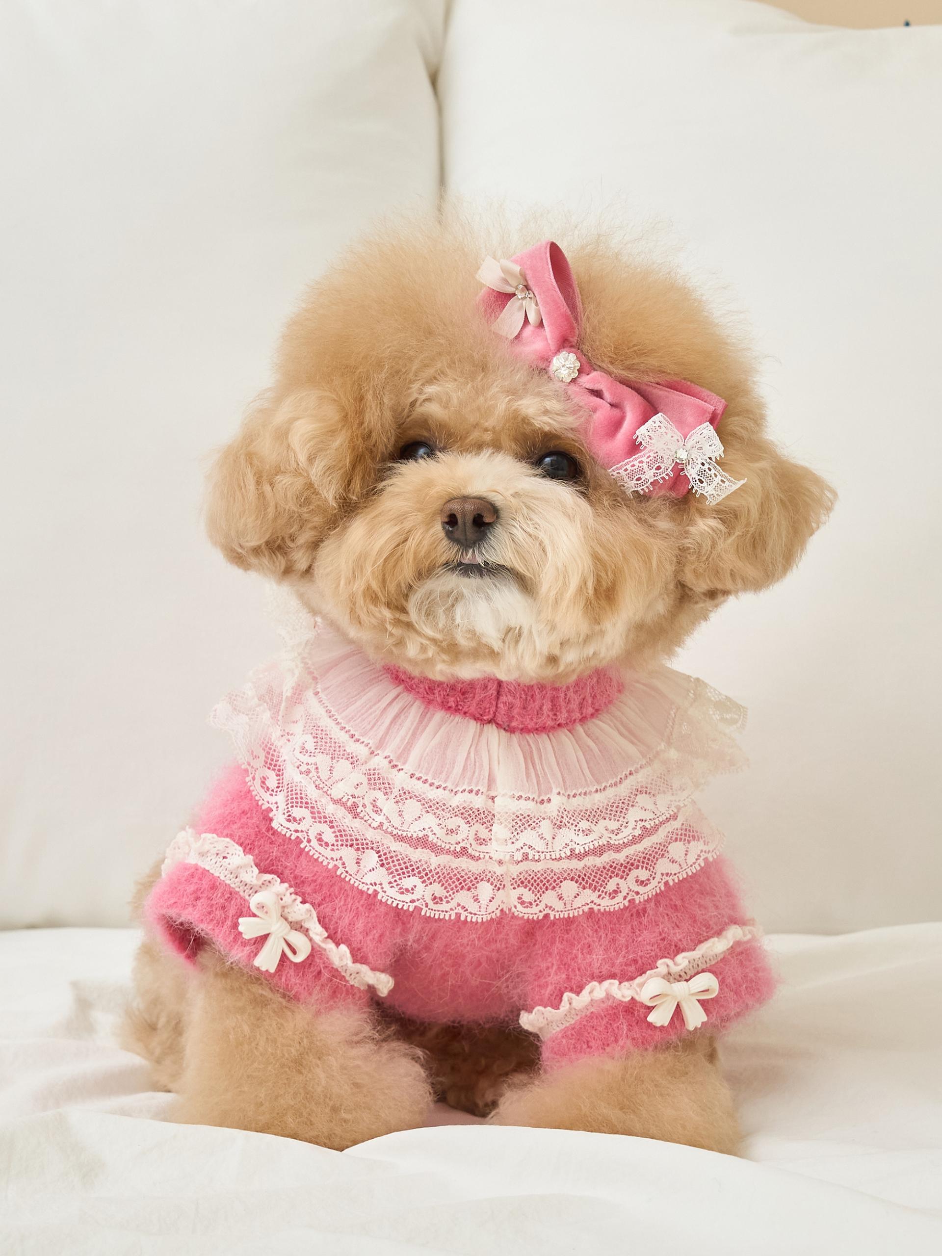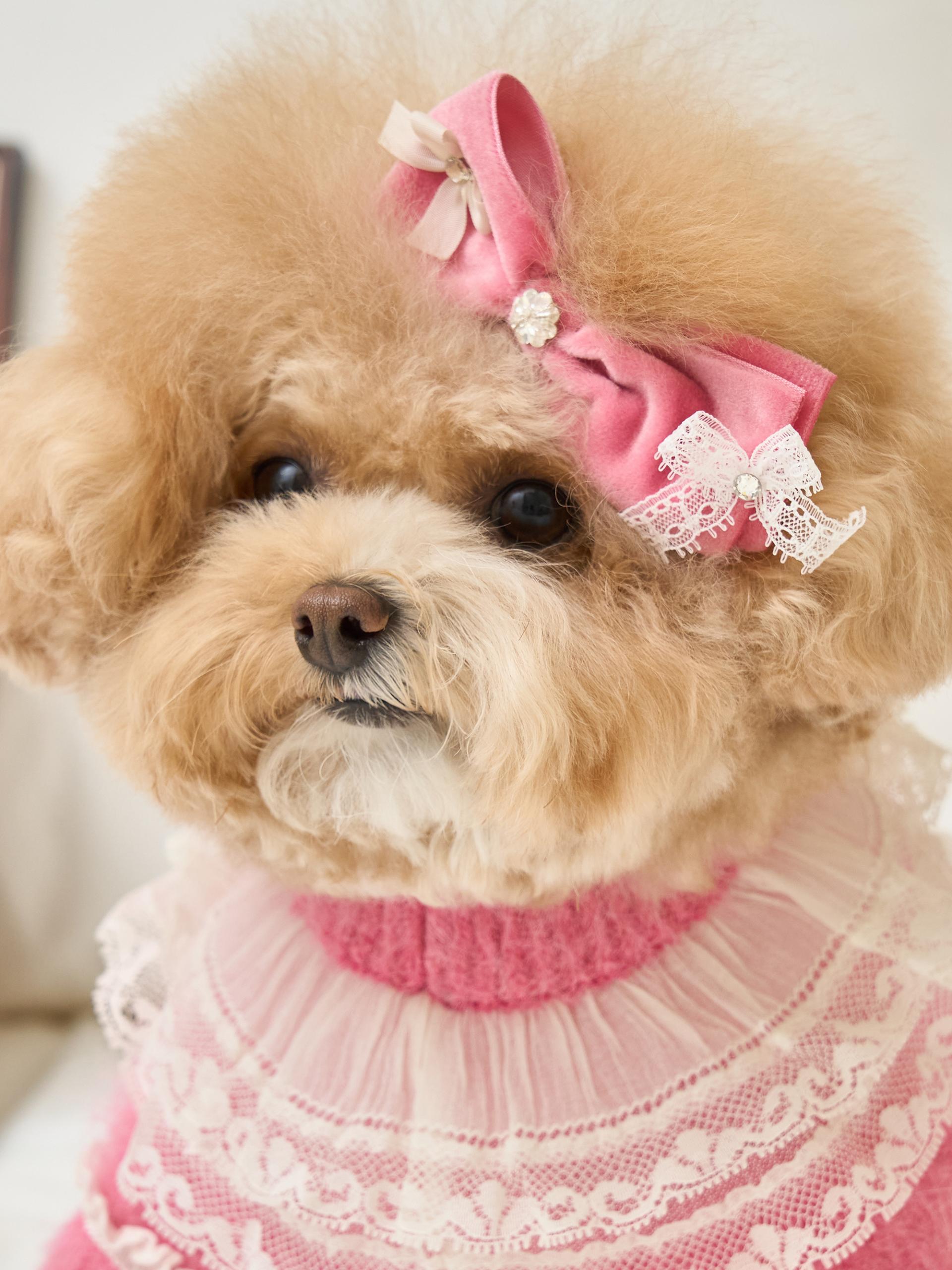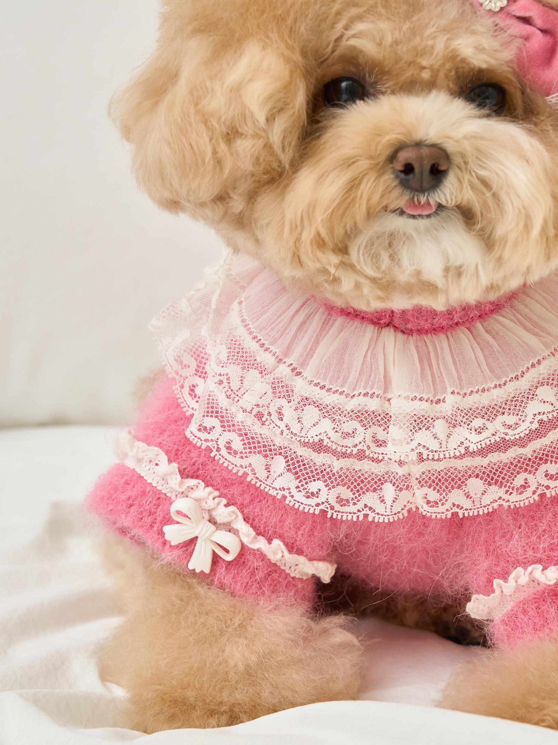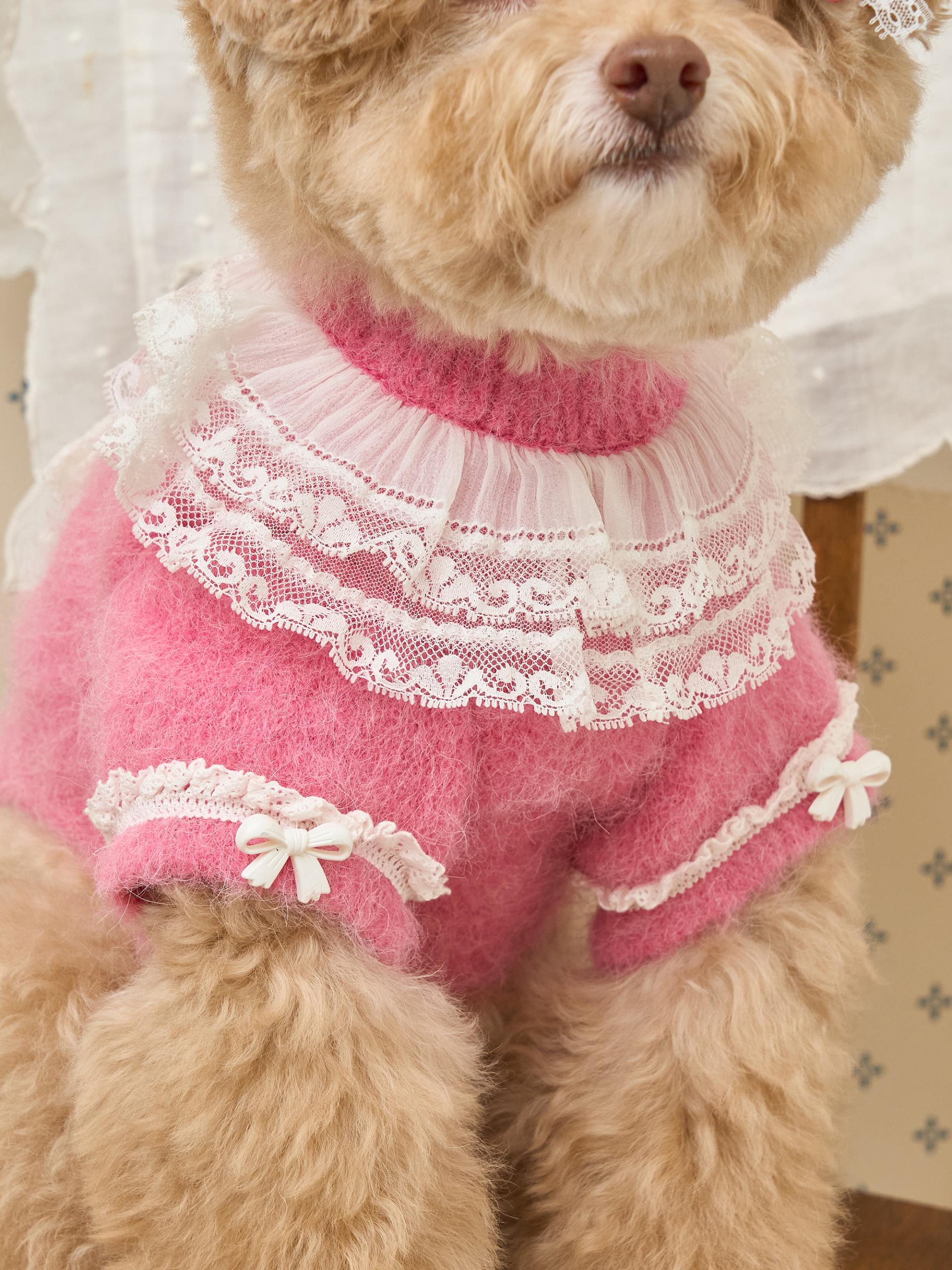 네크라인에는 섬세한 레이스 장식의 프릴 케이프가