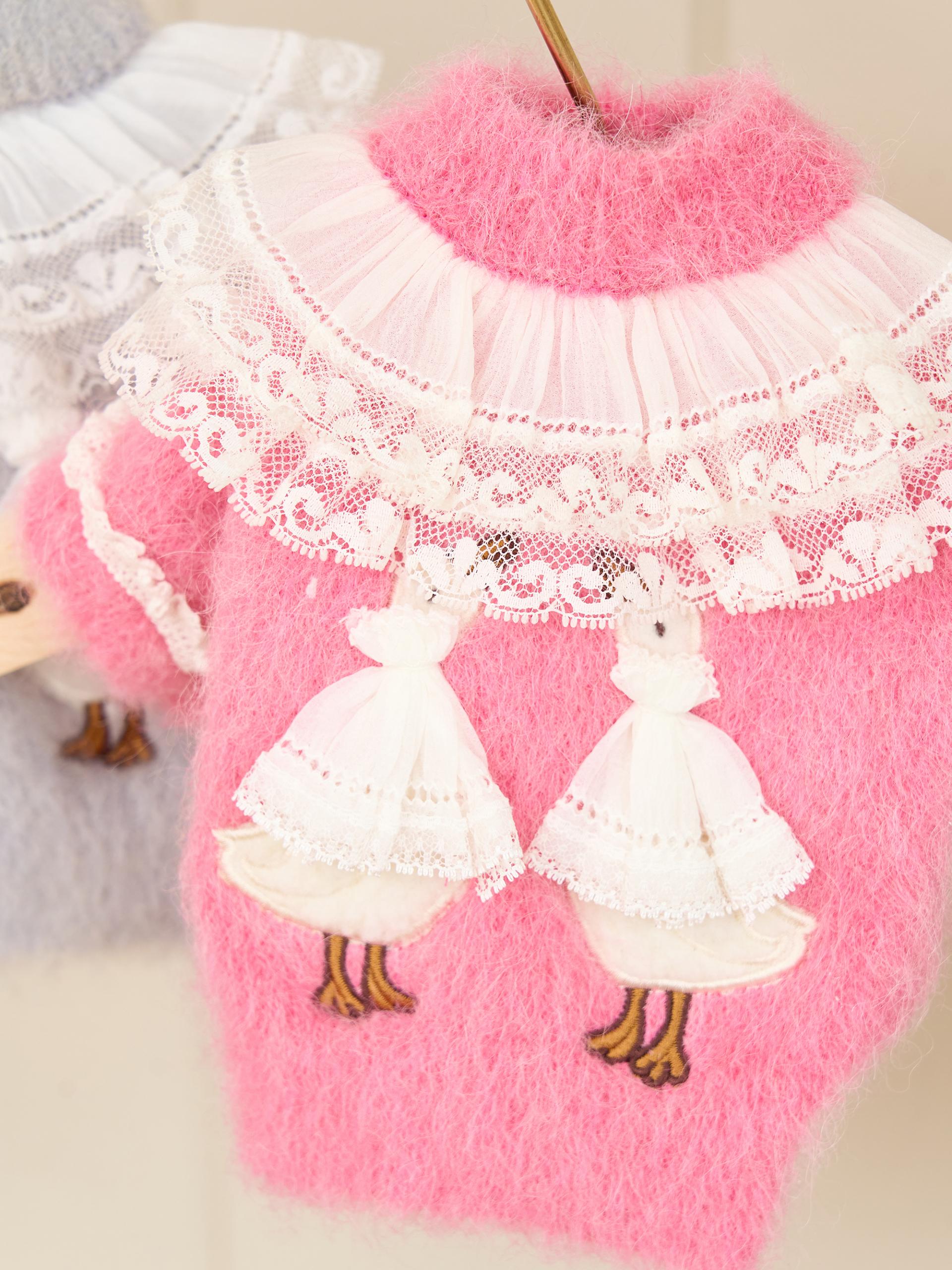 등판에는 사랑스러운 거위 아플리케 자수가 더해져