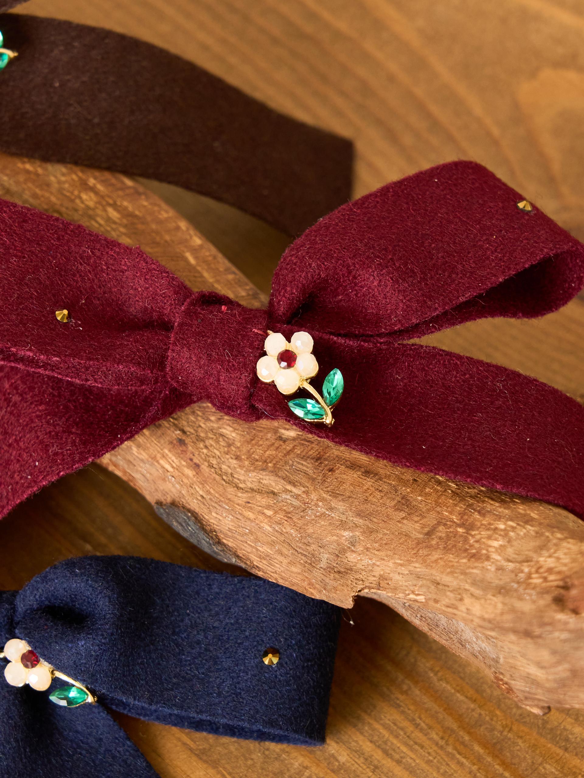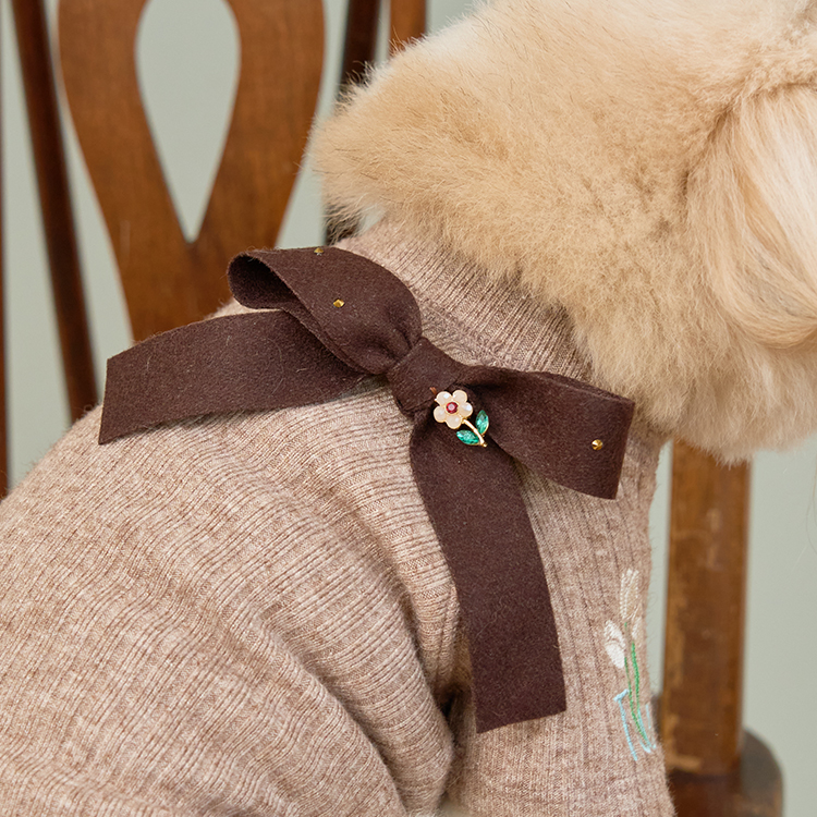 리본의 포인트를 작은 브로치로 담아낸