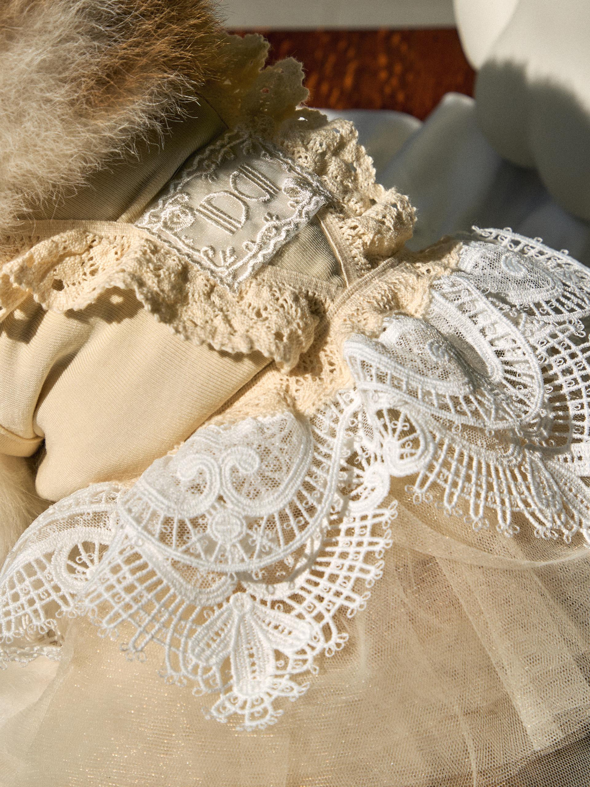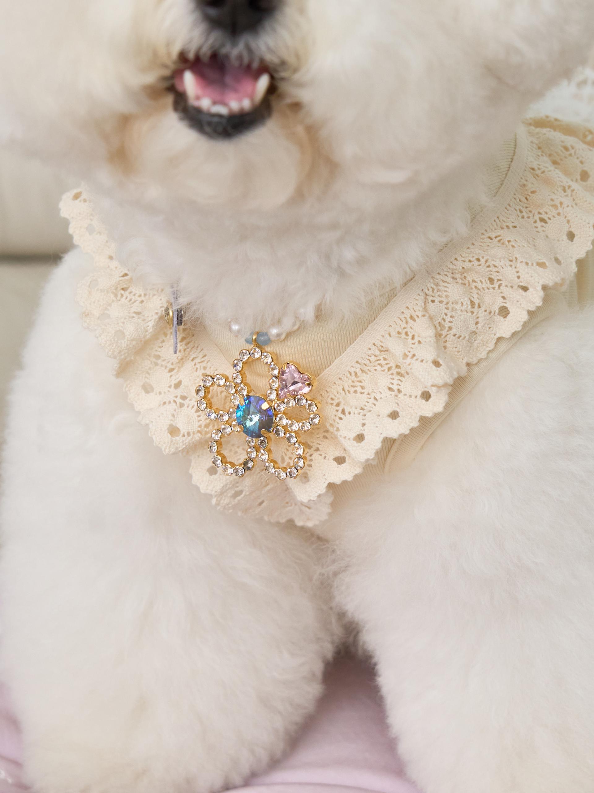 가슴 중앙에는 로고 자수 레이스 엠블럼을 더해
