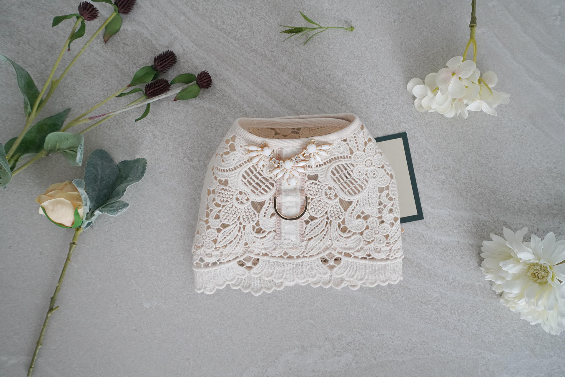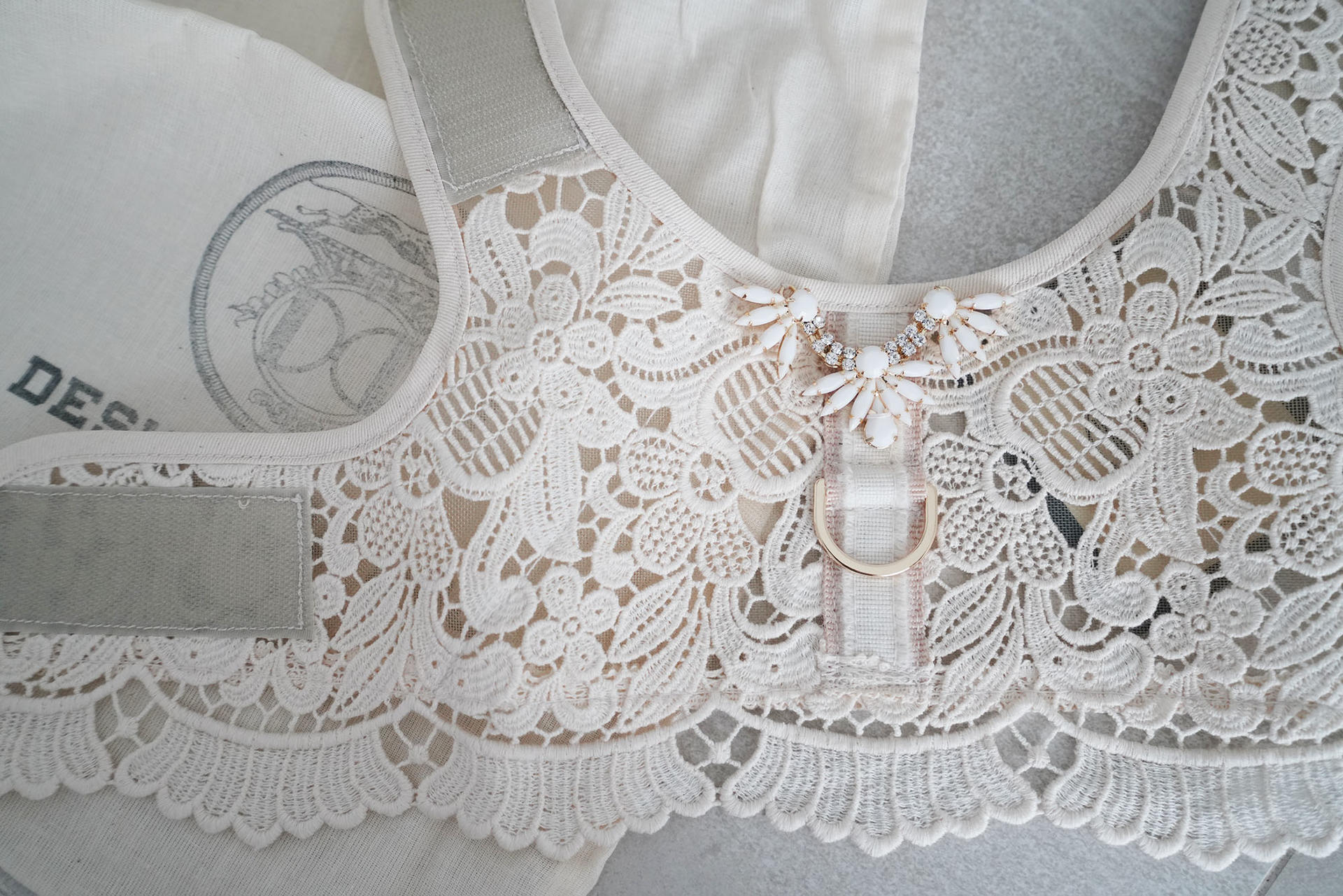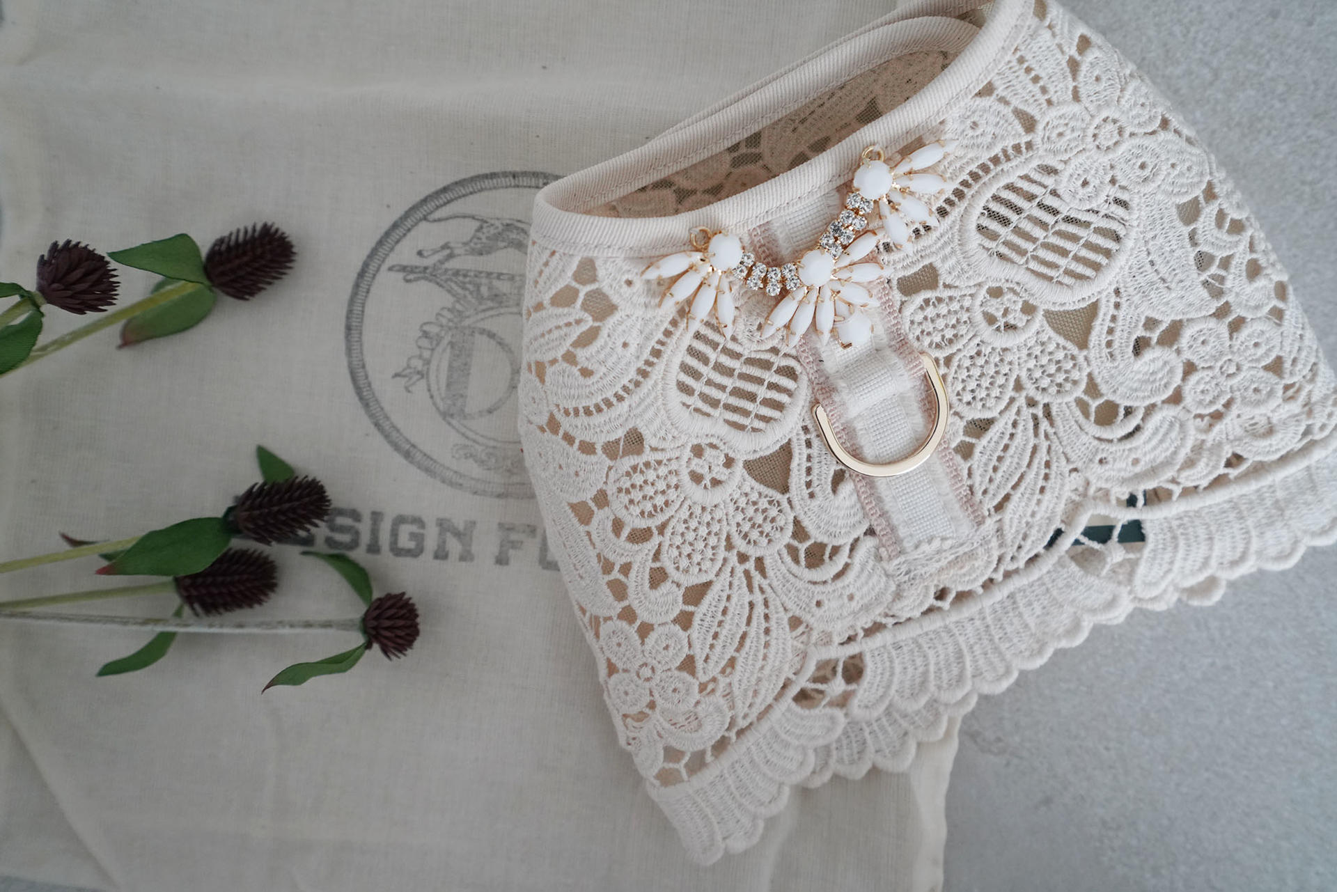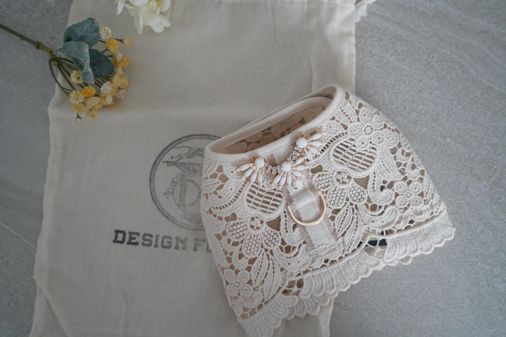 망사위에 레이스를 씌워 만들어 사계절 내내 착용 가능한 하네스로