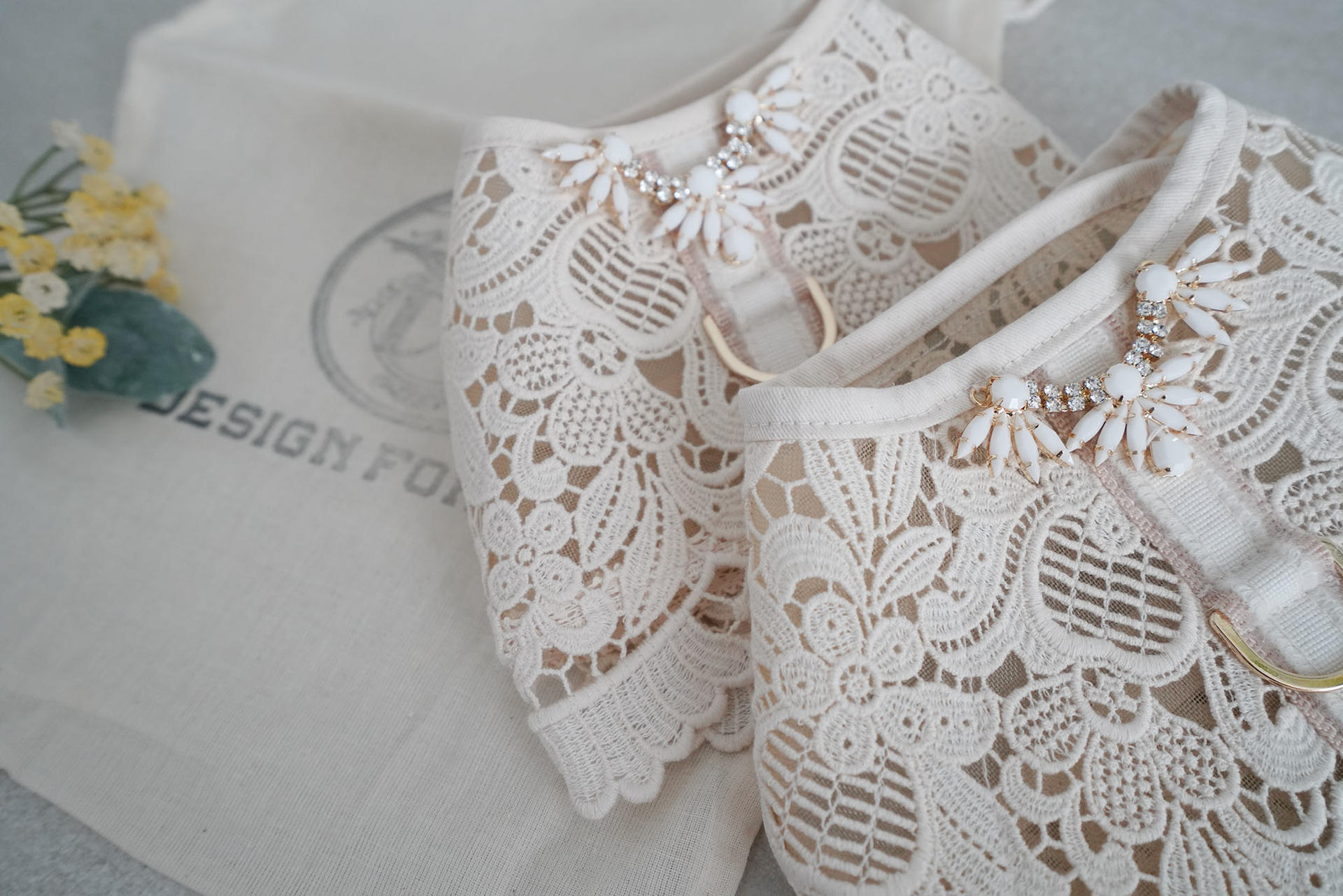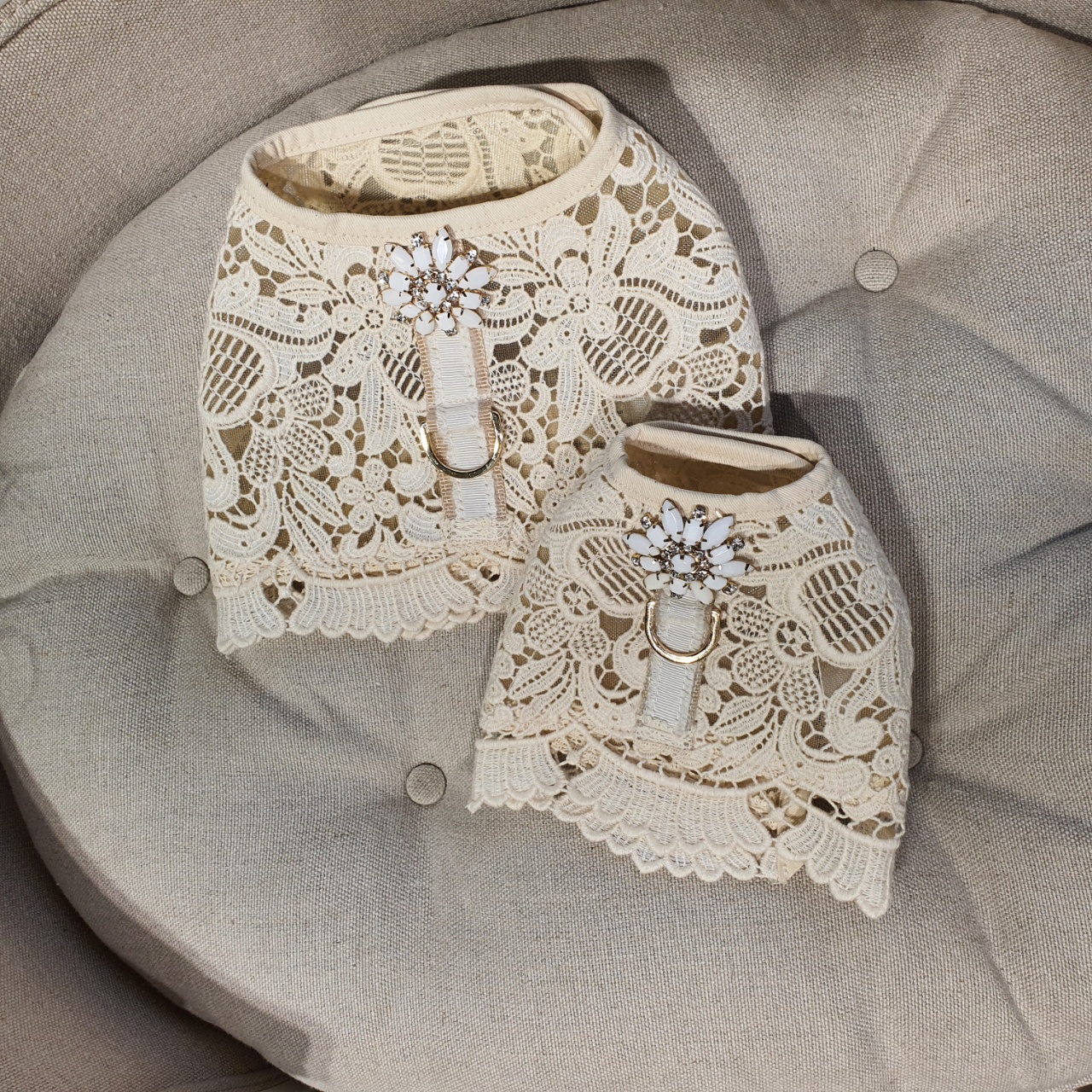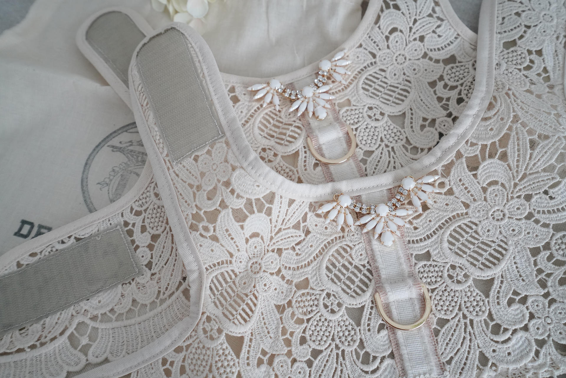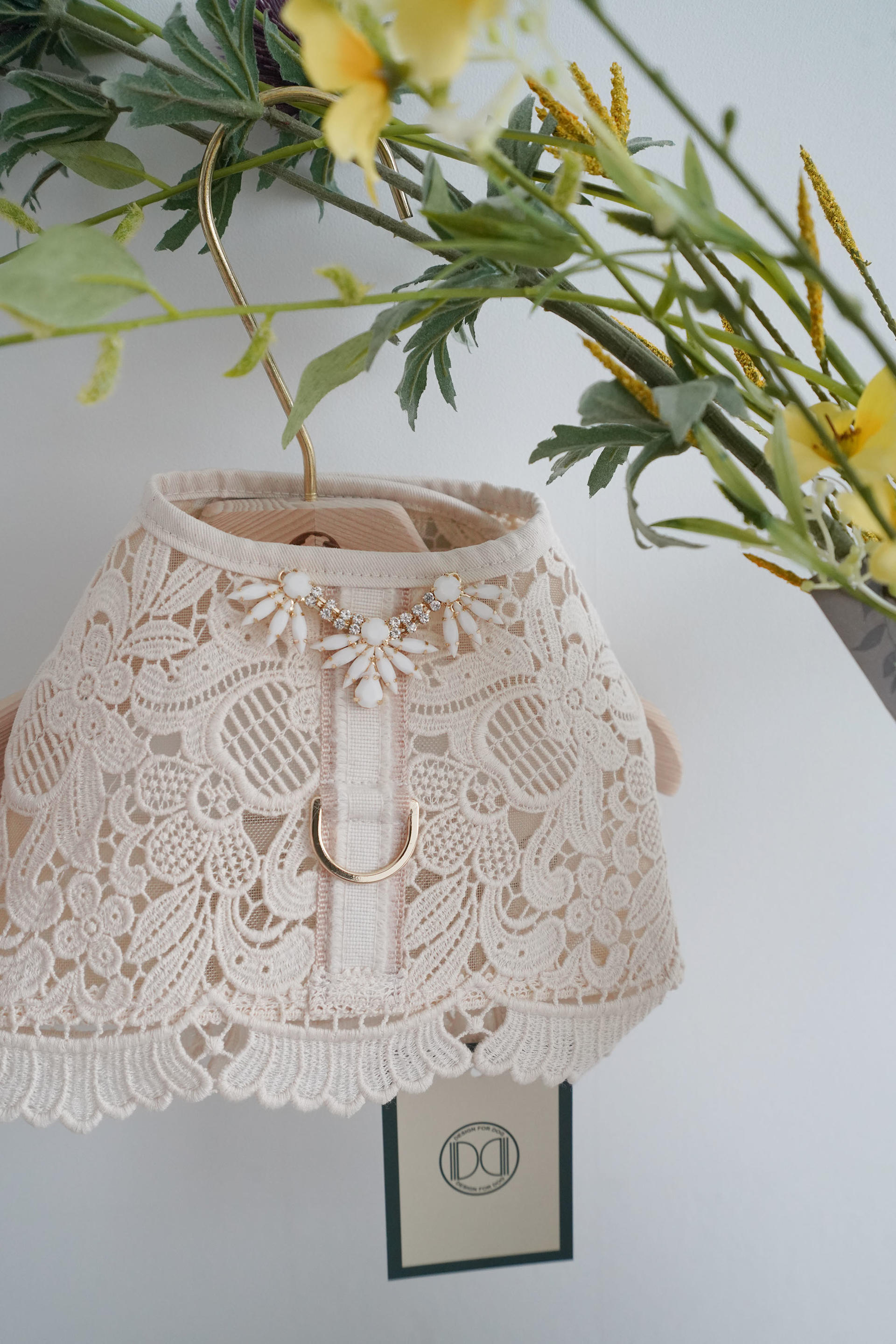 망사위에 레이스를 씌워 만들어 사계절 내내 착용 가능한 하네스로