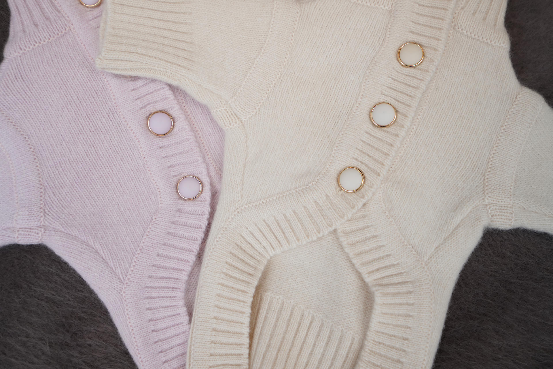 활동성을 고려해 편안하고 부드러운 착용감을 선사하는 디디 캐시미어 가디건은 핑크,베이지 두 가지 컬러로 제작되었습니다.