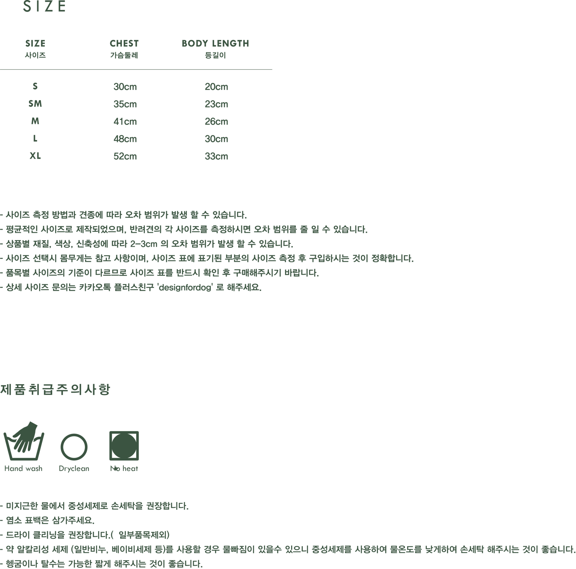 - 상품의 AS는 각 제품별로 상이 하므로 MY페이지 > 1:1문의 게시판 또는 카카오톡 플러스친구 designfordog 채널을 통해 안내받으실 수 있습니다.