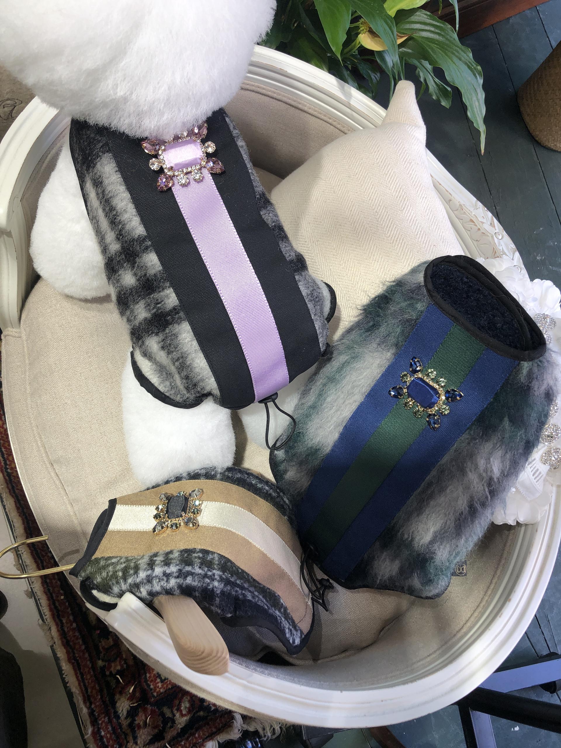 중앙에 들어간 젬스톤과 도톰한 체크원단이 우아함과 유니크함을 더해주는