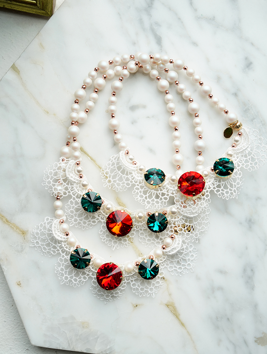무광 화이트펄 진주와 레드 그린 크리스탈 모두 #스와로브스키 제품으로 제작되었어요.👍