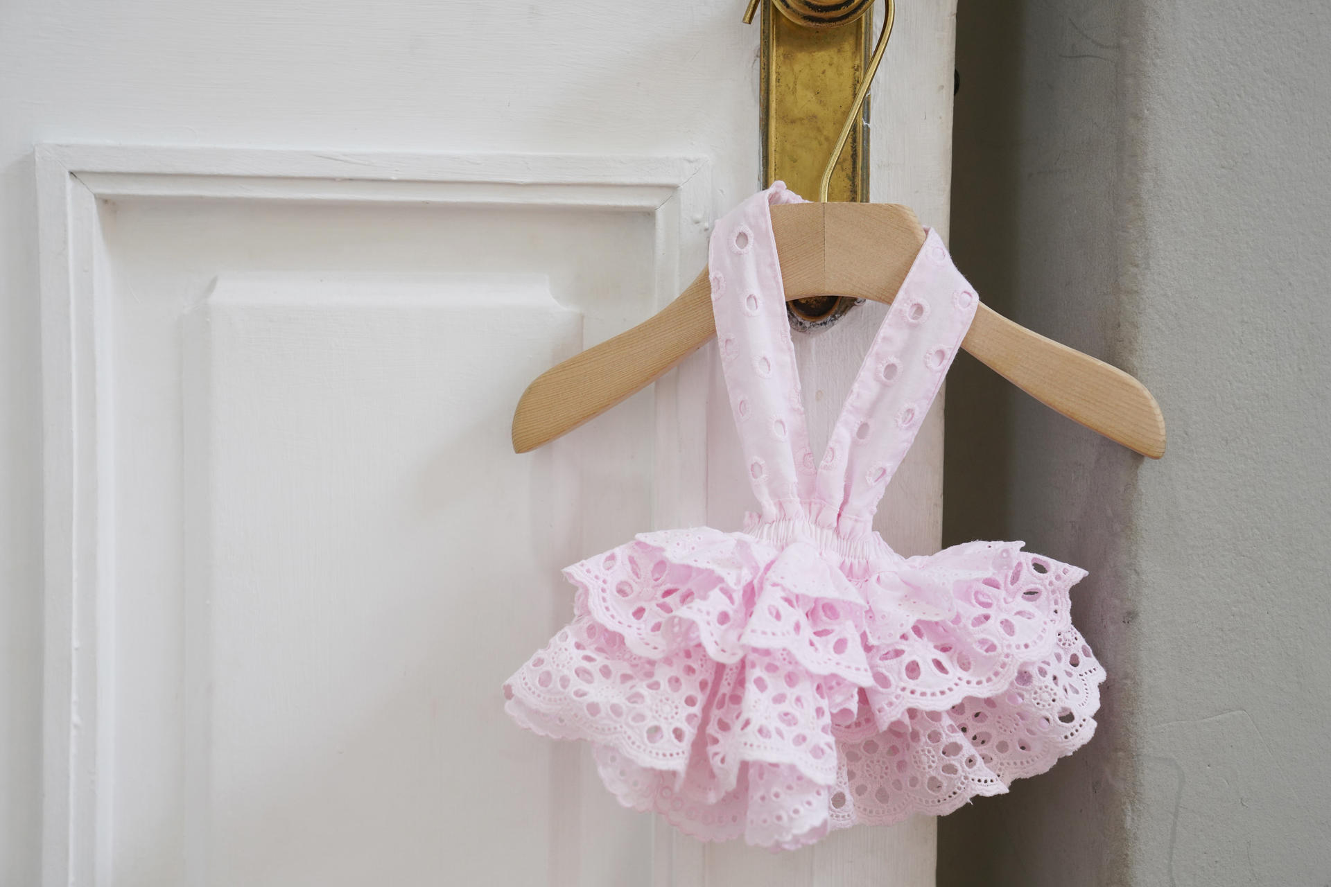 펀칭 레이스와 레이어링 된 풍성한 실루엣의 스커트입니다.
