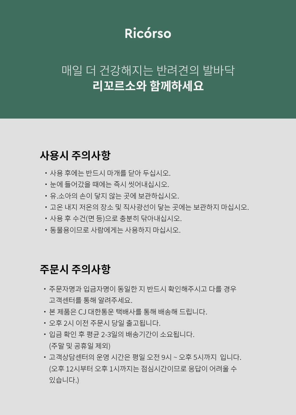 - 상품의 AS는 각 제품별로 상이 하므로 MY페이지 > 1:1문의 게시판 또는 카카오톡 플러스친구 designfordog 채널을 통해 안내받으실 수 있습니다.