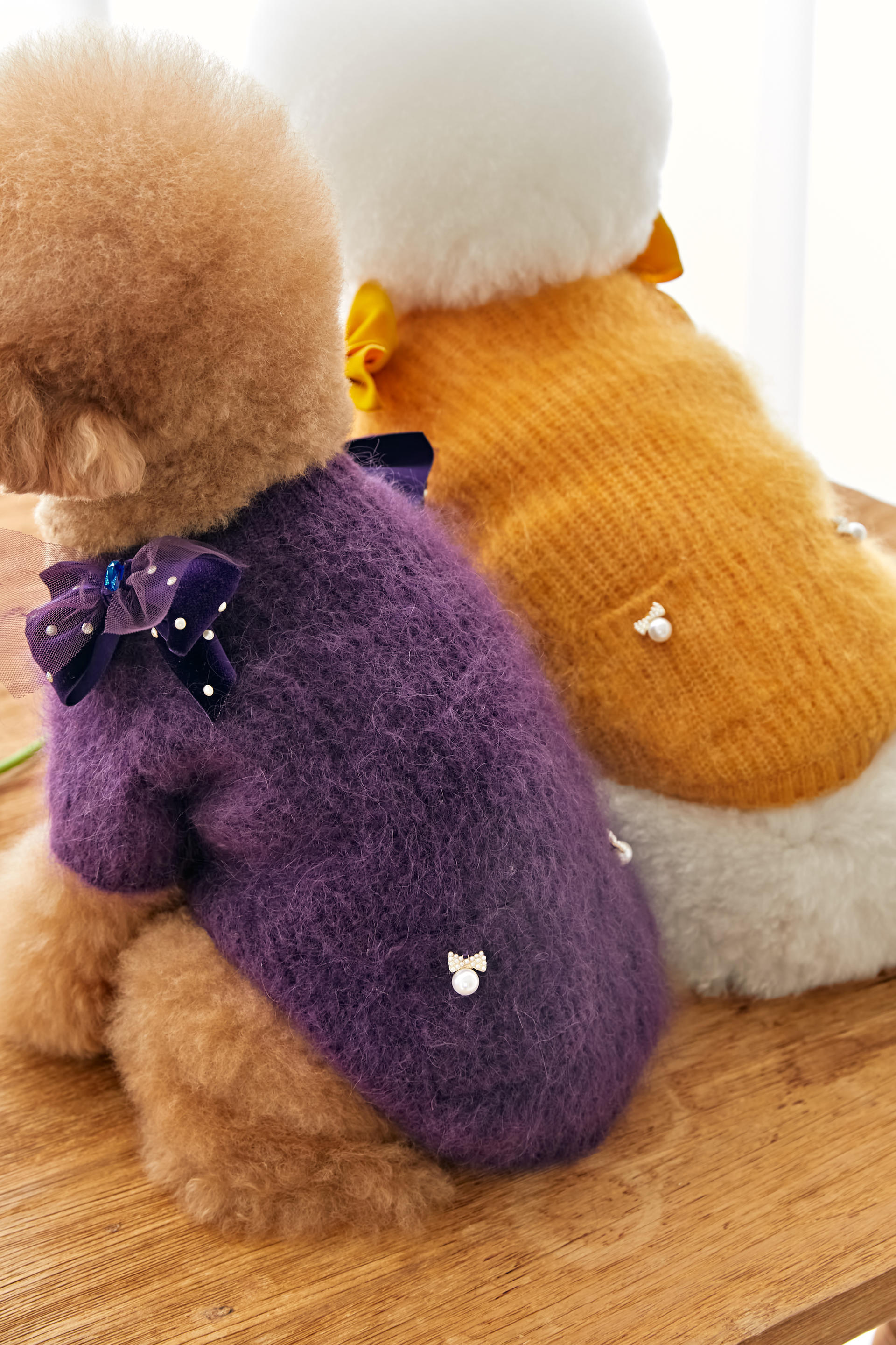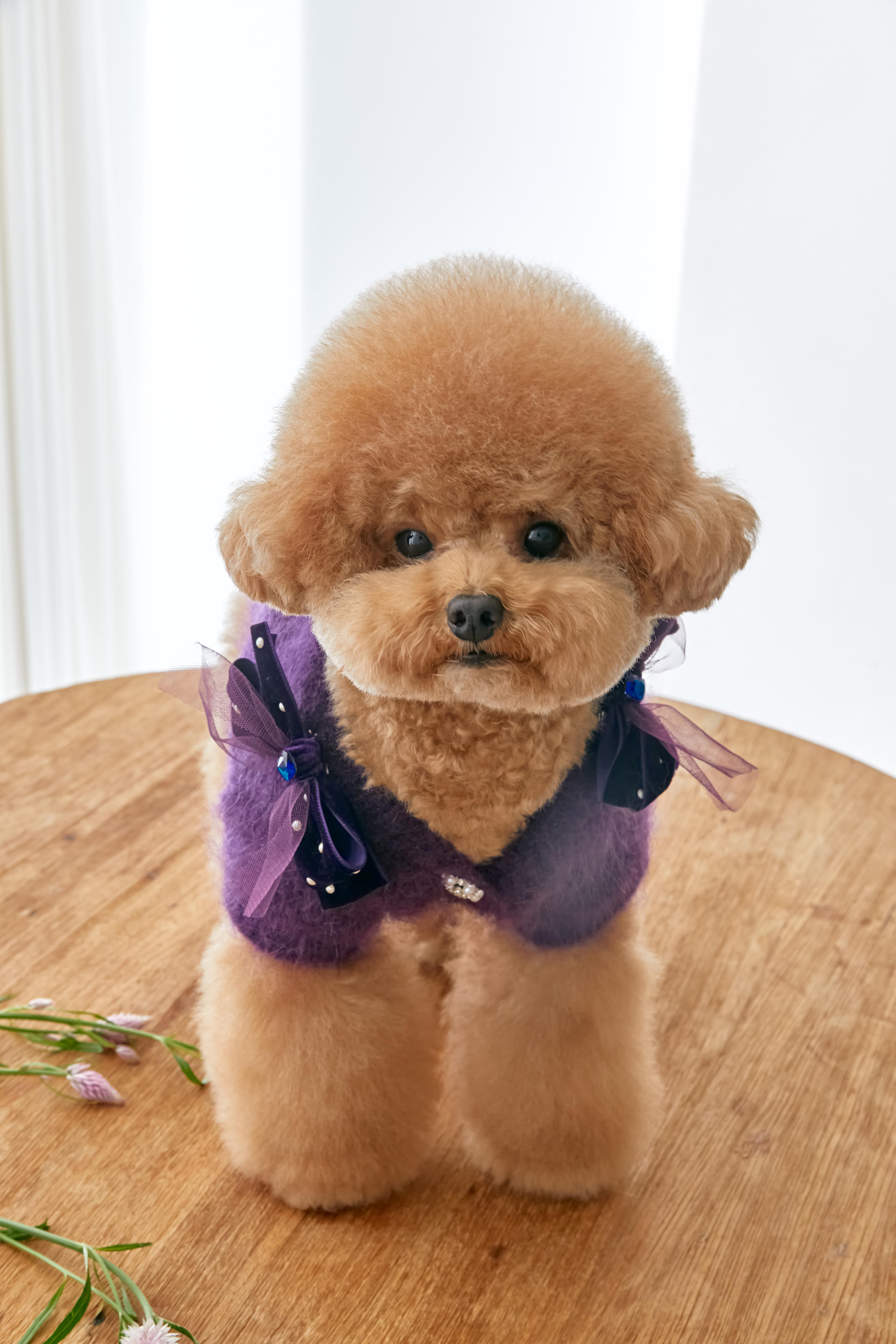 소매가 넓어 털엉킴이 적은 디자인으로 각기다른 보석단추로 고급스러운 무드를 연출해줍니다.