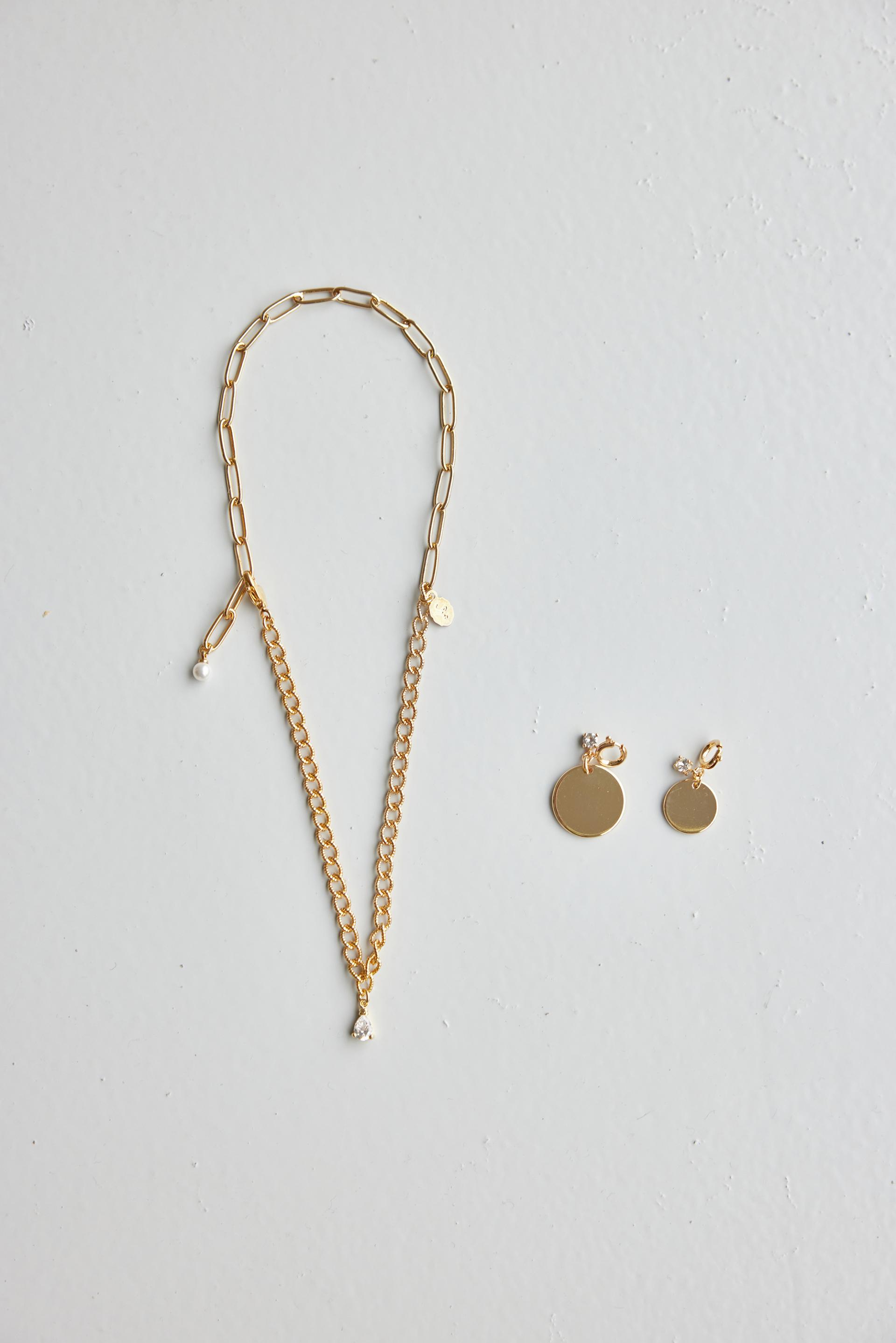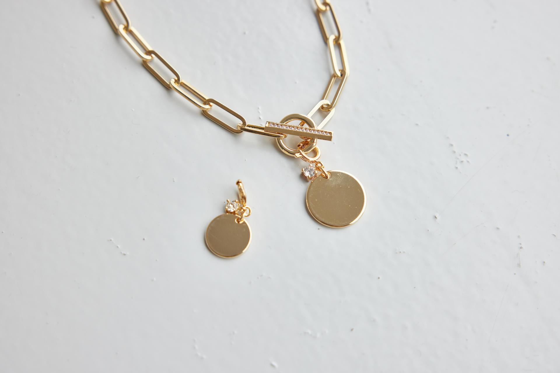 볼드한 타원형 체인에 토글 장식이 부착된 목걸이입니다.