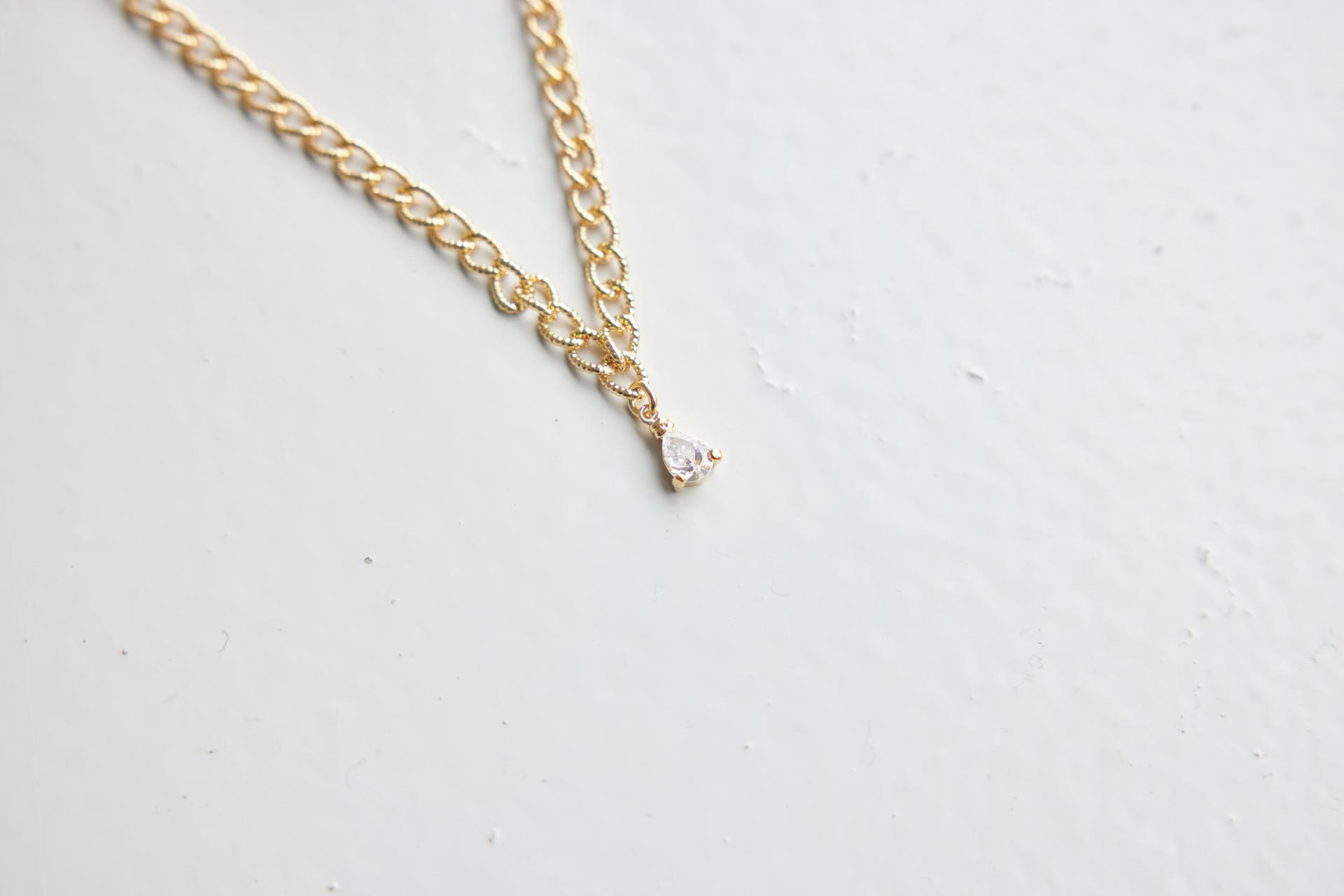 조각되어 반짝임이 돋보이는 커브체인과 심플한 타원체인이 조합된 체인 입니다.